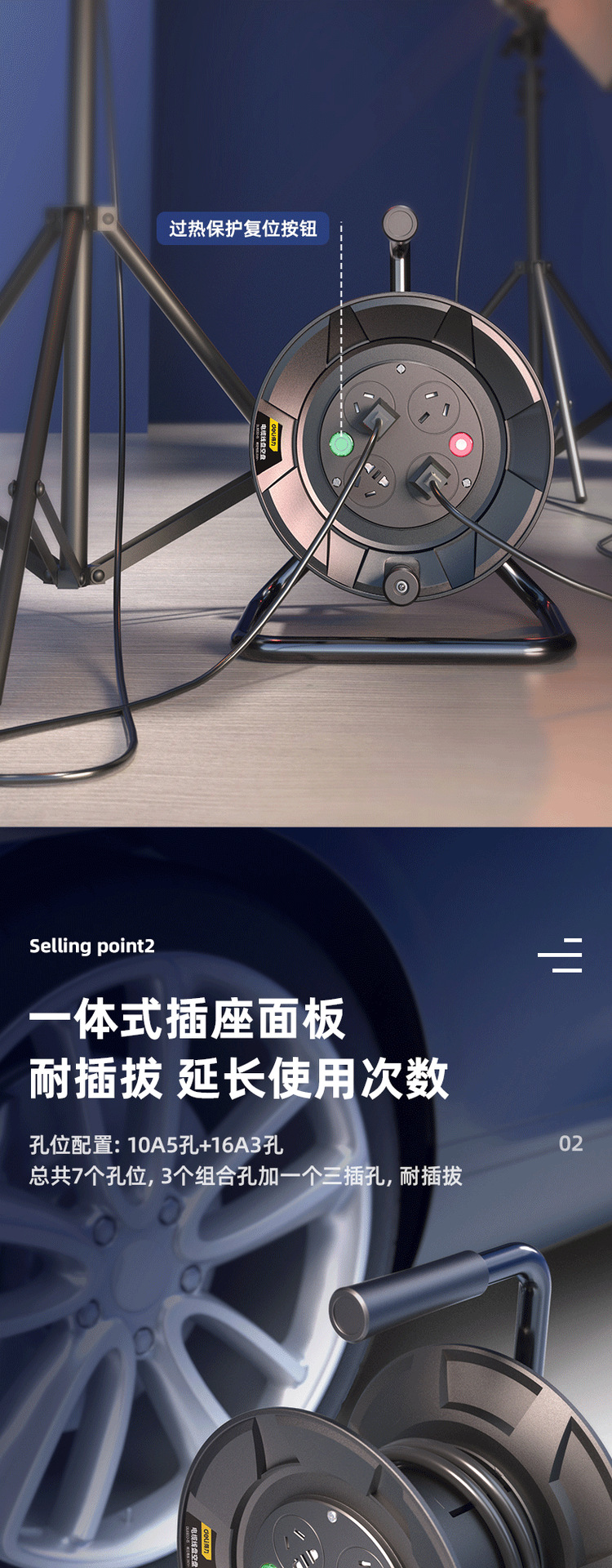 델리 DL8830-15 케이블 와이어 릴 최대 30m1.5 와이어 직경 빈 릴 16A(검정색)스토어 가기