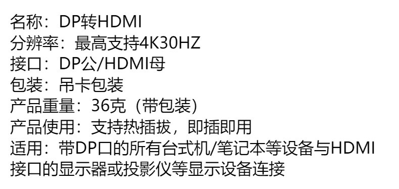 4K 대형 dp-hdmi 어댑터 케이블 dp-hdmi 남성-여성 DisplayPort 고화질 디스플레이 프로젝터