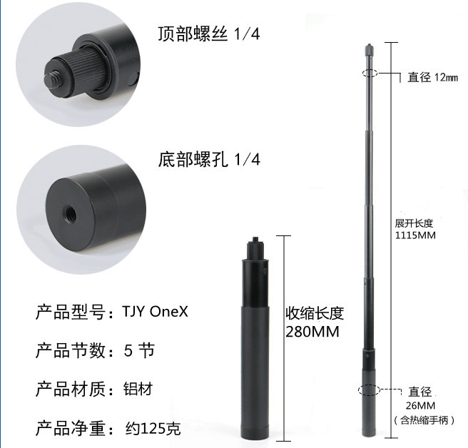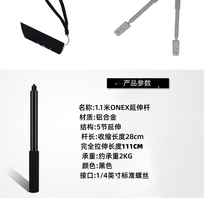 Insta360 ONE X2R 셀카봉에 적합 총알 시간 알루미늄 합금 텔레스코픽 막대 파노라마 카메라 연장 막대