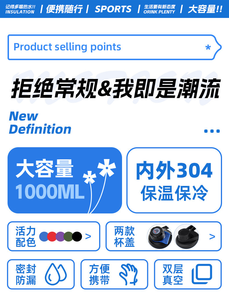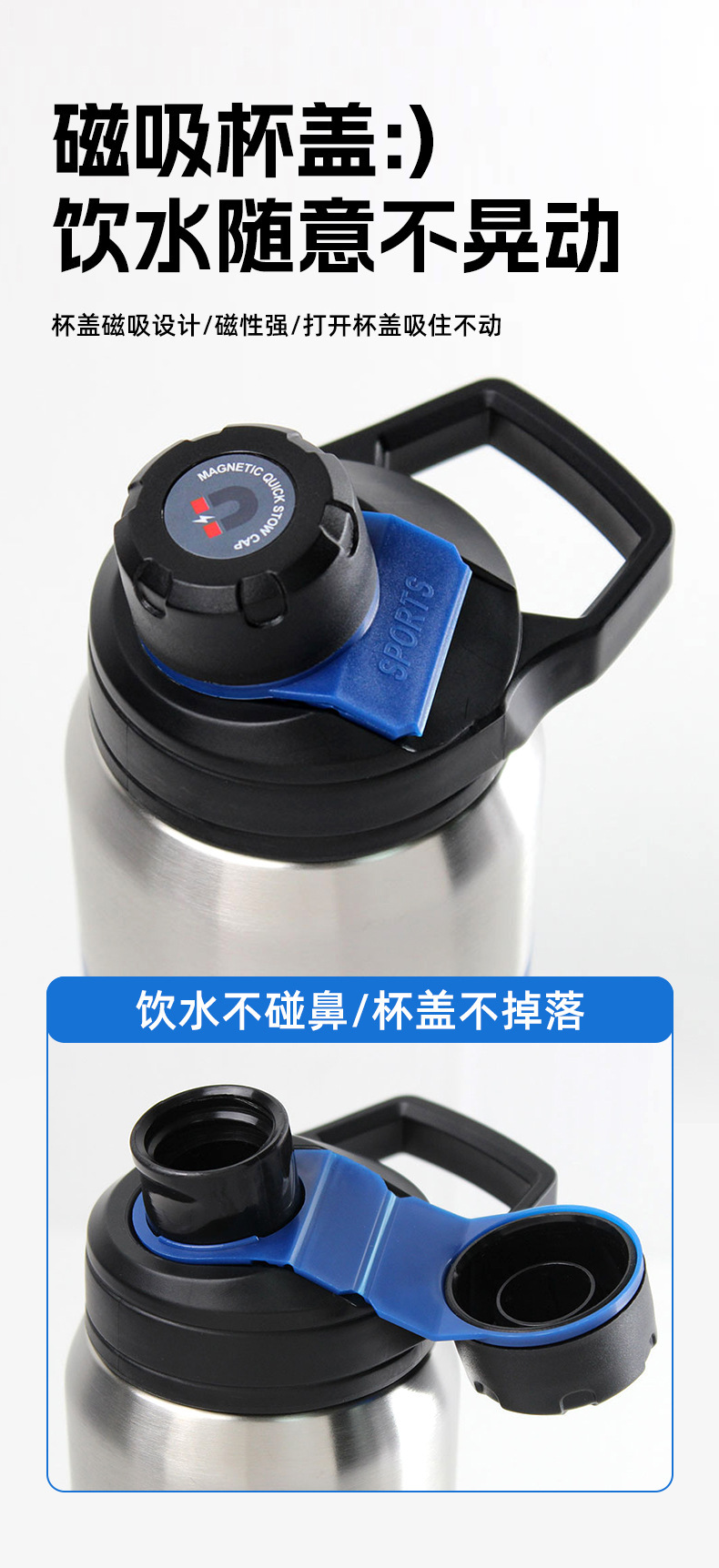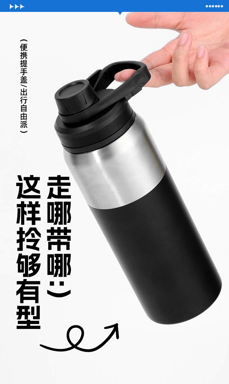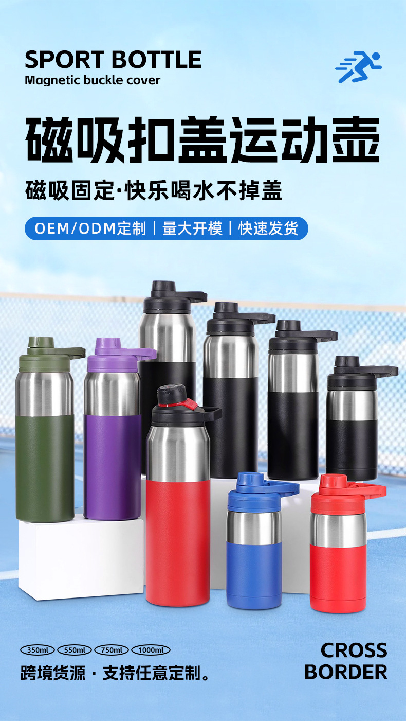 국경 간 스테인레스 스틸 이중층 자기 절연 컵 야외 휴대용 피트니스 스포츠 병 버클 커버 타입 휴대용 하이킹 워터 컵