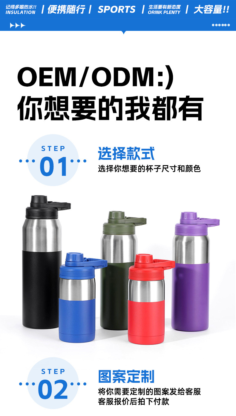 국경 간 스테인레스 스틸 이중층 자기 절연 컵 야외 휴대용 피트니스 스포츠 병 버클 커버 타입 휴대용 하이킹 워터 컵스토어 가기