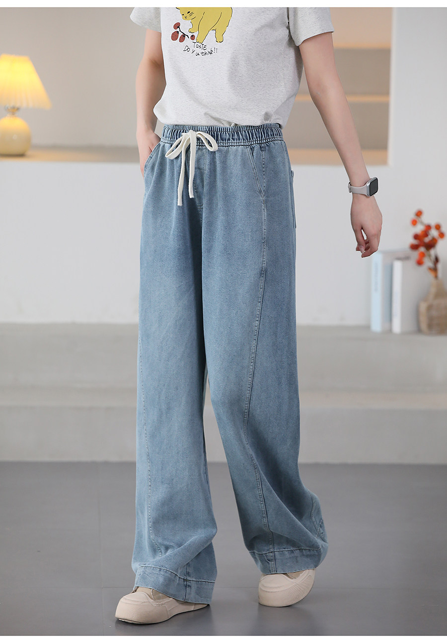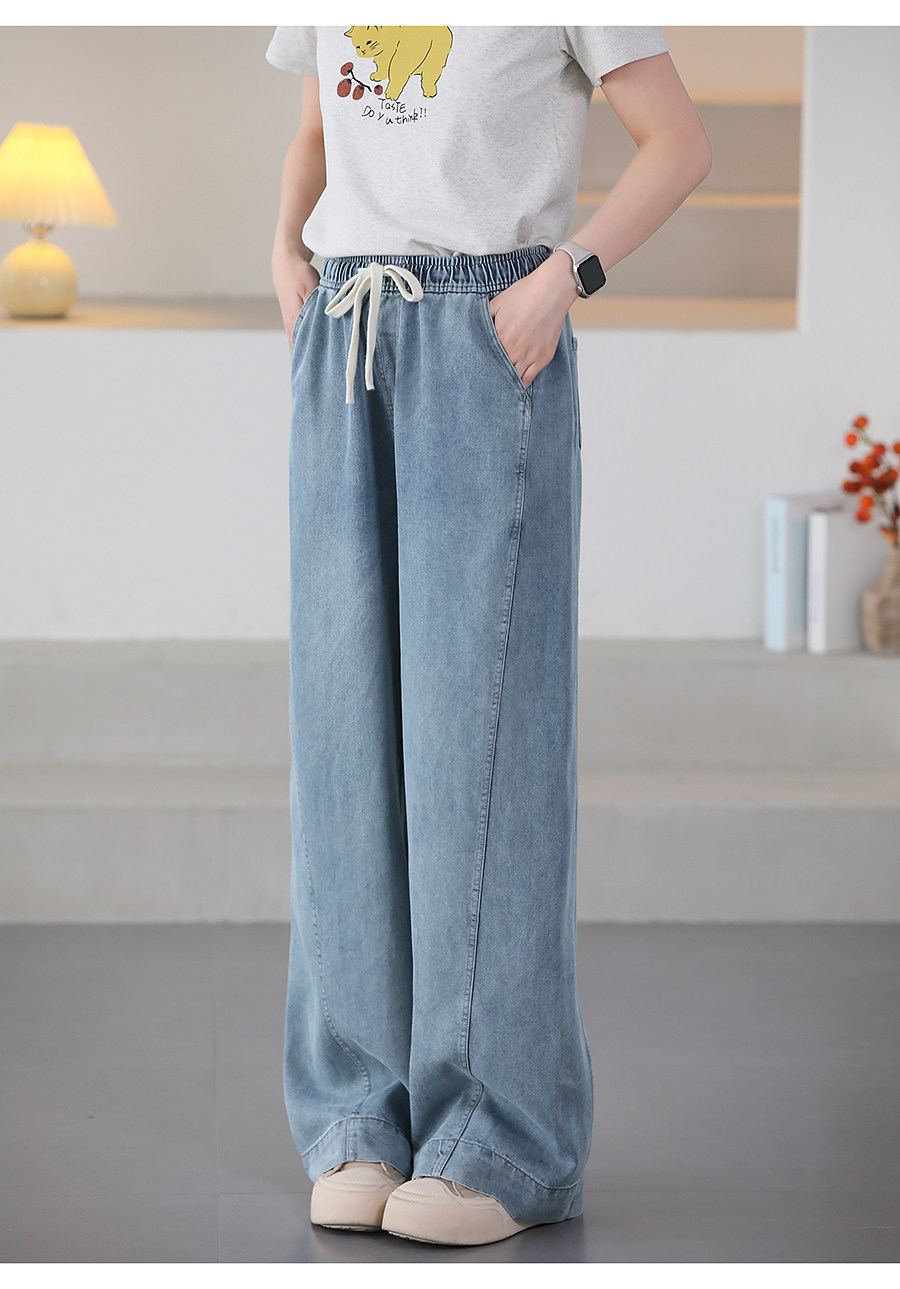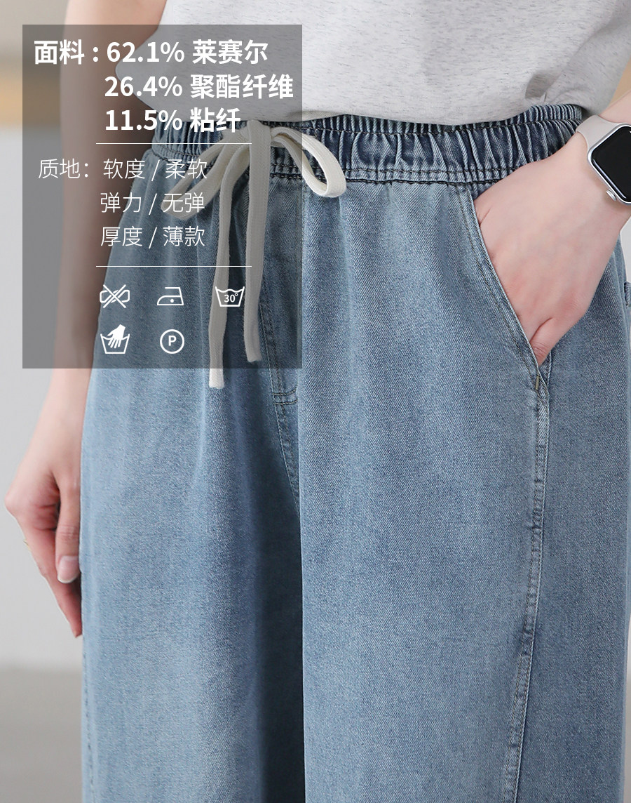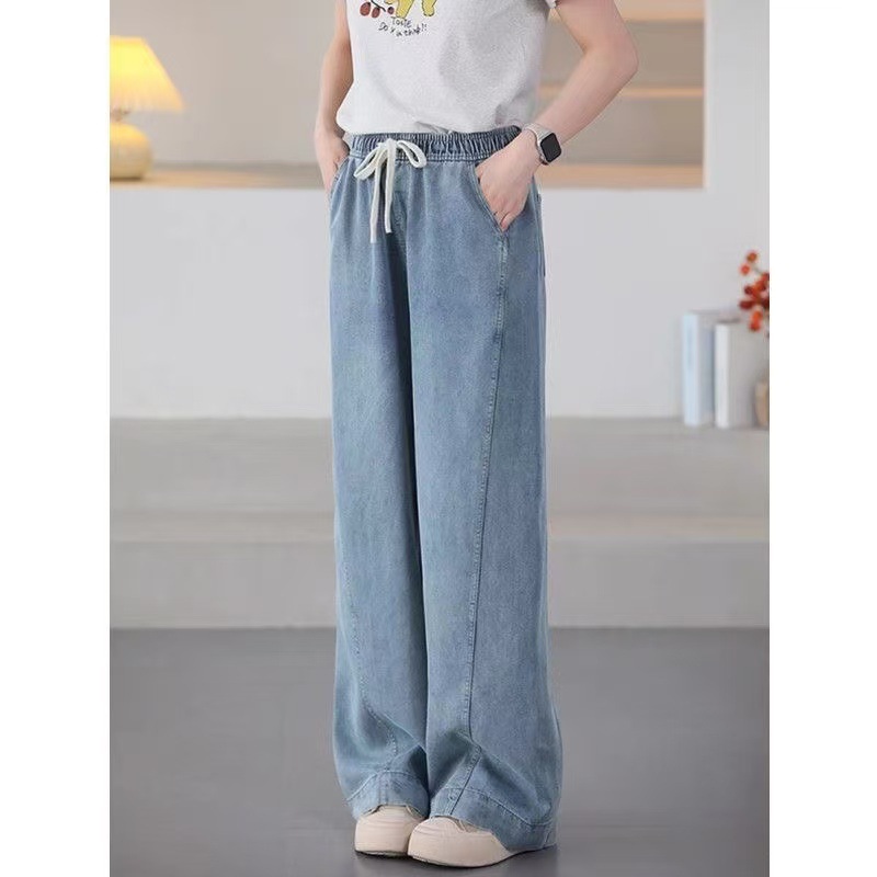 여름 얇은 Lyocell Scimitar 청바지 여성용 느슨한 허리 캐주얼 느슨한 슬림 넓은 다리 바지 040116스토어 가기