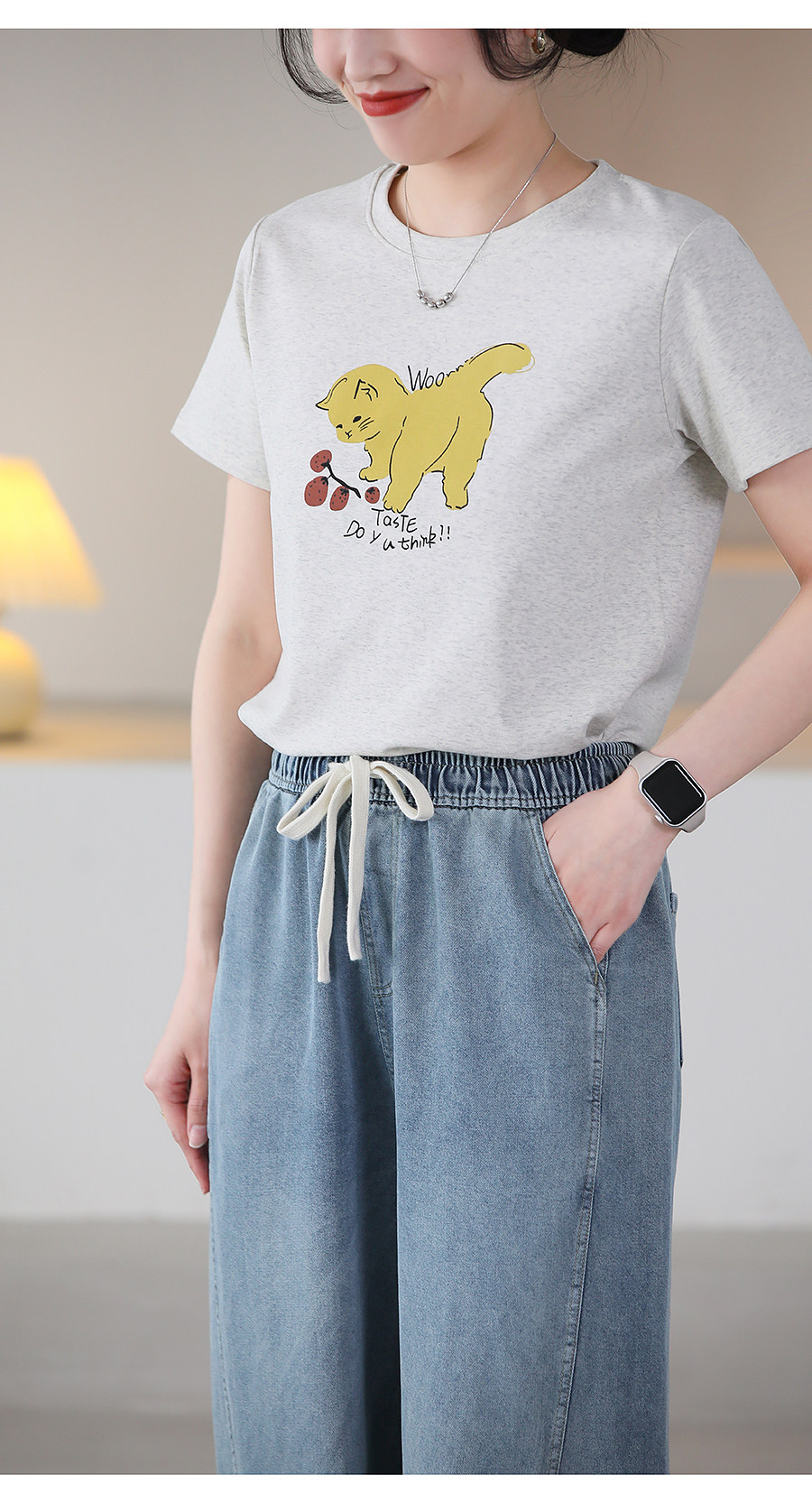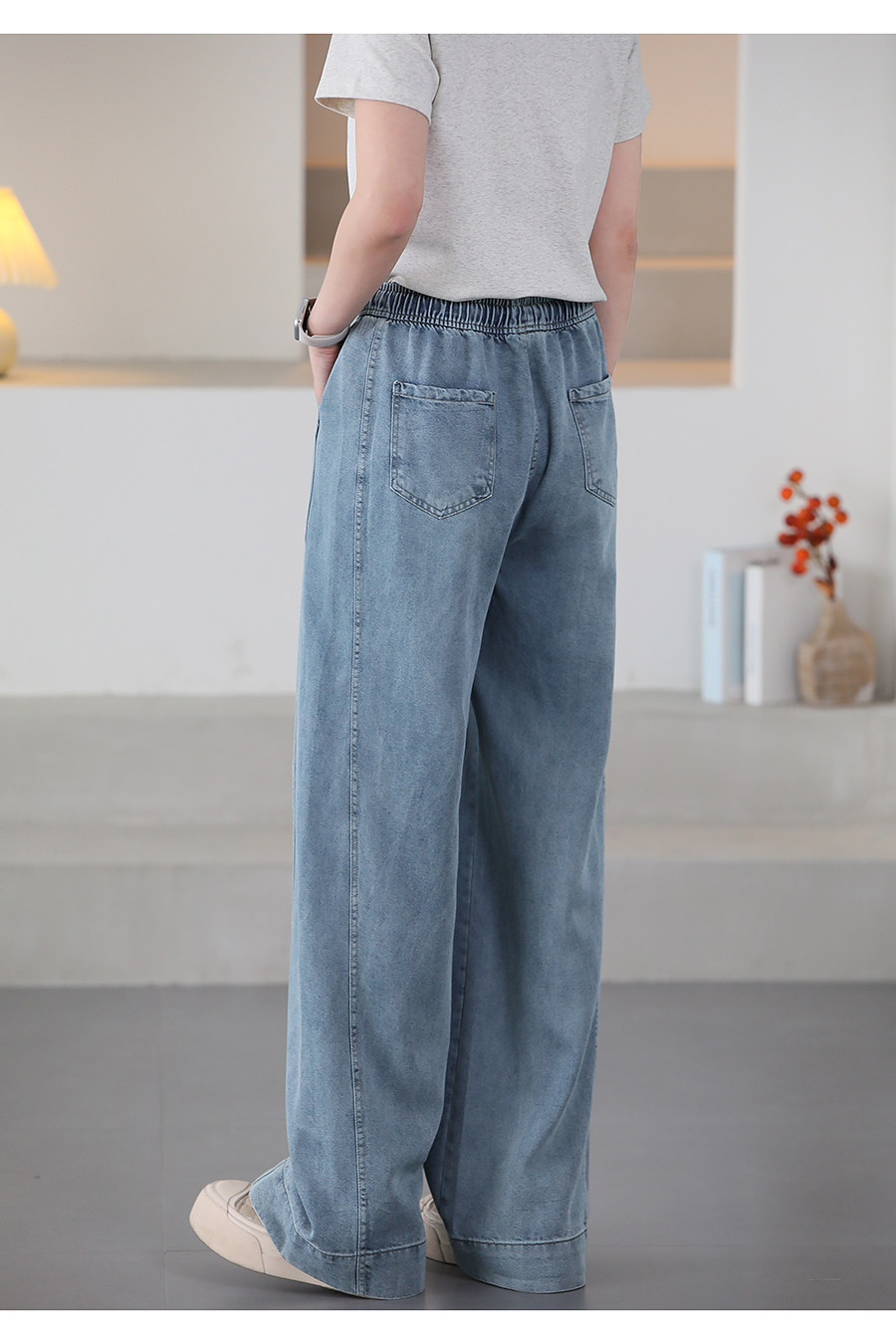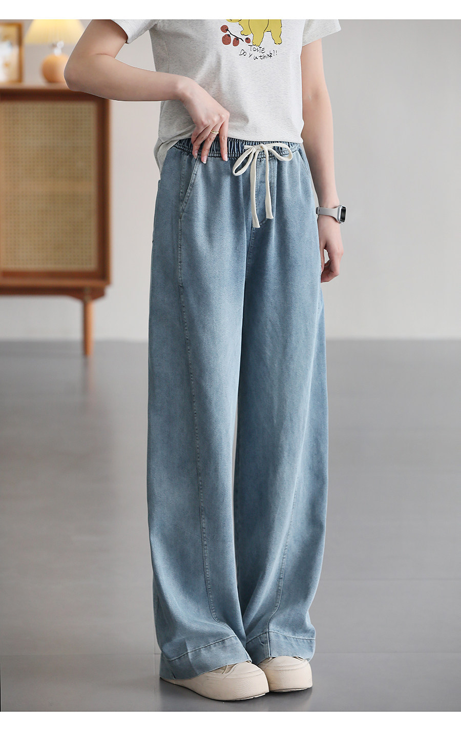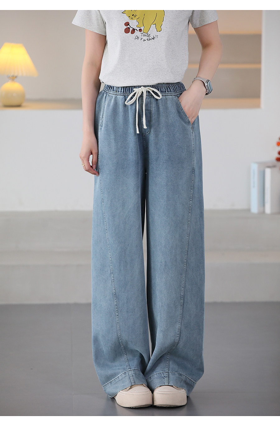 여름 얇은 Lyocell Scimitar 청바지 여성용 느슨한 허리 캐주얼 느슨한 슬림 넓은 다리 바지 040116스토어 가기