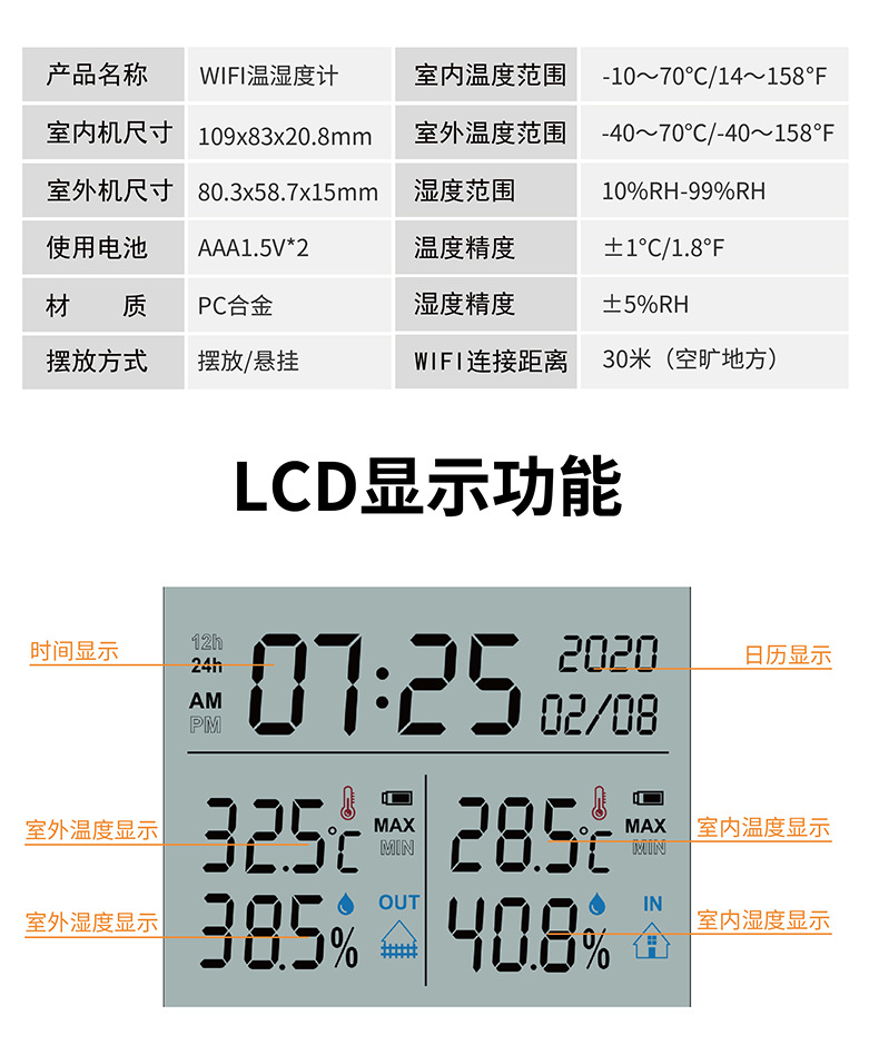 室外机尺寸:80.3×58.7×15mm,室外温度范围:-40~70℃/-40~158℉