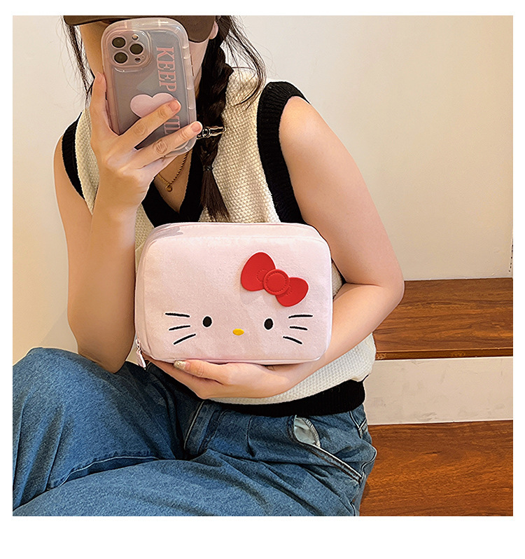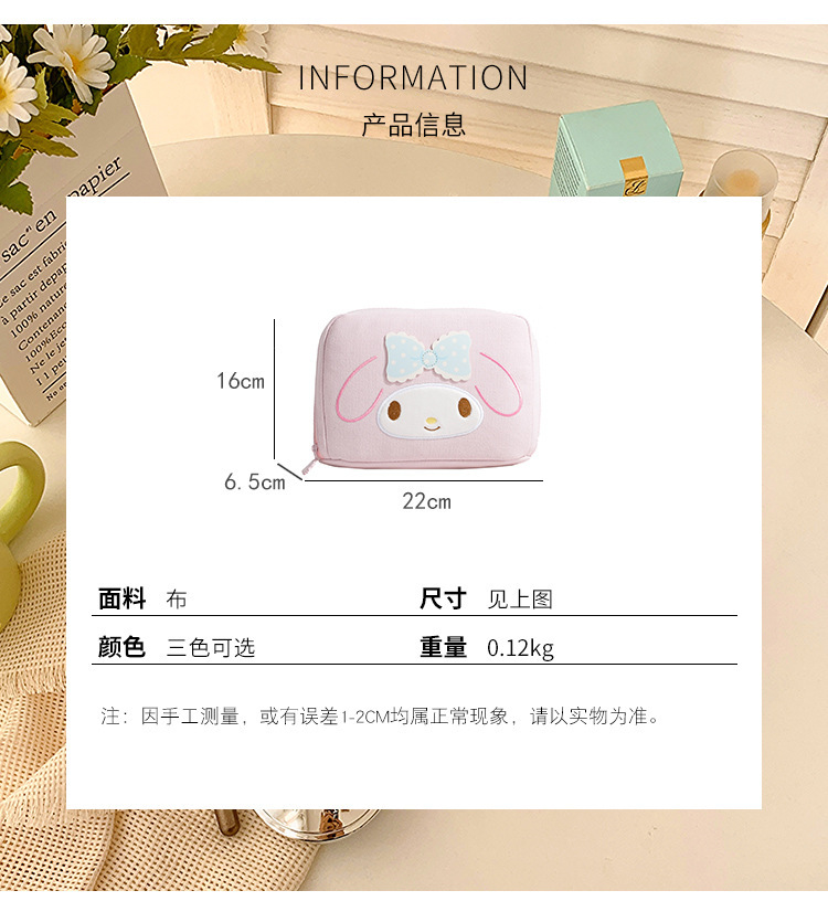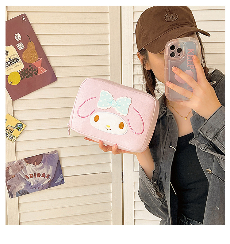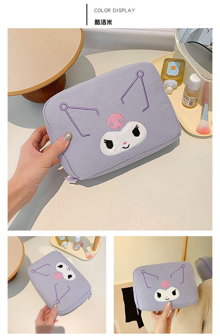 Sanrio 대용량 및 고가치 만화 Kuromi 틈새 화장품 보관 가방 휴대용 휴대용 화장품 가방