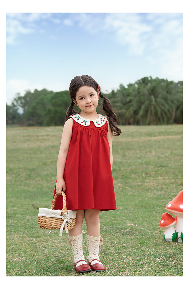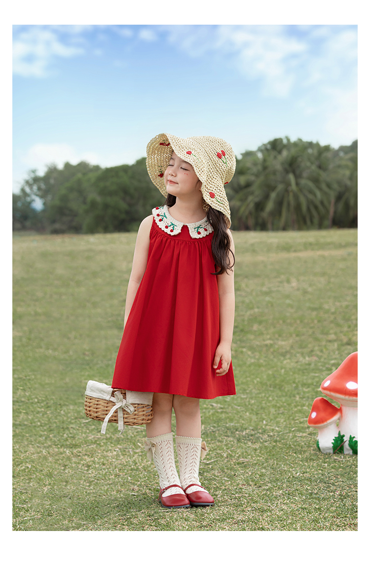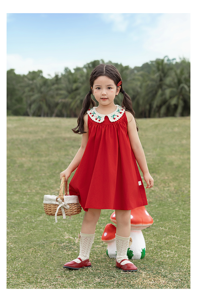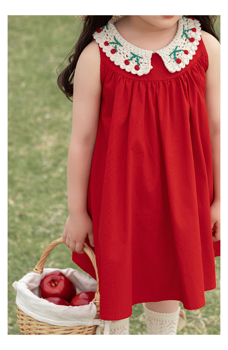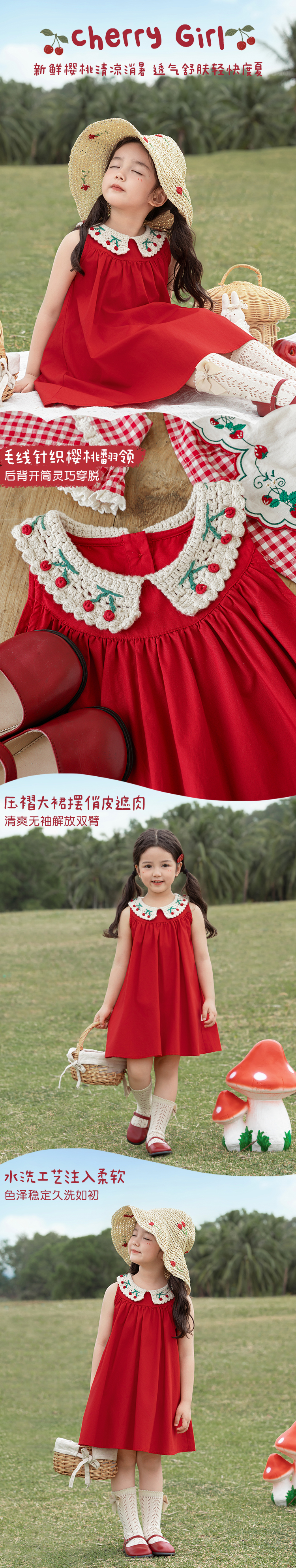 Wuri Bos 한 소녀의 양모 체리 옷깃 큰 스커트 여름 장난스러운 귀여운 민소매 원피스 패션