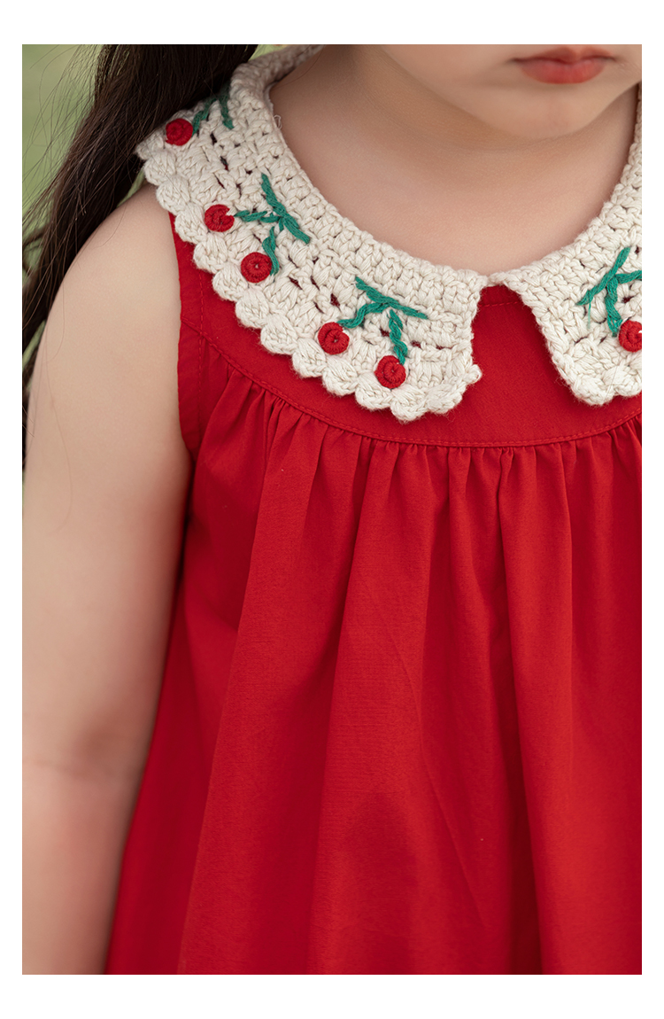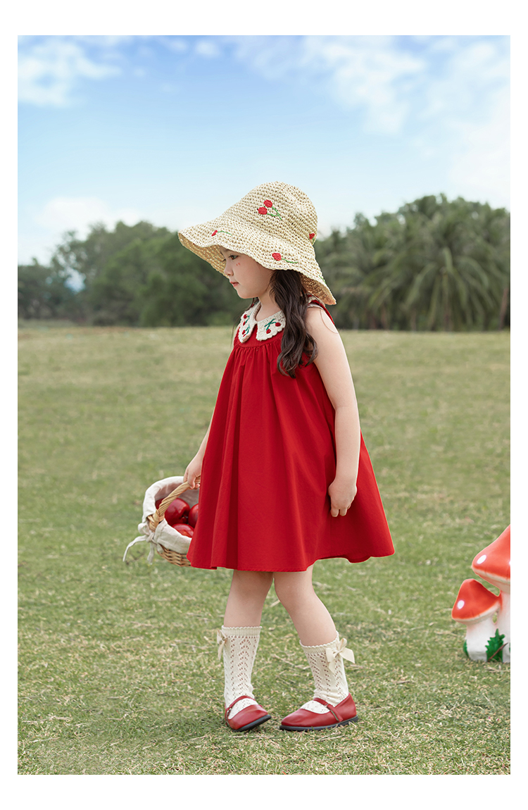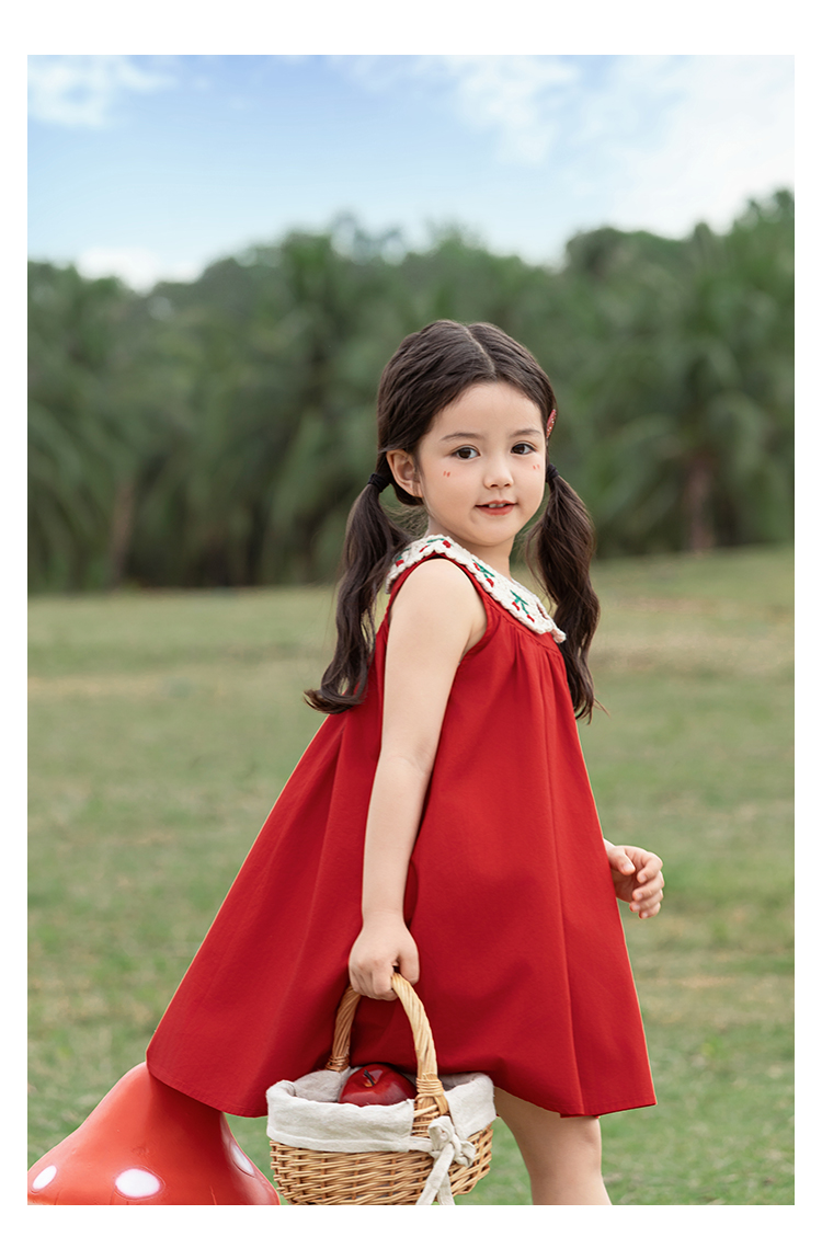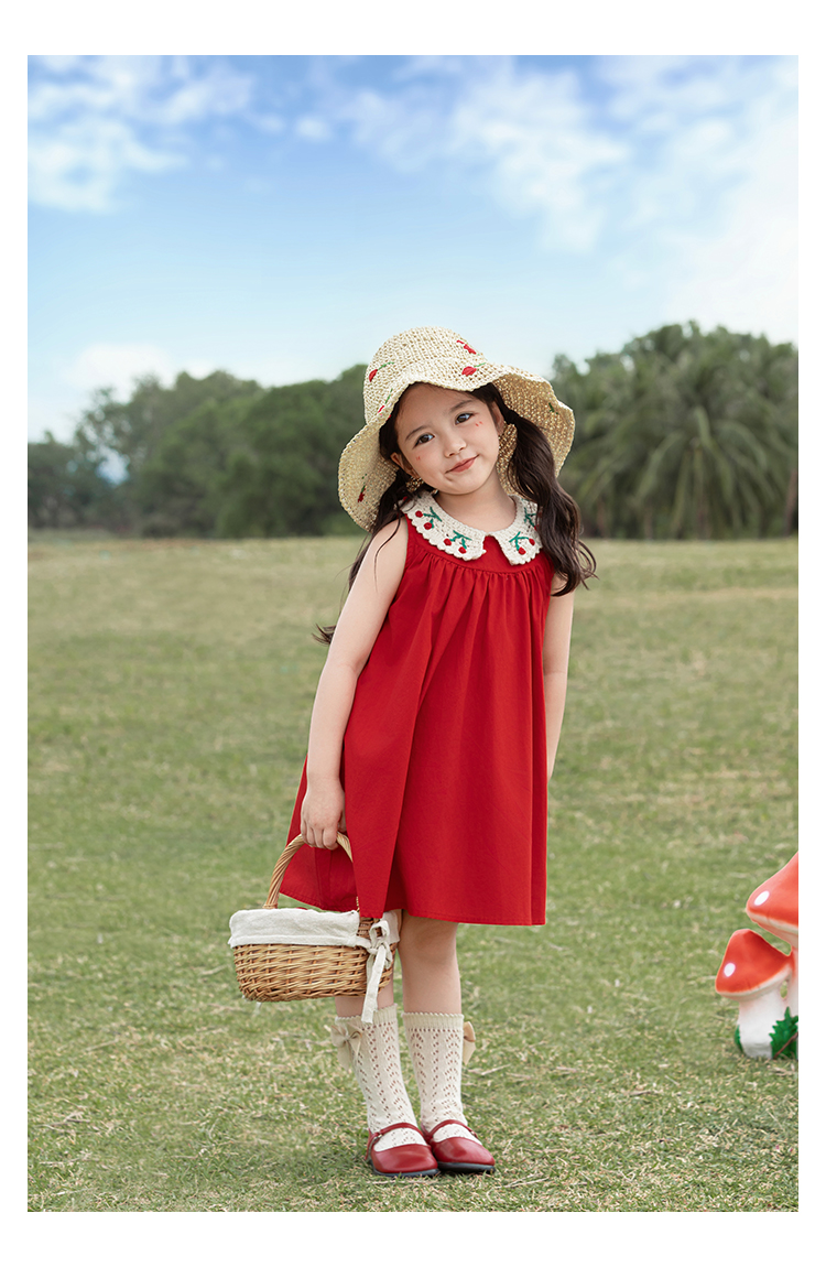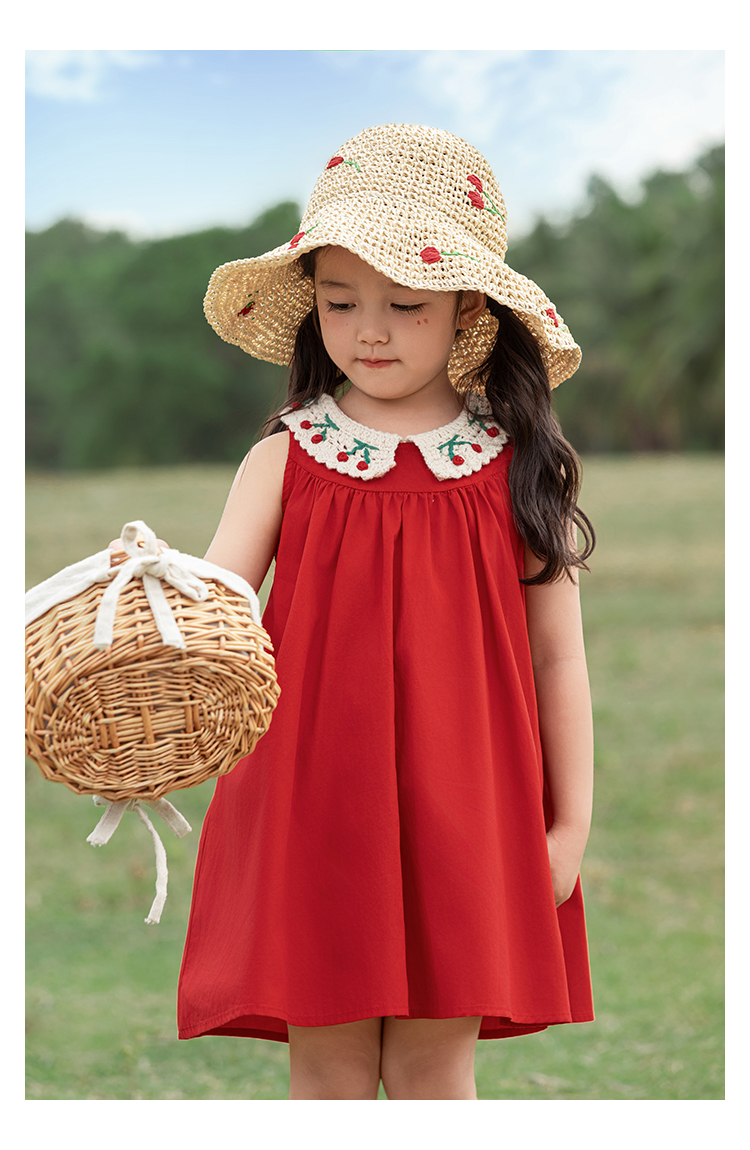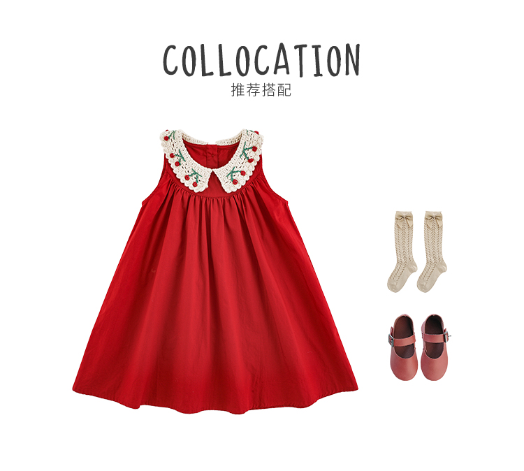 Wuri Bos 한 소녀의 양모 체리 옷깃 큰 스커트 여름 장난스러운 귀여운 민소매 원피스 패션