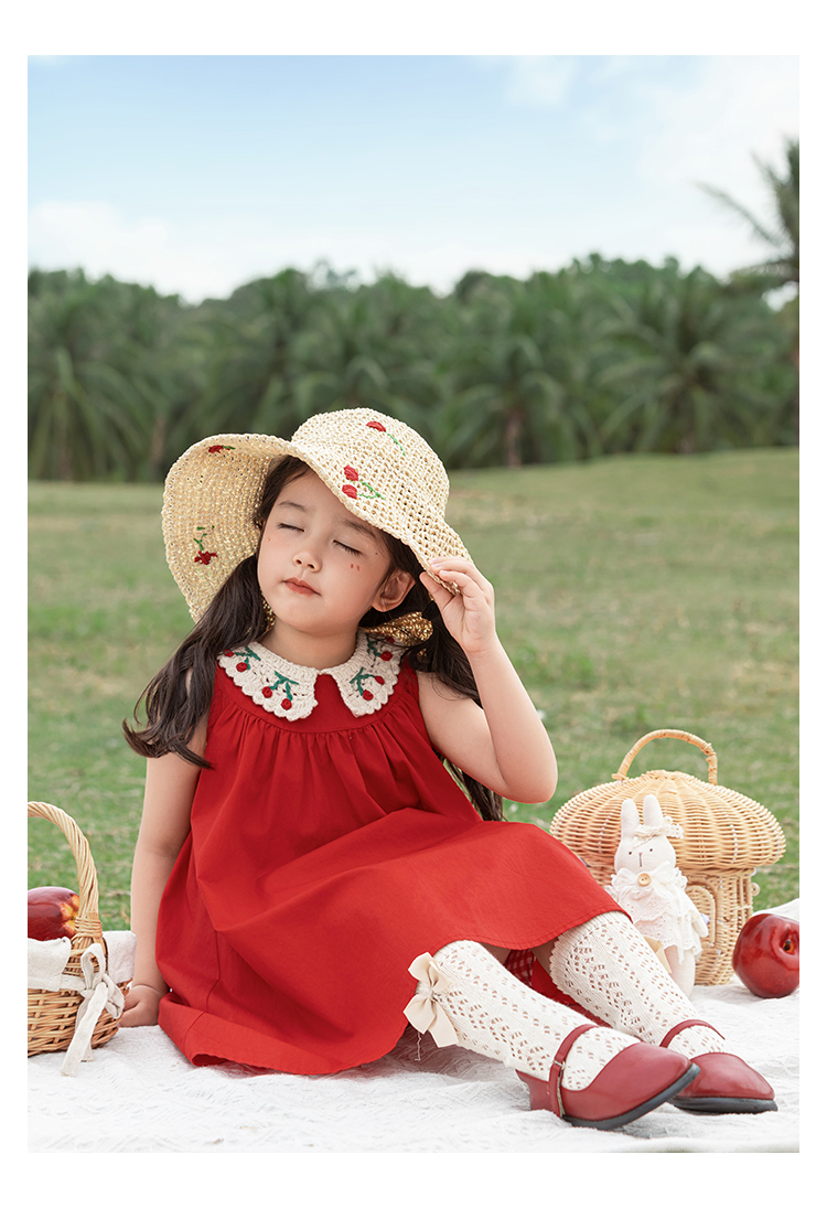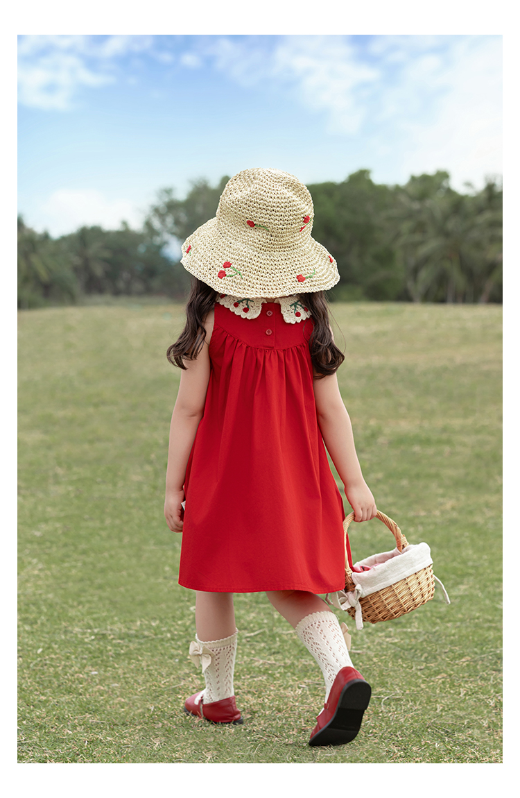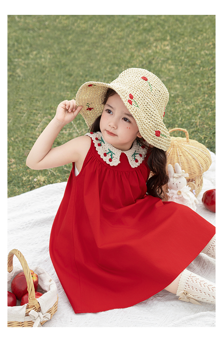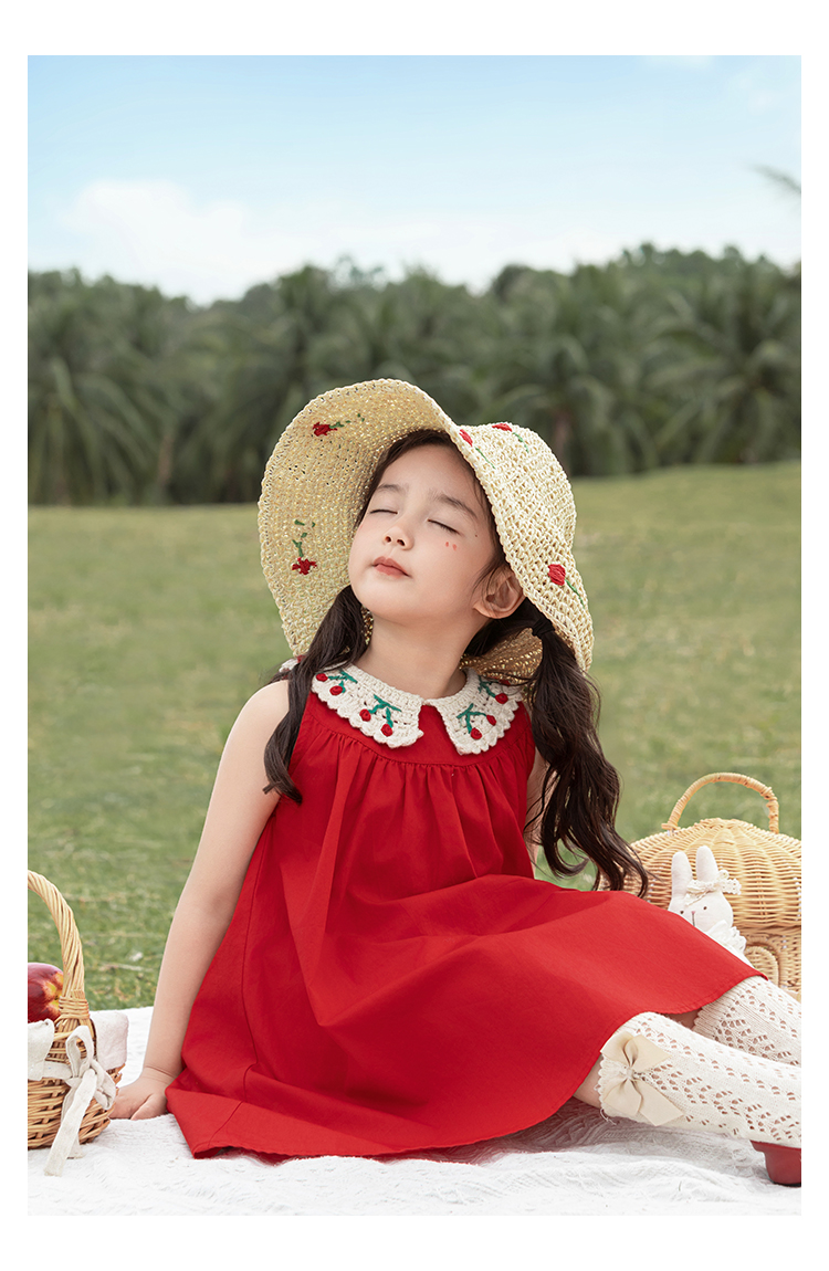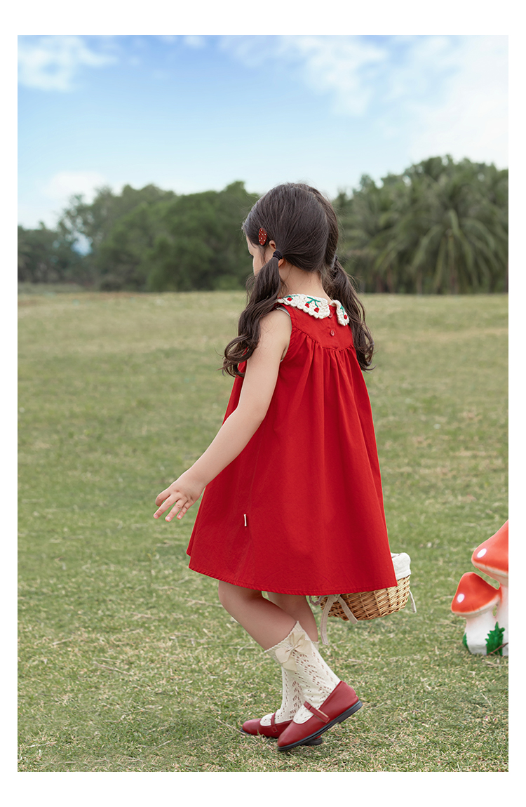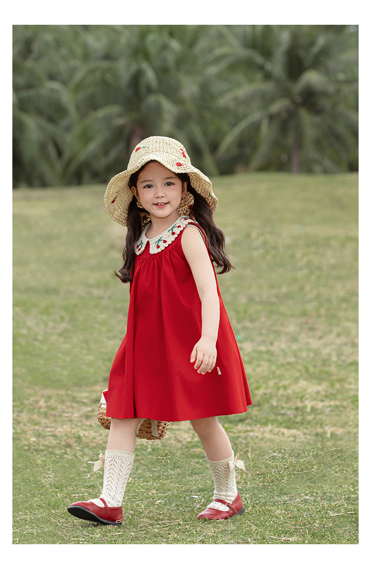 Wuri Bos 한 소녀의 양모 체리 옷깃 큰 스커트 여름 장난스러운 귀여운 민소매 원피스 패션
