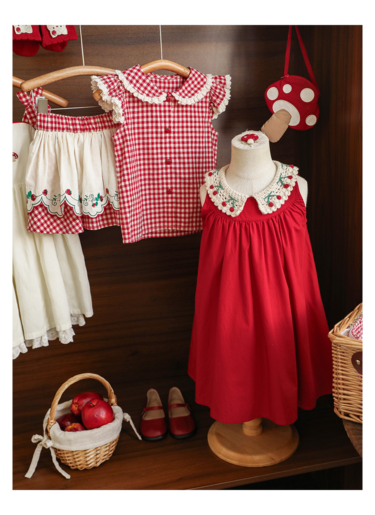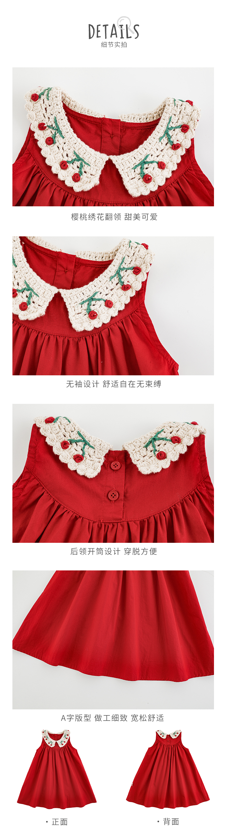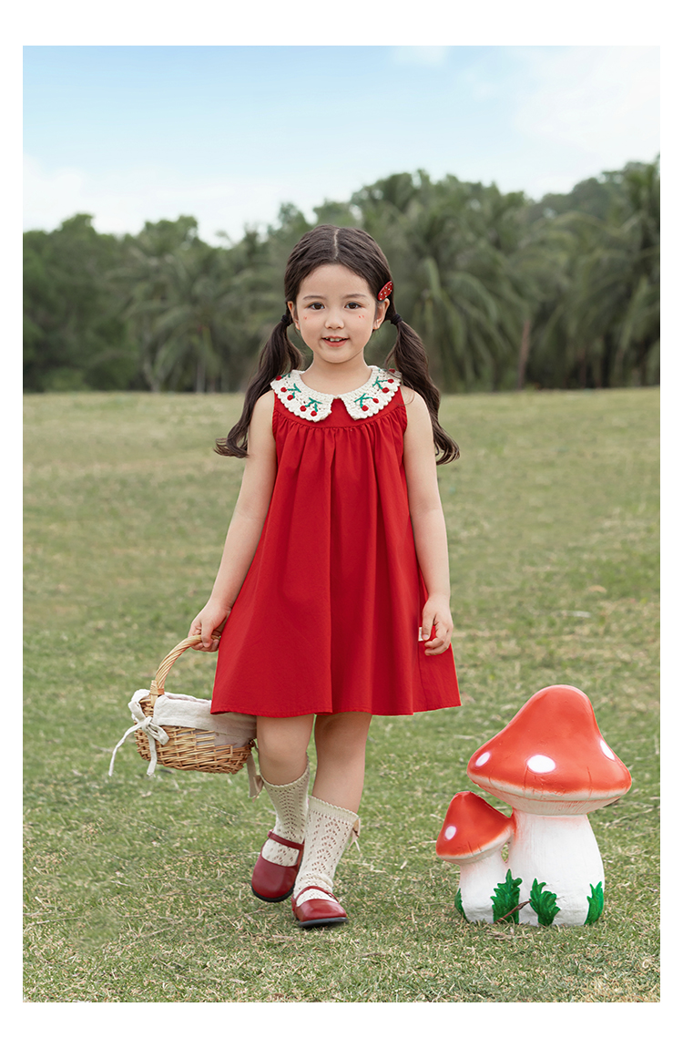 Wuri Bos 한 소녀의 양모 체리 옷깃 큰 스커트 여름 장난스러운 귀여운 민소매 원피스 패션스토어 가기