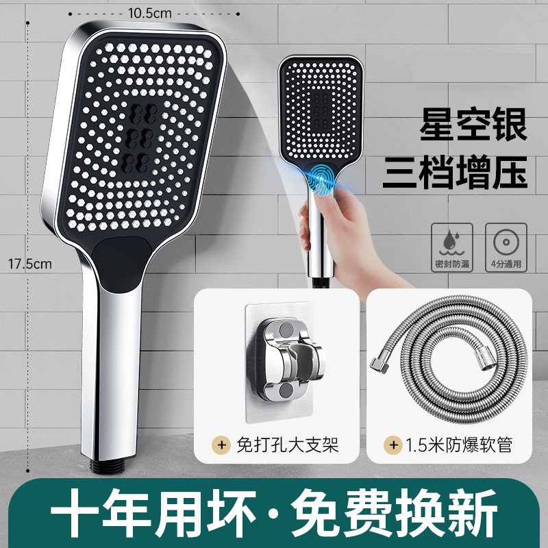• [전기도금 실버세트3] 부스터 샤워기 + 암호화 호스 1.5m개 + 브라켓