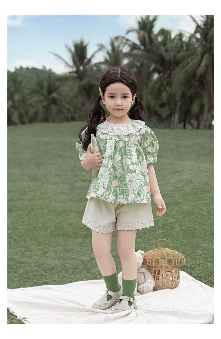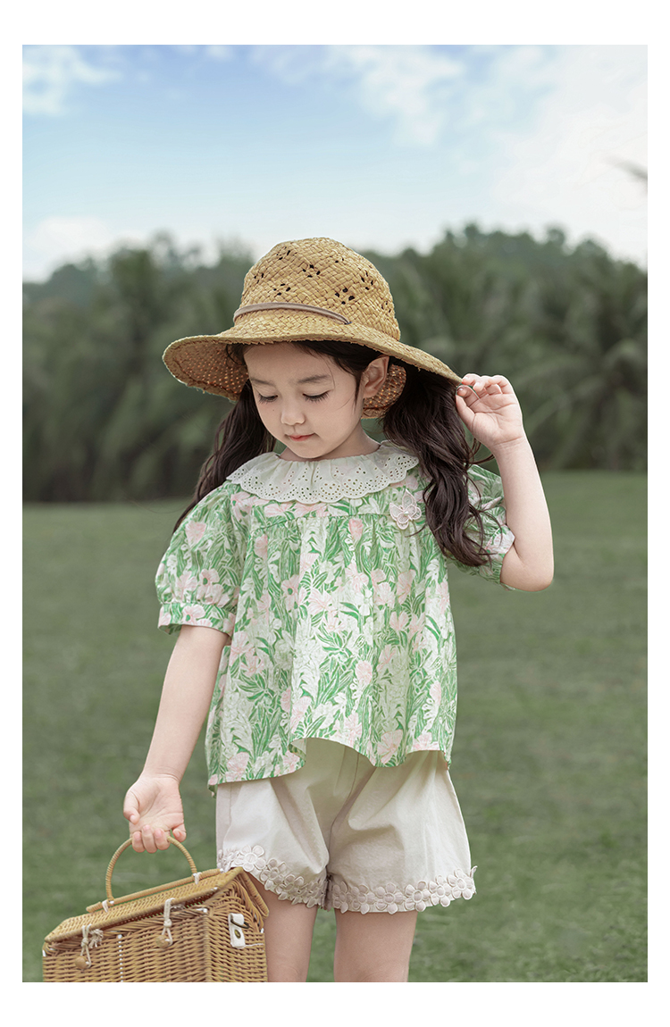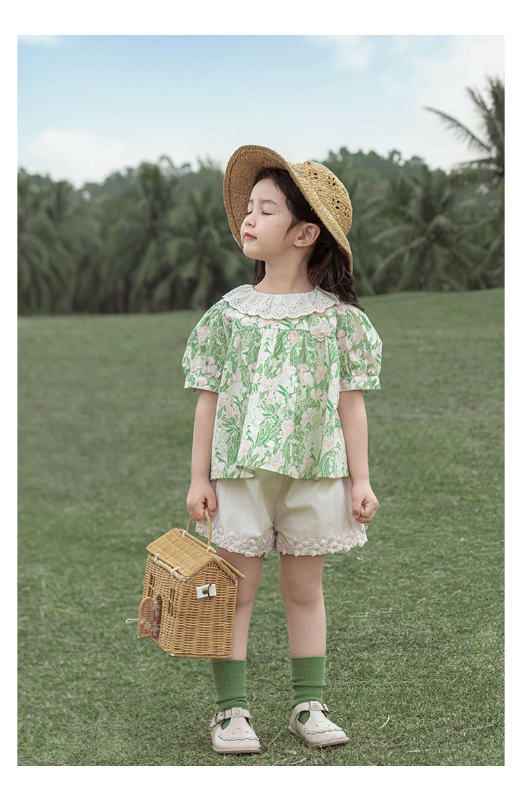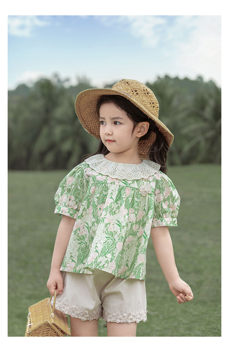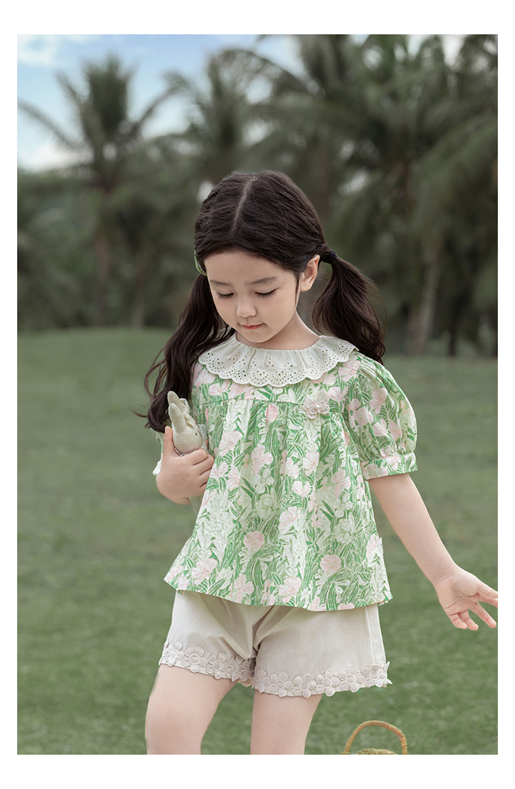 Wuri Boyi 소녀의 여름 비밀 영역 시리즈 간단한 원피스 달콤한 주름 거품 소매 인형 셔츠 유행 바지