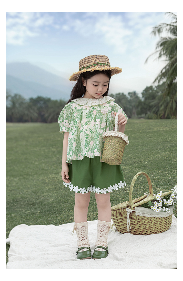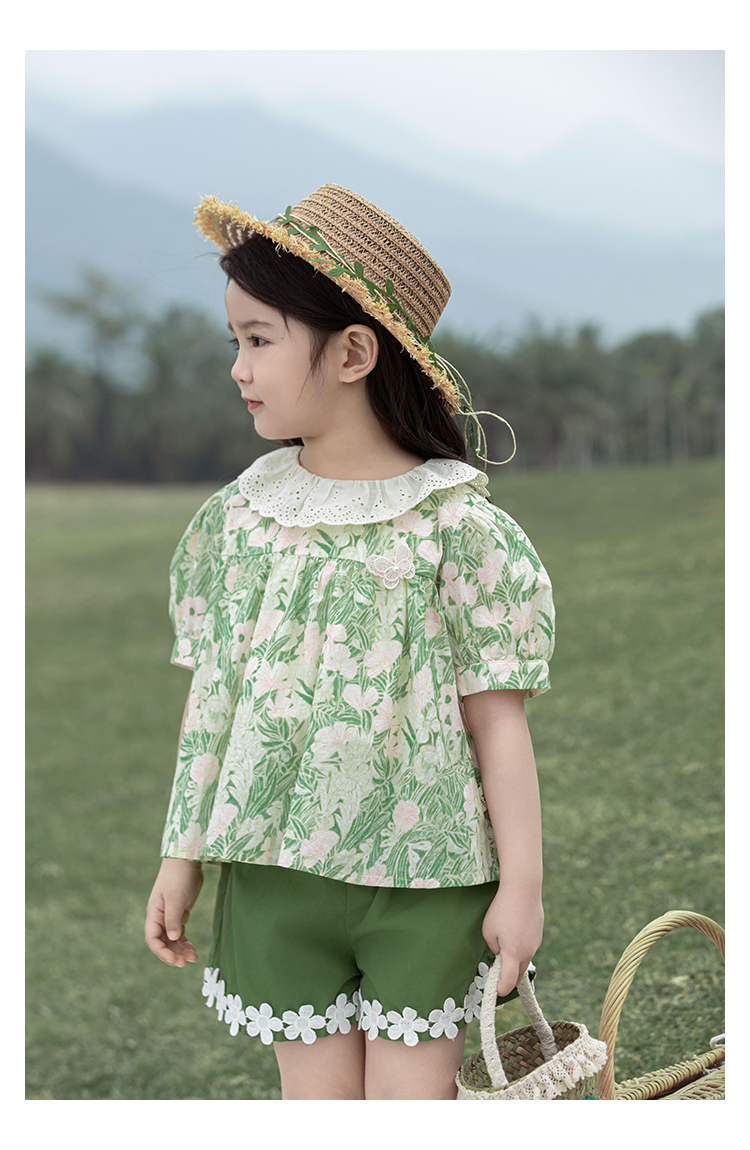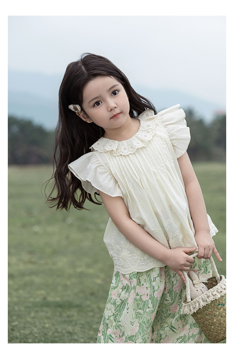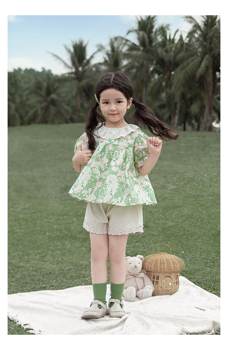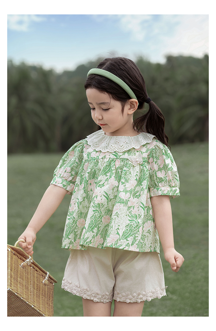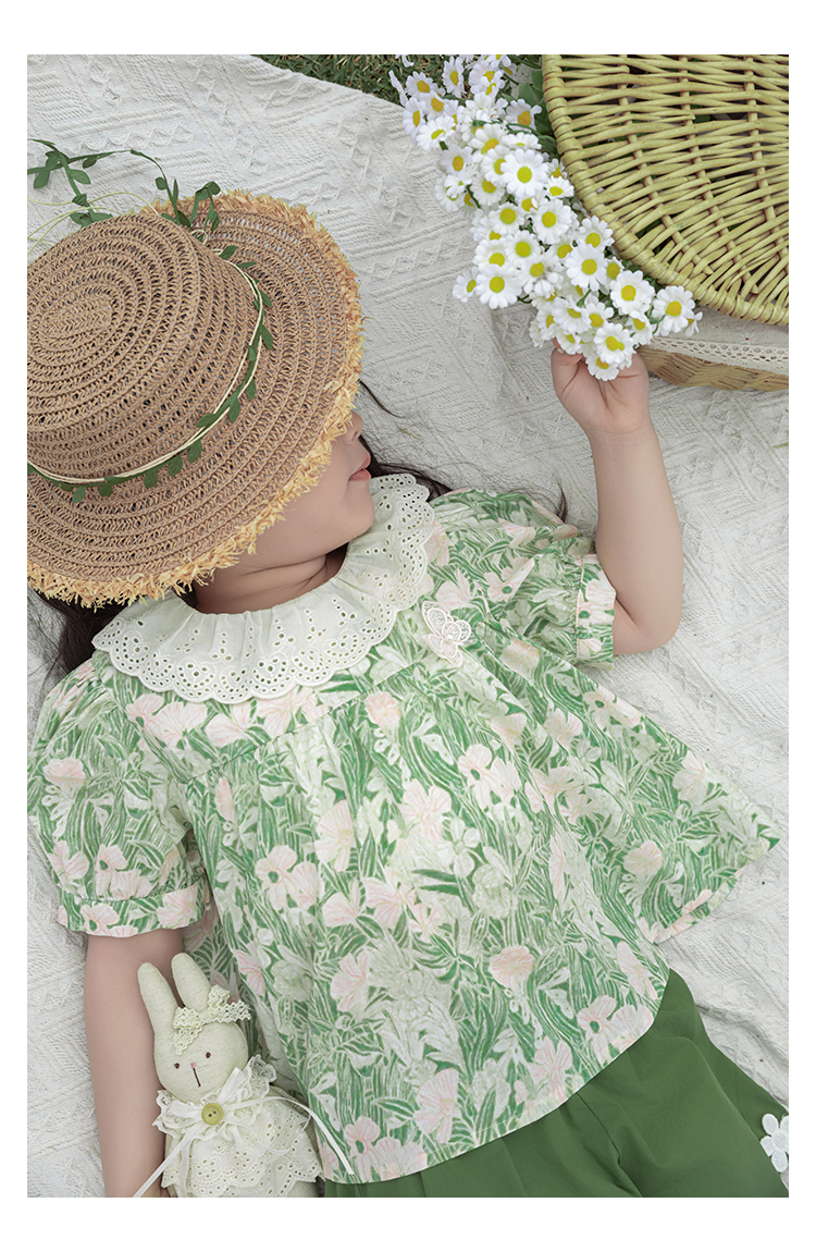 Wuri Boyi 소녀의 여름 비밀 영역 시리즈 간단한 원피스 달콤한 주름 거품 소매 인형 셔츠 유행 바지