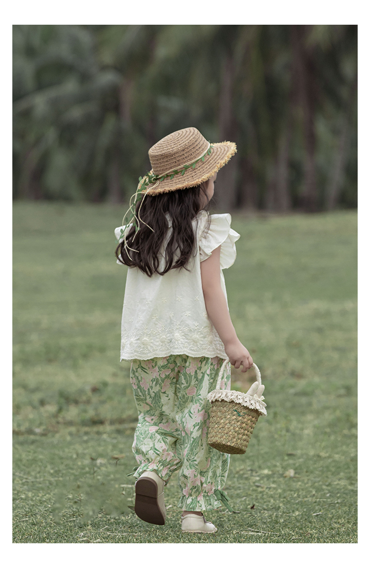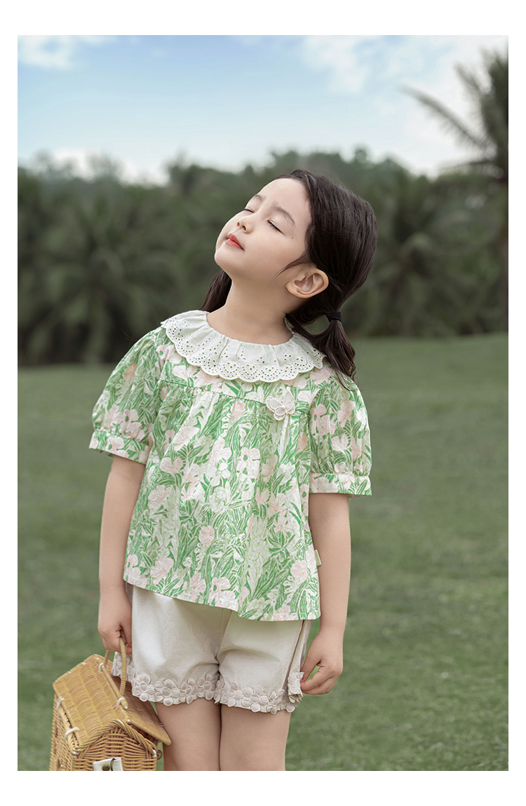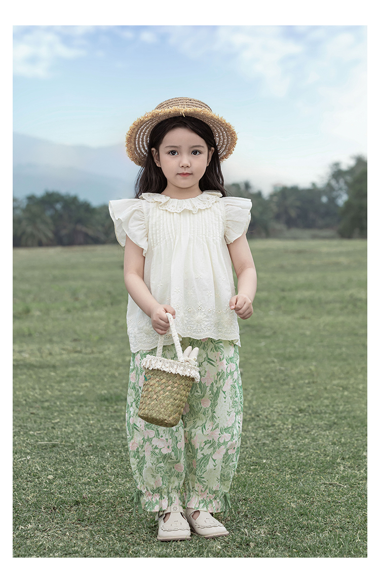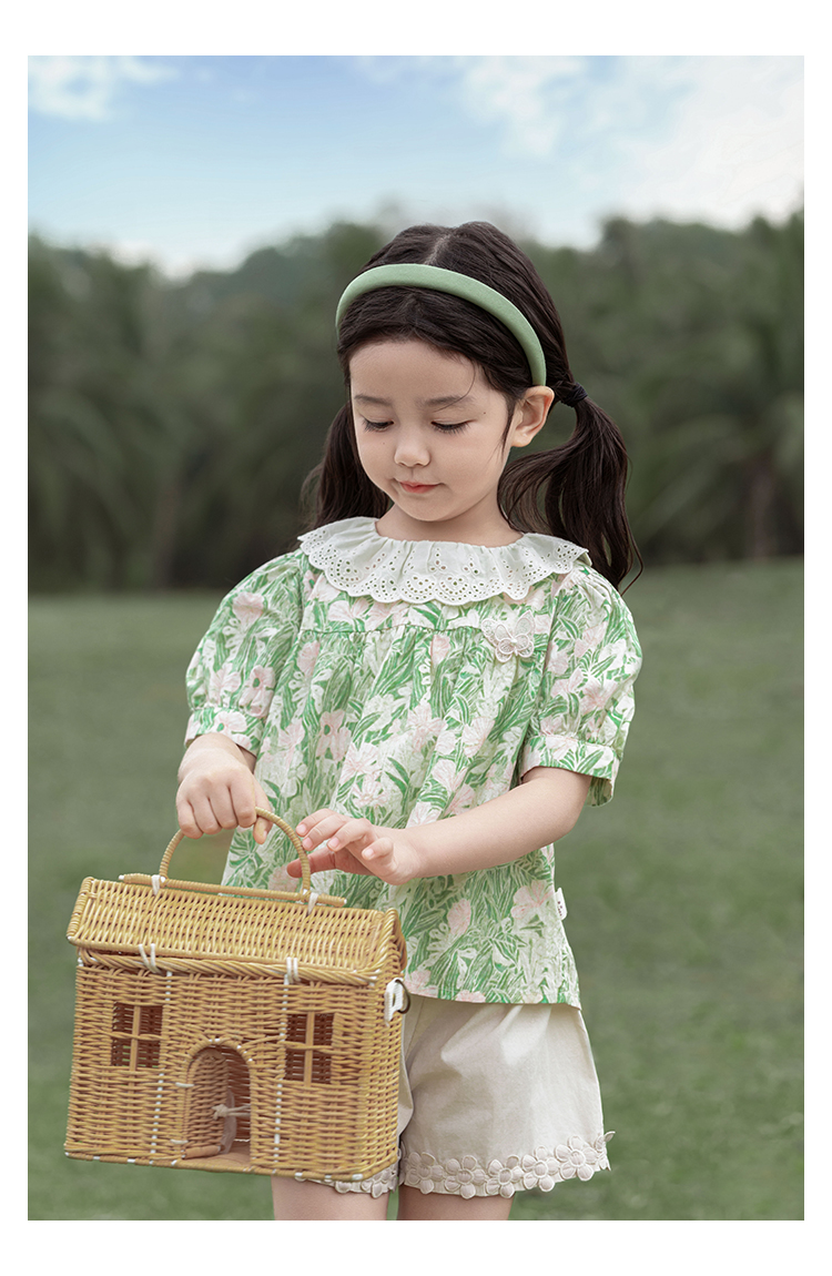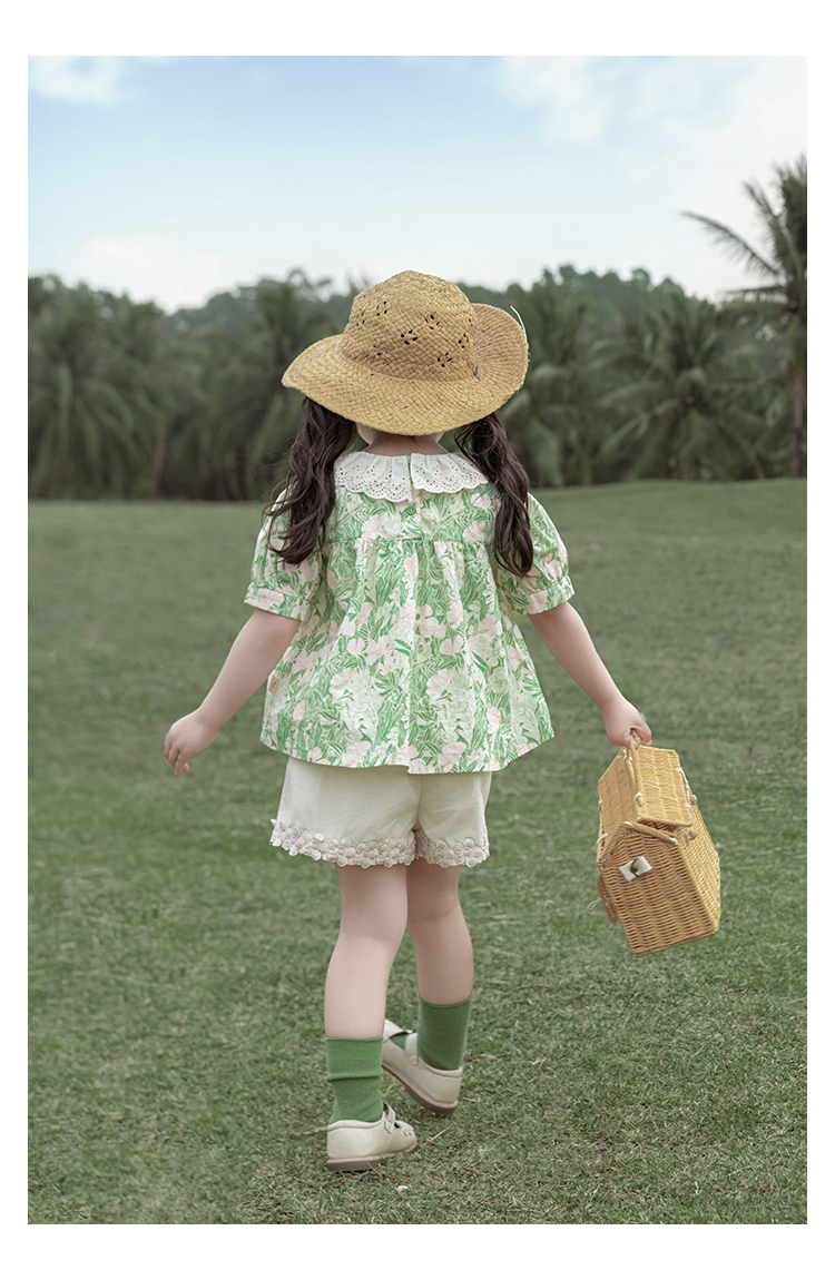 Wuri Boyi 소녀의 여름 비밀 영역 시리즈 간단한 원피스 달콤한 주름 거품 소매 인형 셔츠 유행 바지