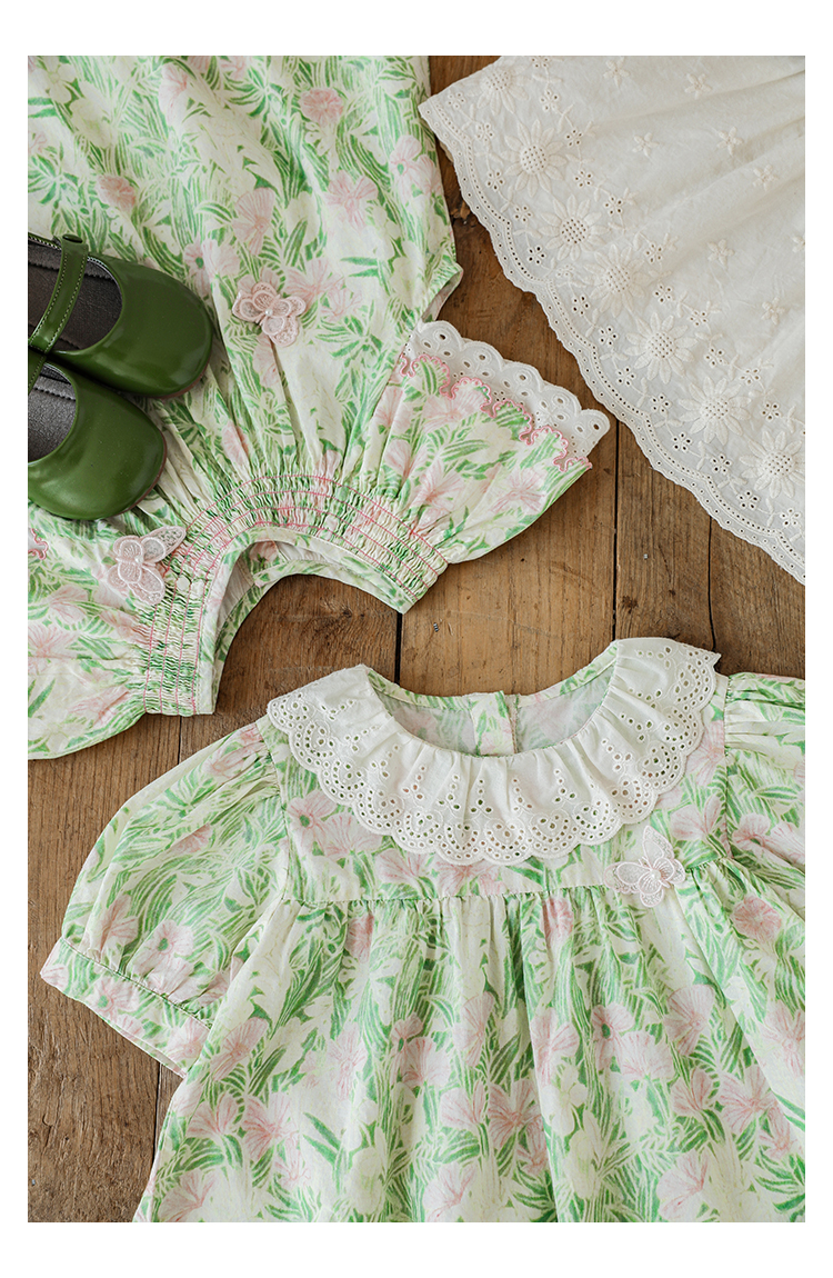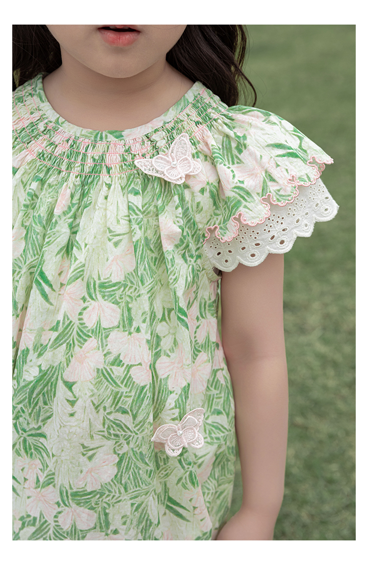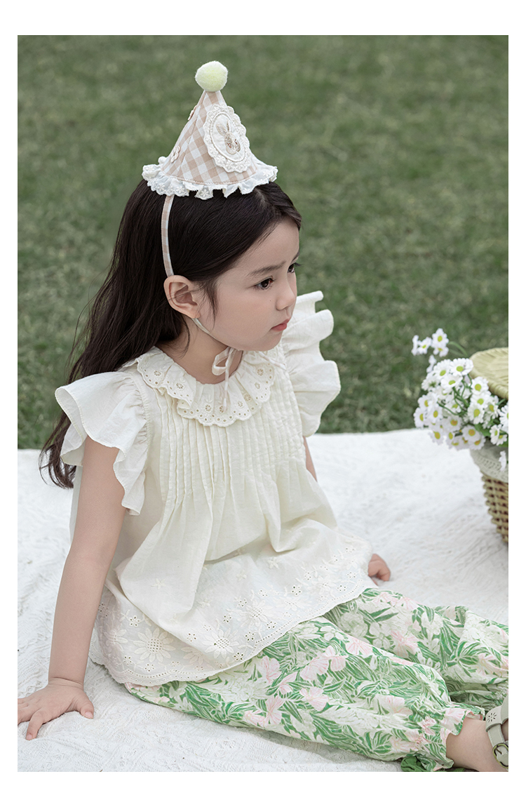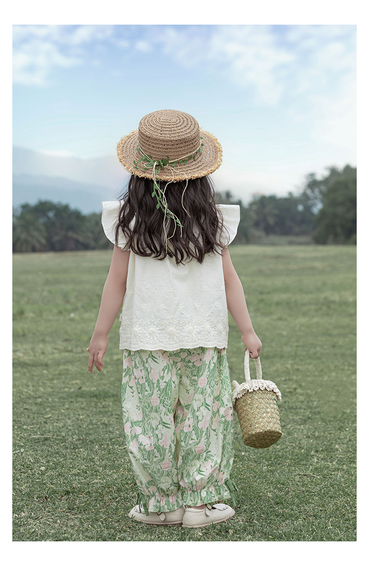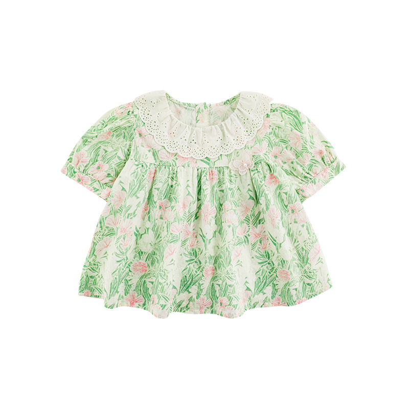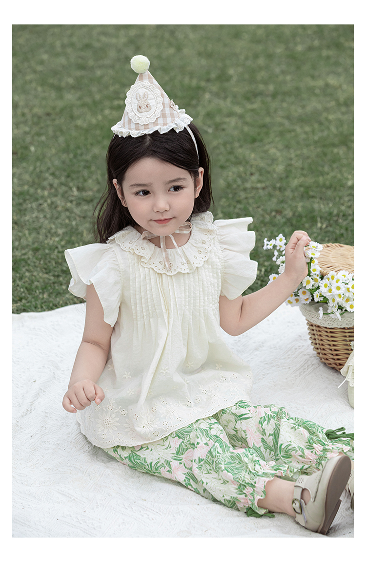Wuri Boyi 소녀의 여름 비밀 영역 시리즈 간단한 원피스 달콤한 주름 거품 소매 인형 셔츠 유행 바지