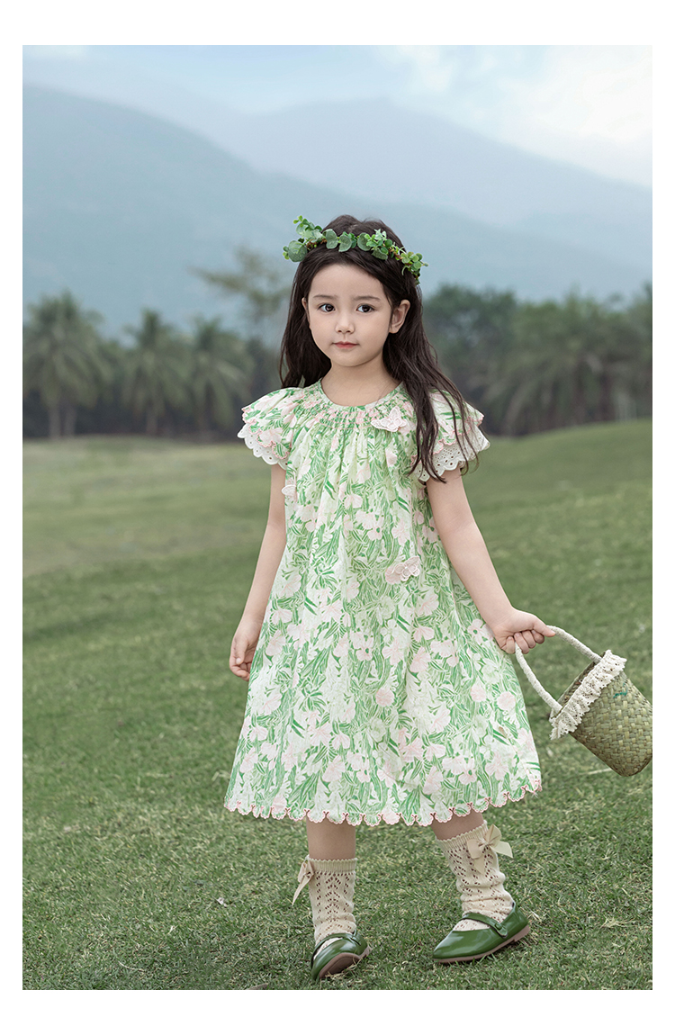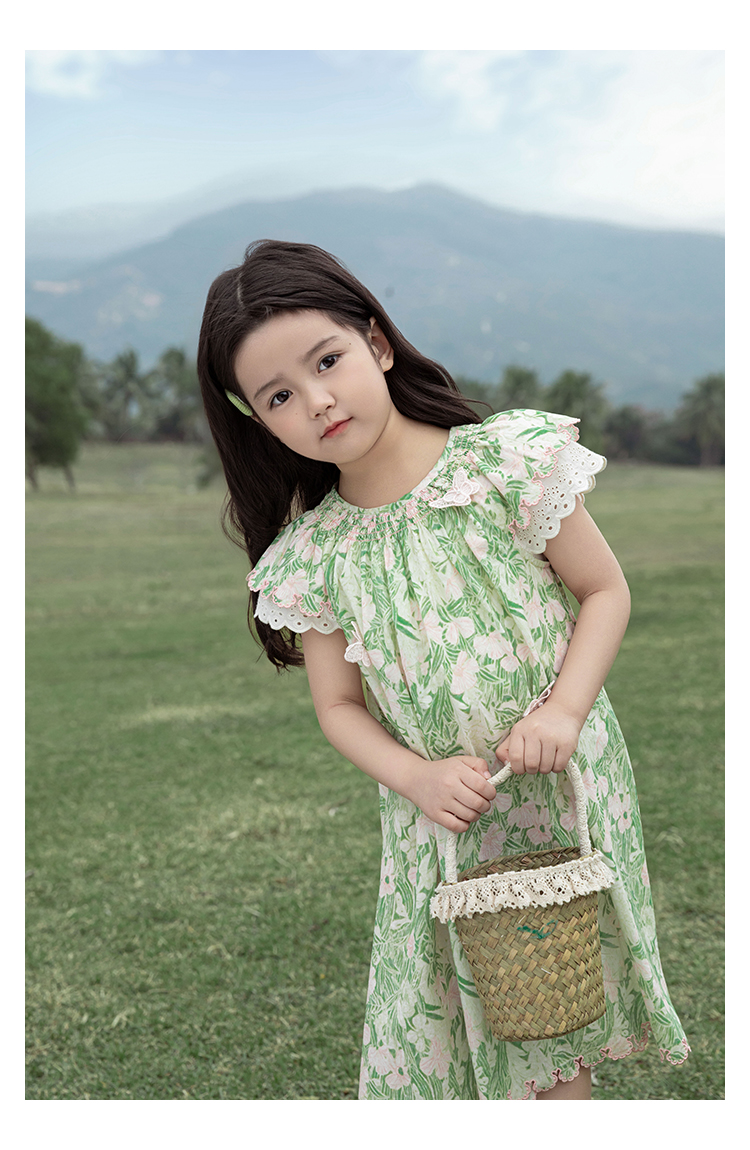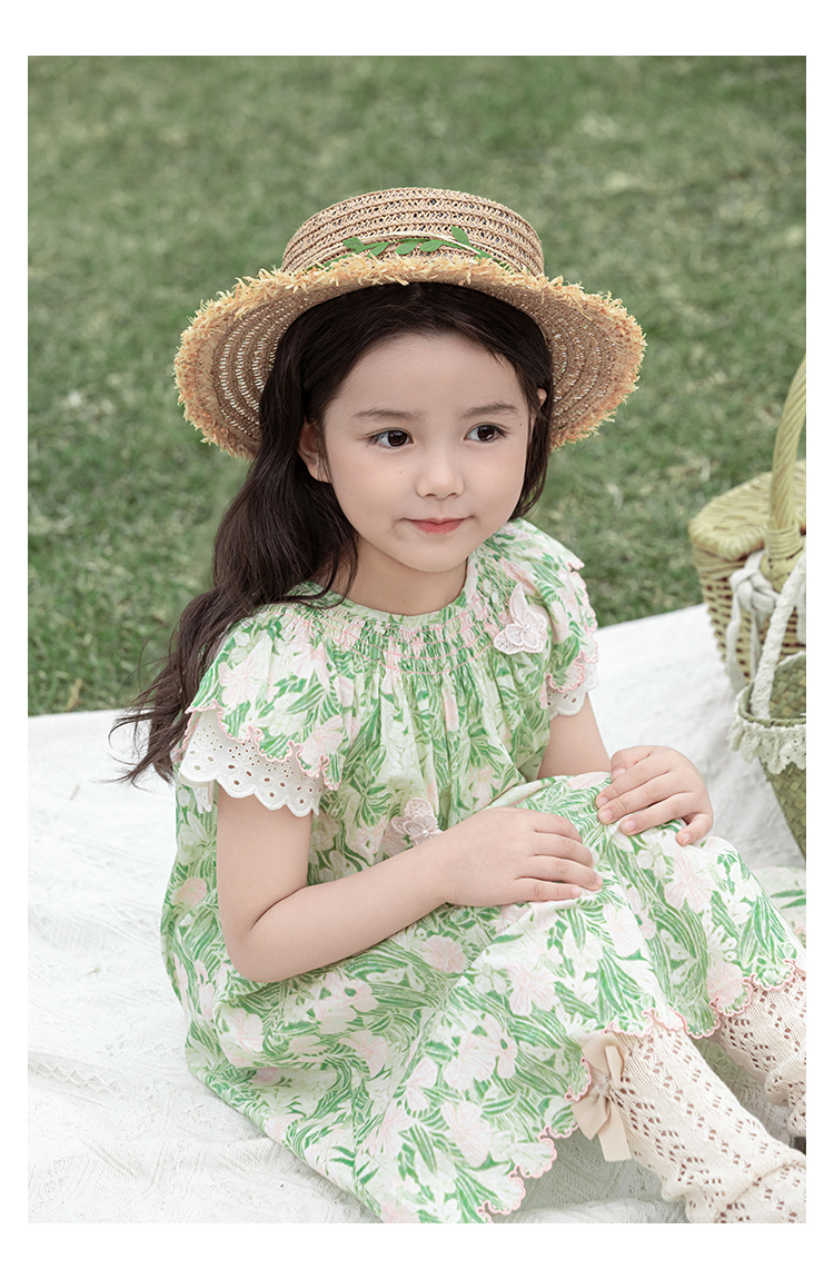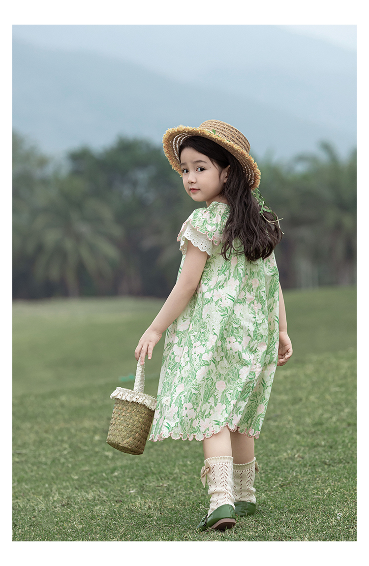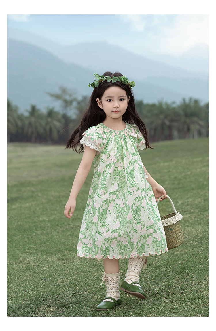 Wuri Boyi 소녀의 여름 비밀 영역 시리즈 간단한 원피스 달콤한 주름 거품 소매 인형 셔츠 유행 바지스토어 가기