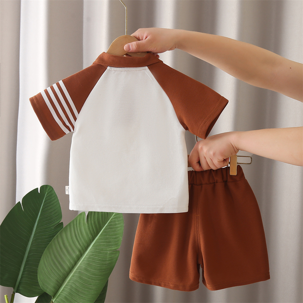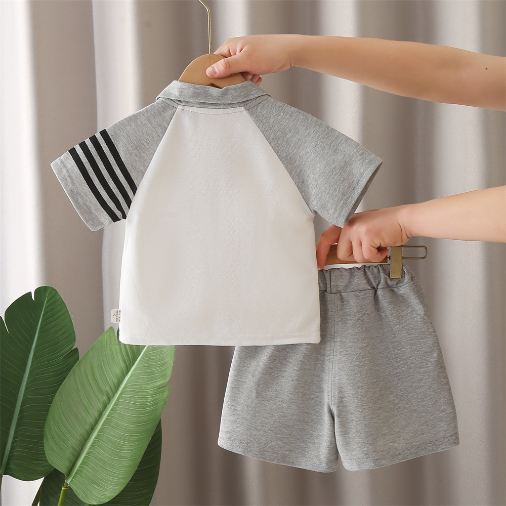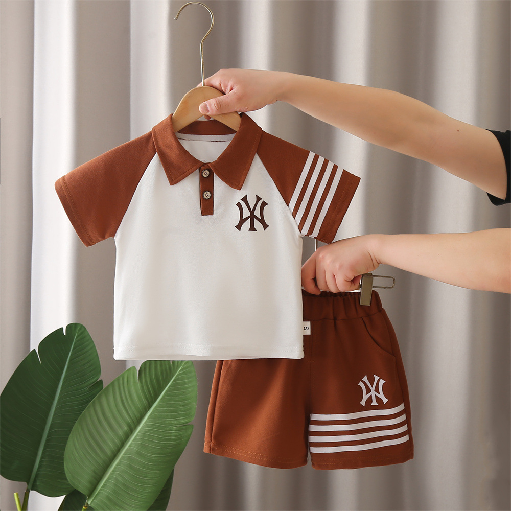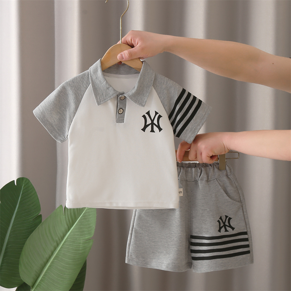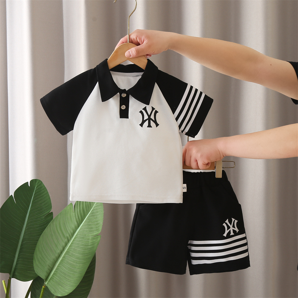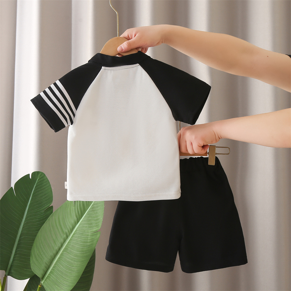 5 개의 작은 7 개의 아동복 2025 여름 새로운 0-4 세 어린이 작살 옷깃 짧은 소매 투피스 세트스토어 가기