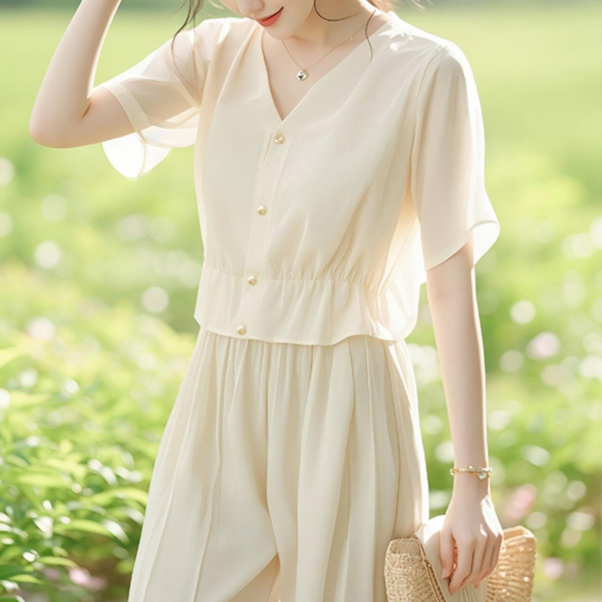 2025 새로운 한국 스타일 나이 감소 아름다운 서양 스타일 작은 셔츠 세련된 살구색 여름 여성을위한 짧은 소매 탑