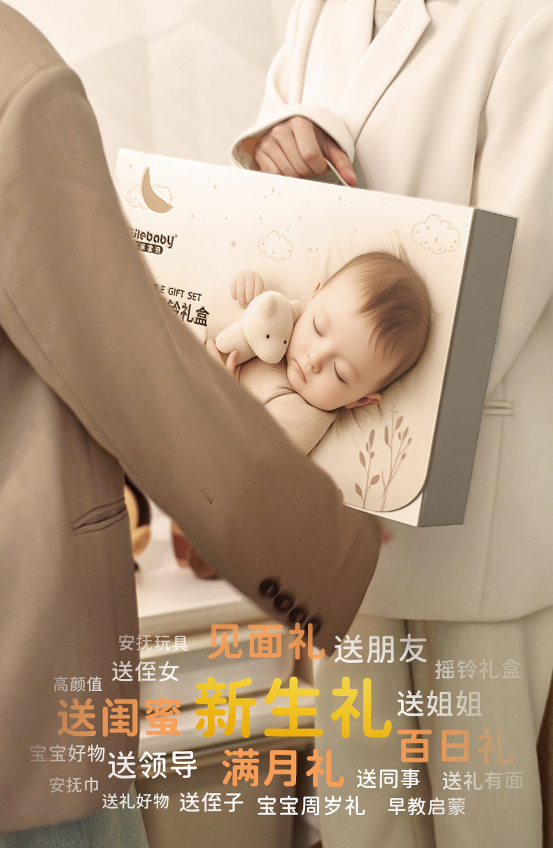 아기 딸랑이 천 장난감 신생아 회의 선물 상자 보름달 아기 선물 컴포트 인형 달 동반 선물스토어 가기