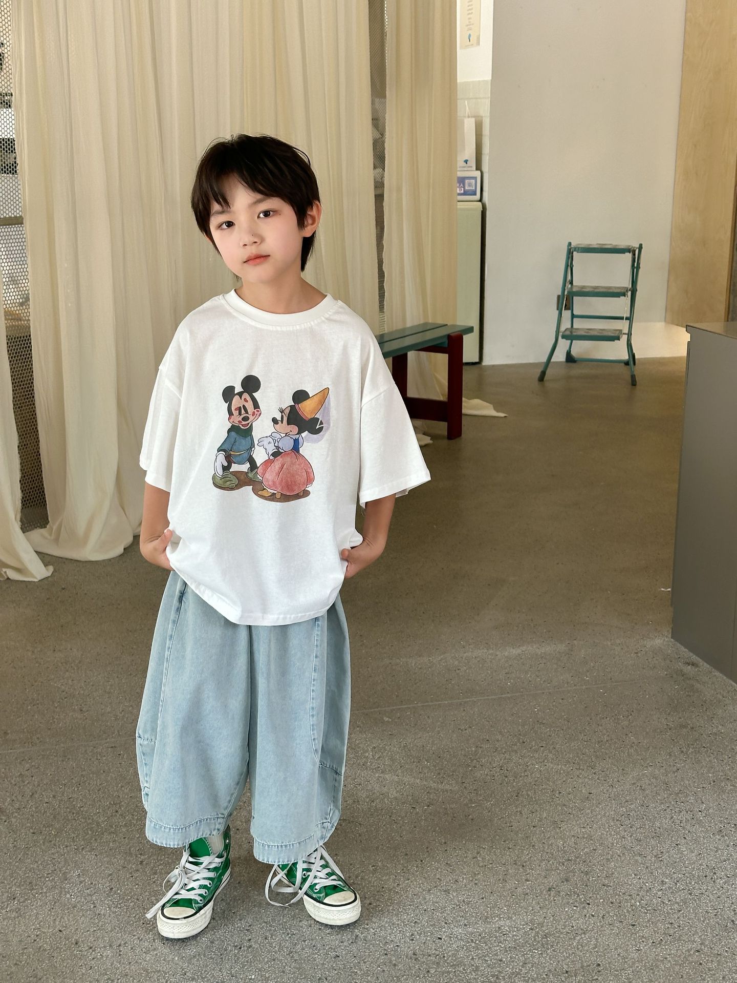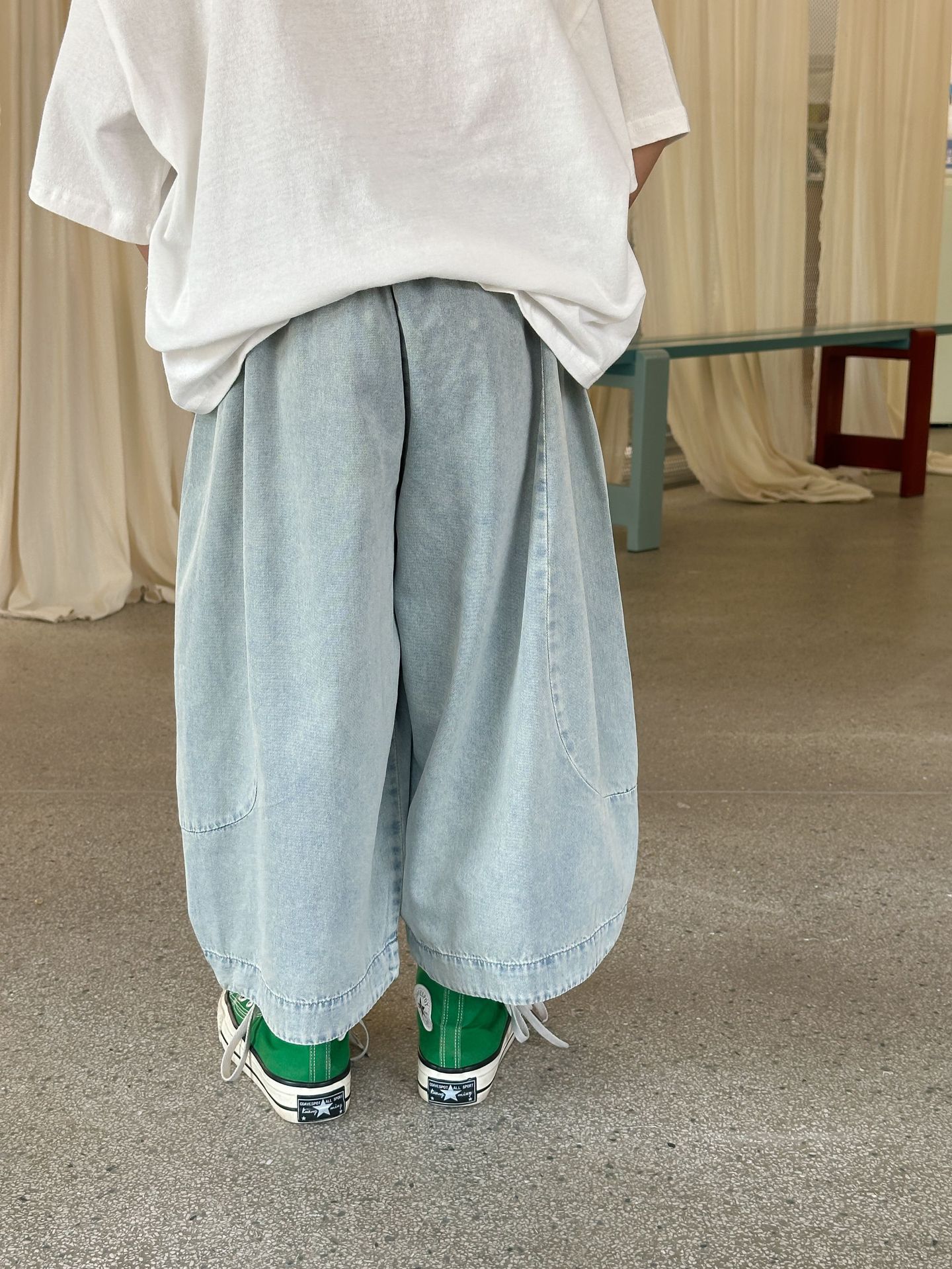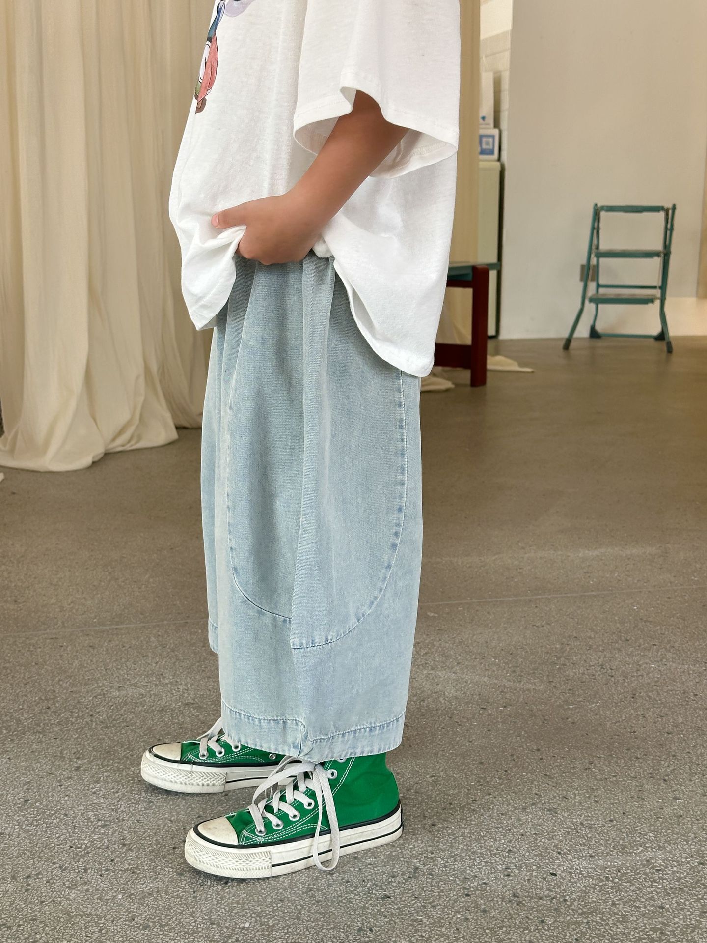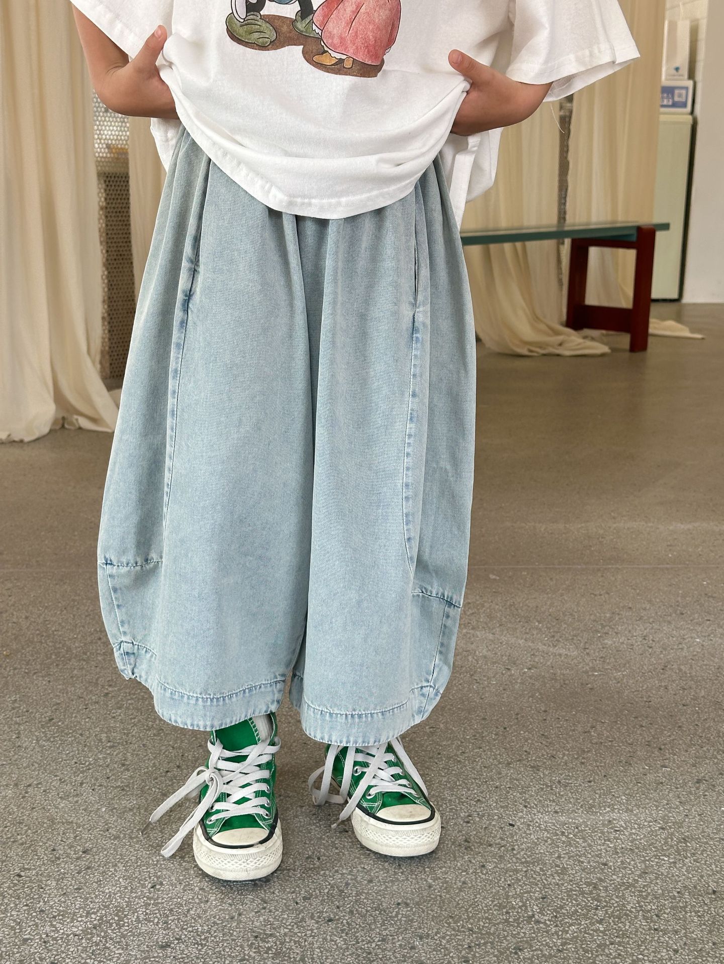 2025 여름 새로운 한국식 어린이 경량 데님 소년 소녀를위한 마체테 바지 루즈 소프트 왁스 와이드 레그 9 포인트 트렌디 바지스토어 가기