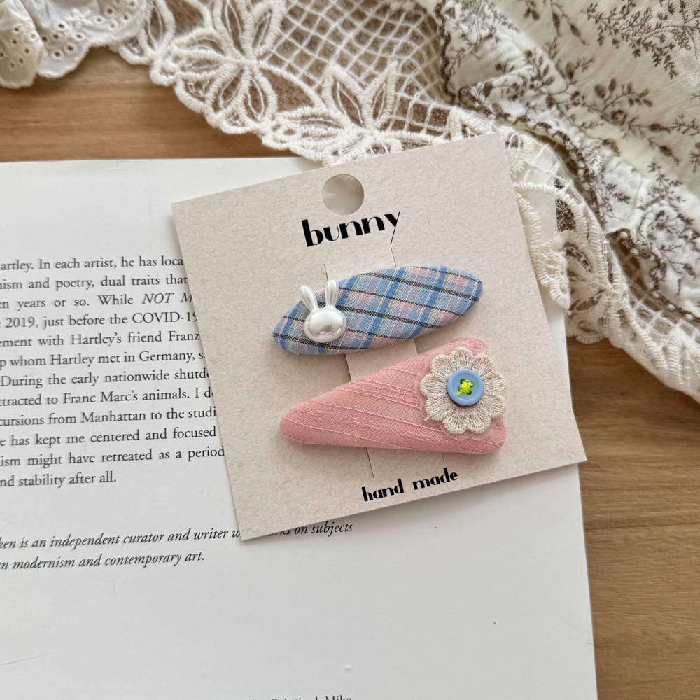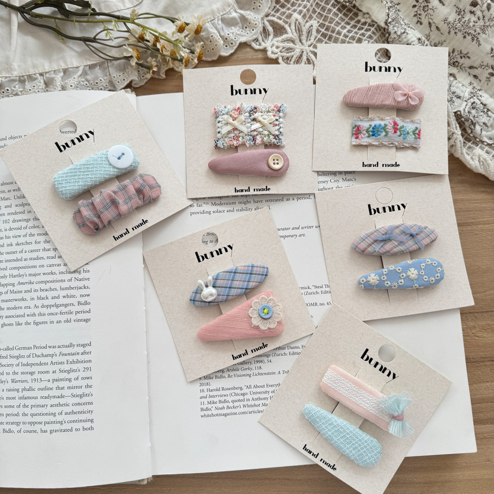 한국식 심플 블루 핑크 원단 BB 클립 어린이 헤어핀 스위트 걸스 헤어 액세서리 우아한 사이드 뱅 클립 헤드웨어