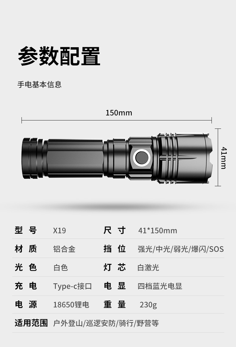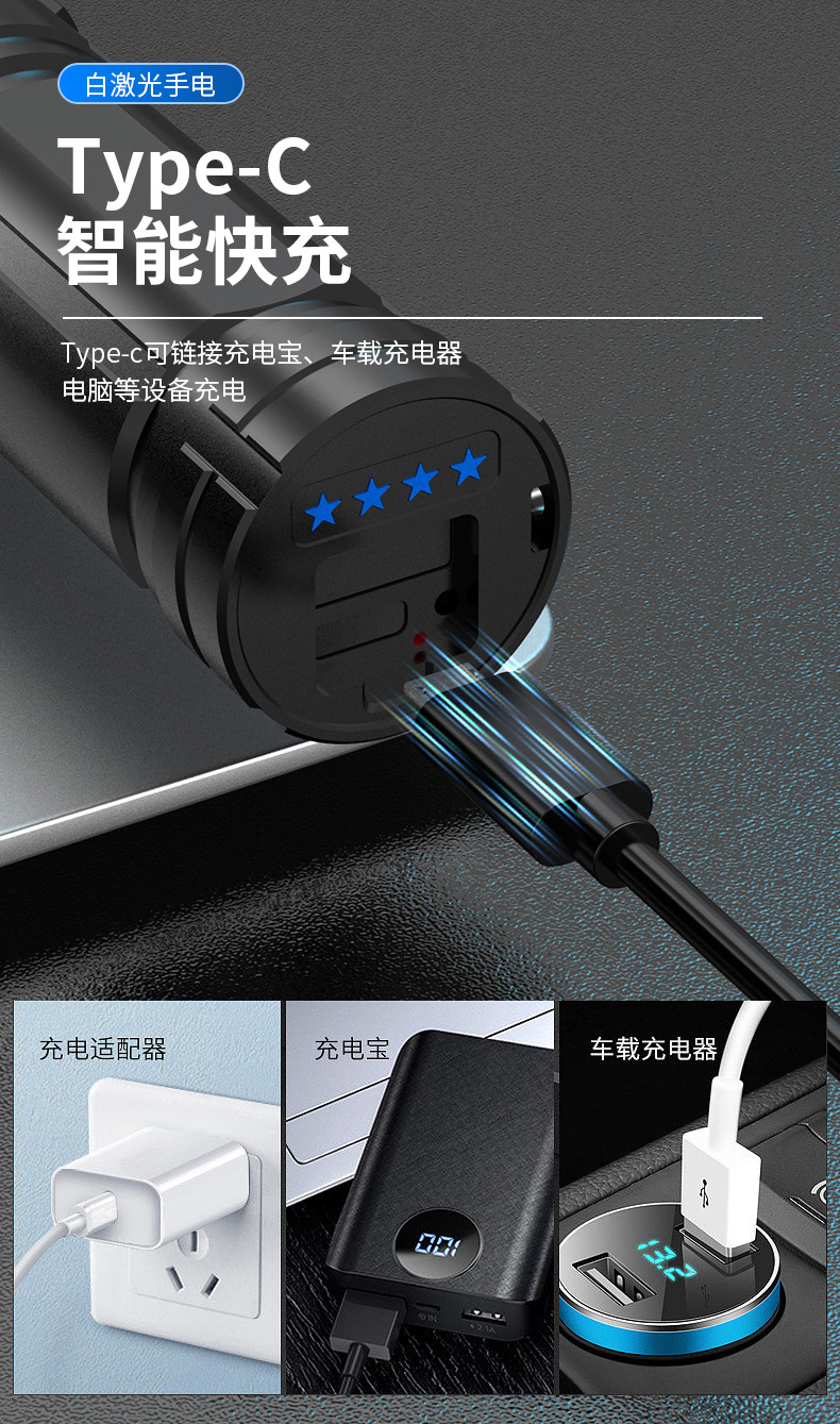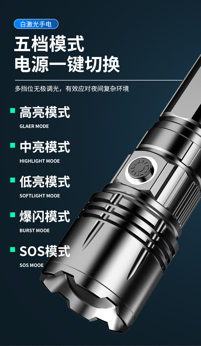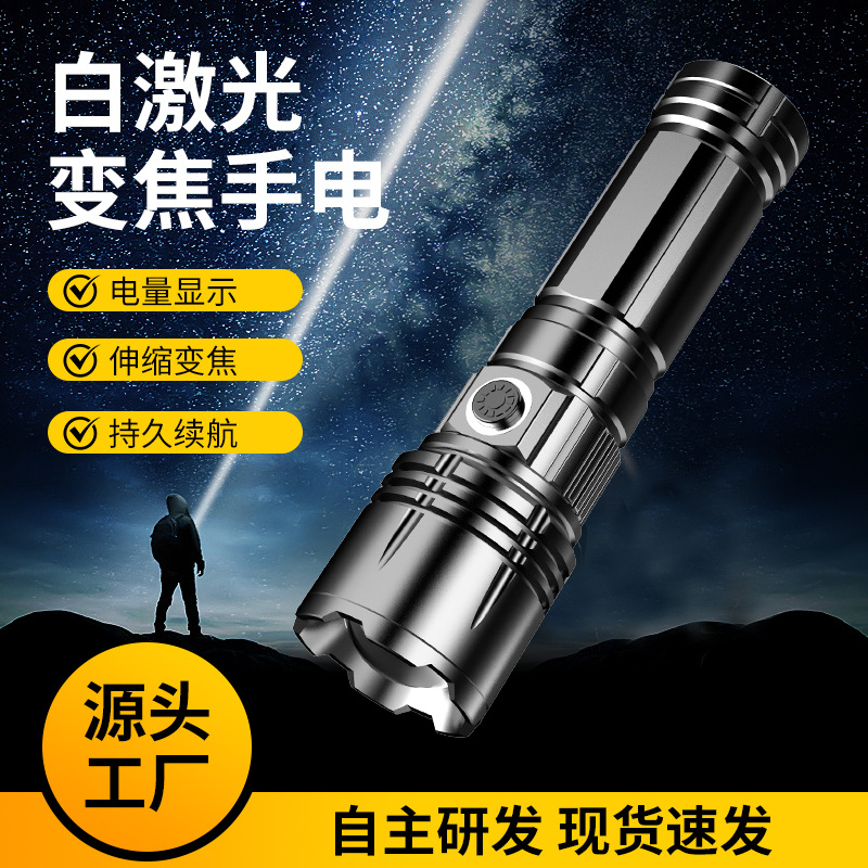 손전등 강한 빛 충전식 대용량 및 긴 배터리 수명 야외 순찰 장거리 소형 휴대용 레이저 총 조명스토어 가기