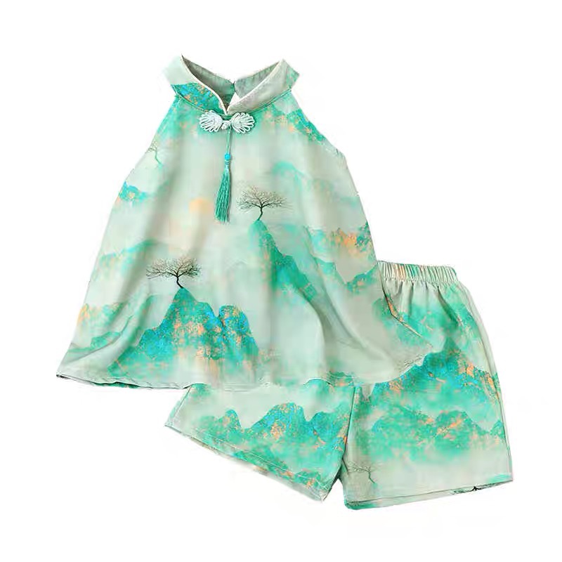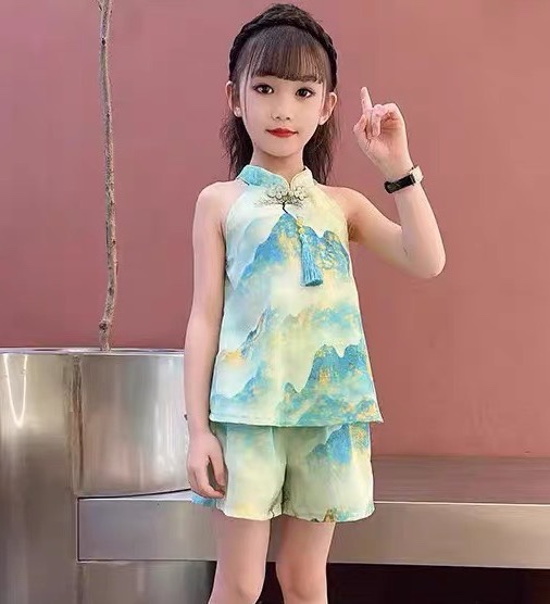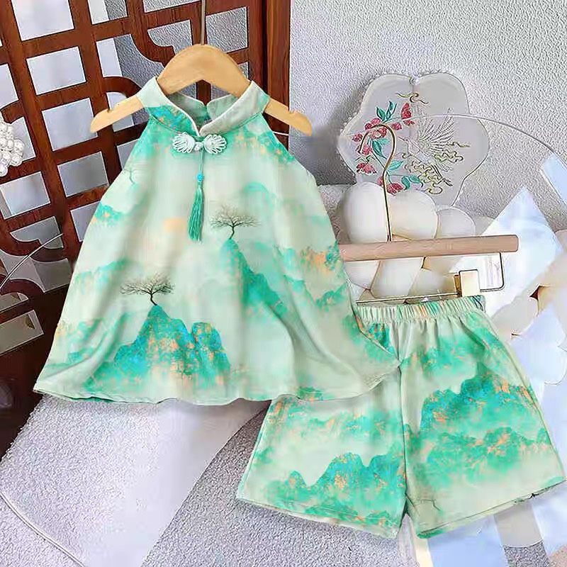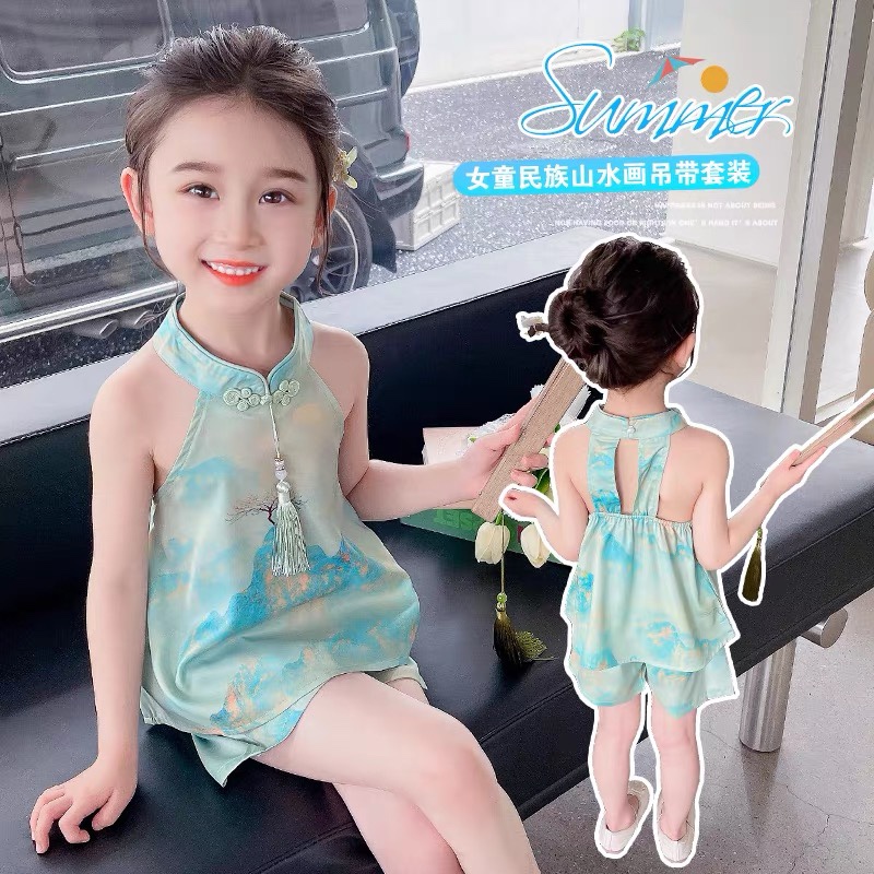 소녀들의 여름 슬링 한푸 세트 2025 년 새 어린이 국가패션 슈퍼 요정 청삼 여성의 보물