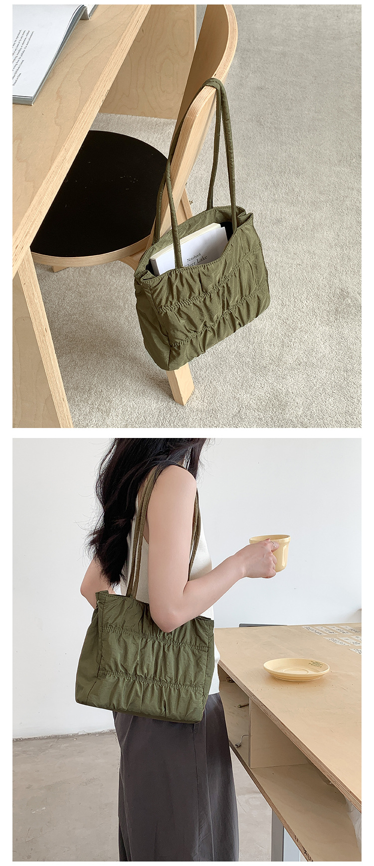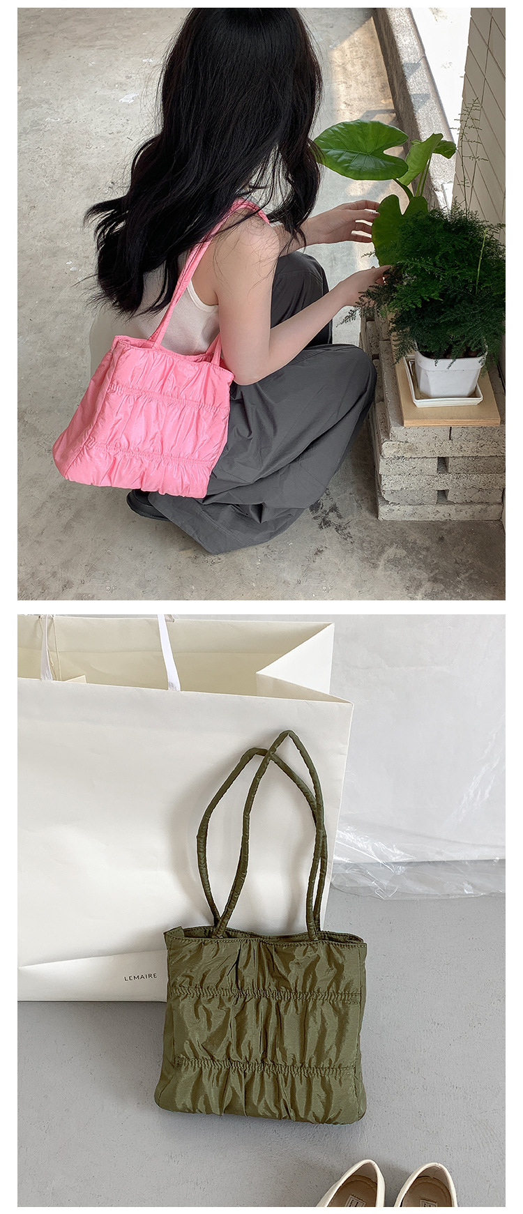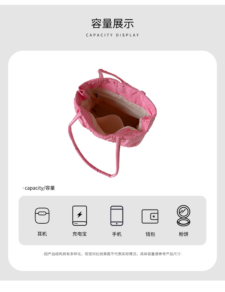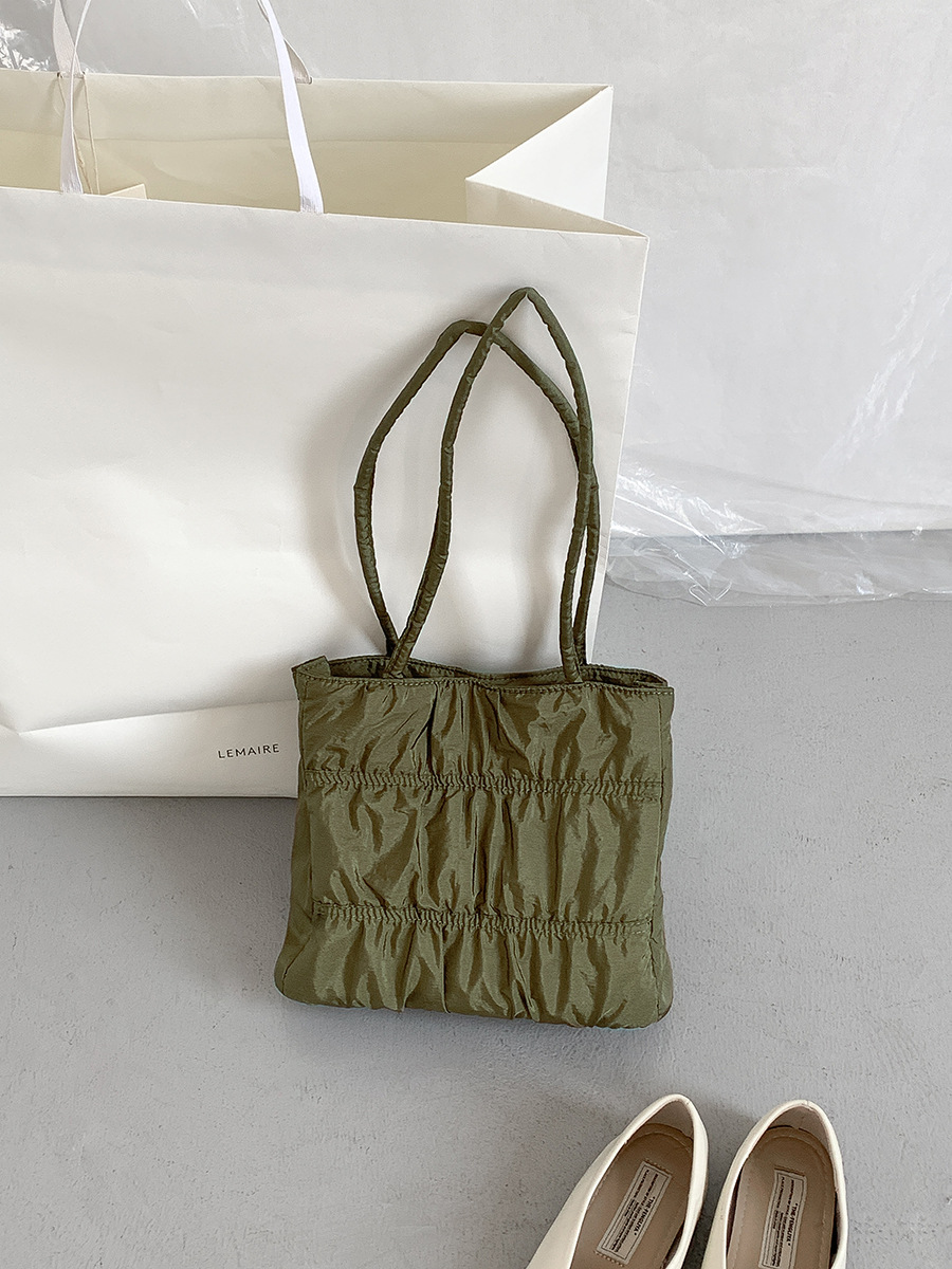 한국 스타일 숄더백 대용량 여성용 나일론 주름 가방 독특한 봄 여름 신상 심플한 출퇴근 스타일 토트백 여성용스토어 가기