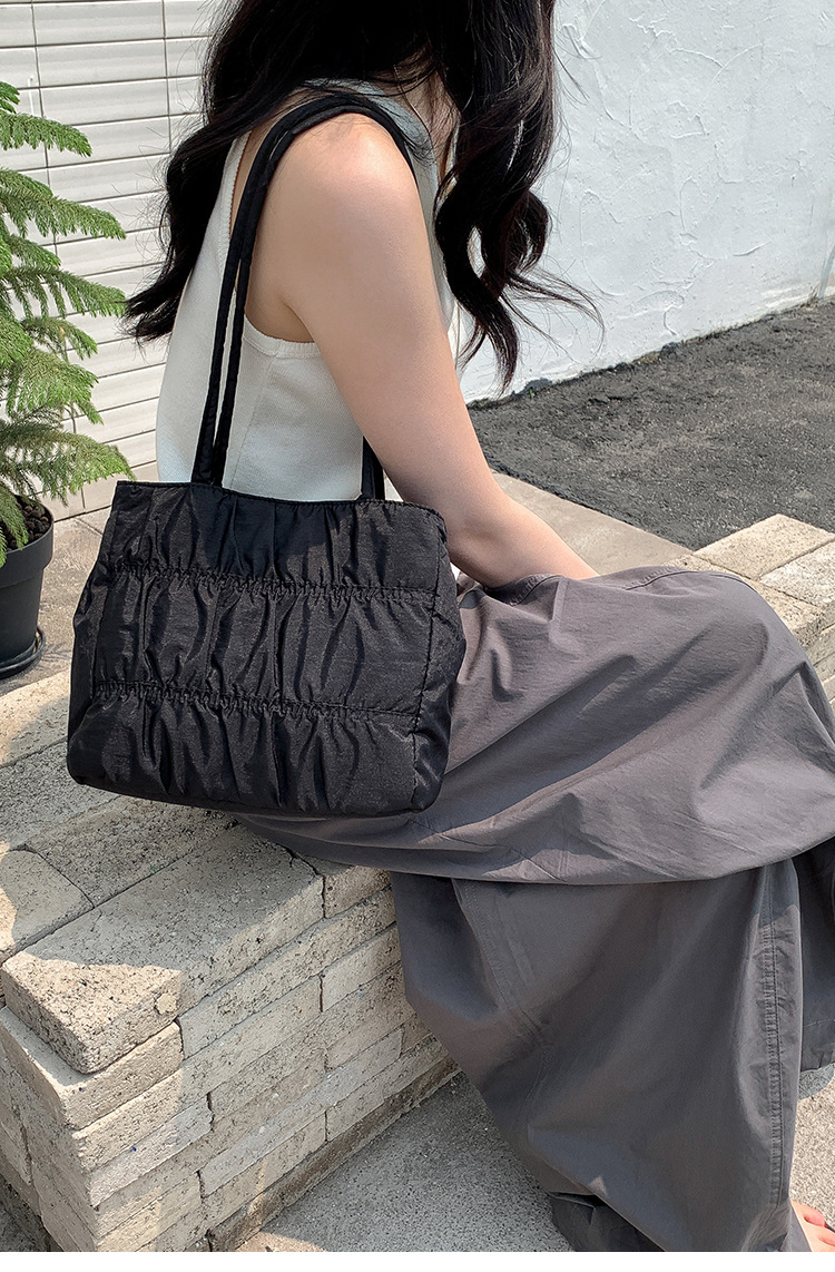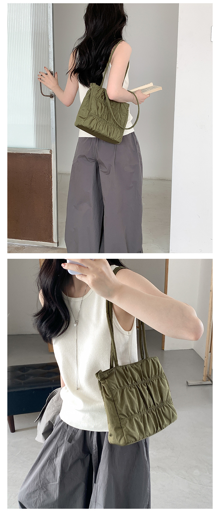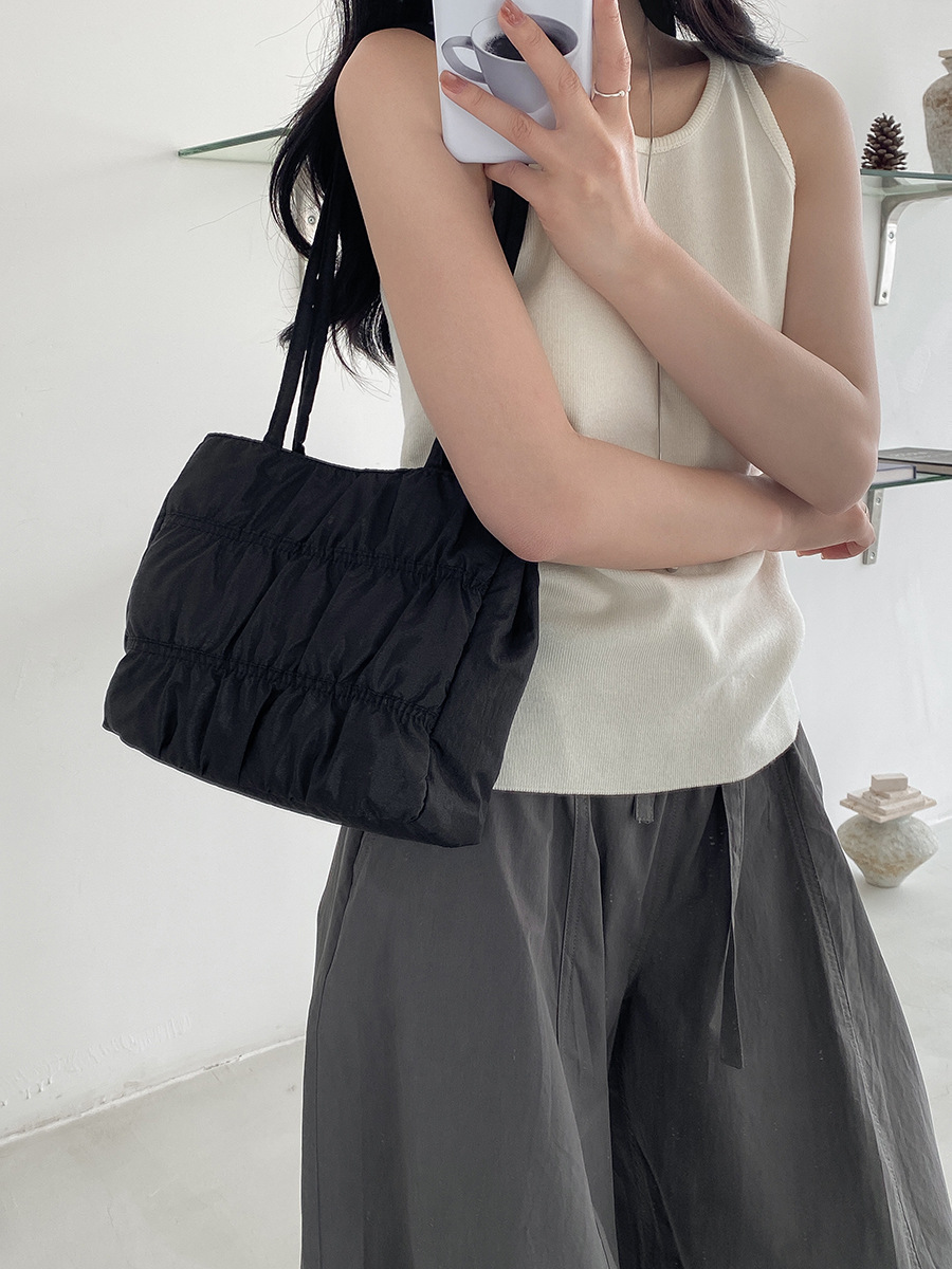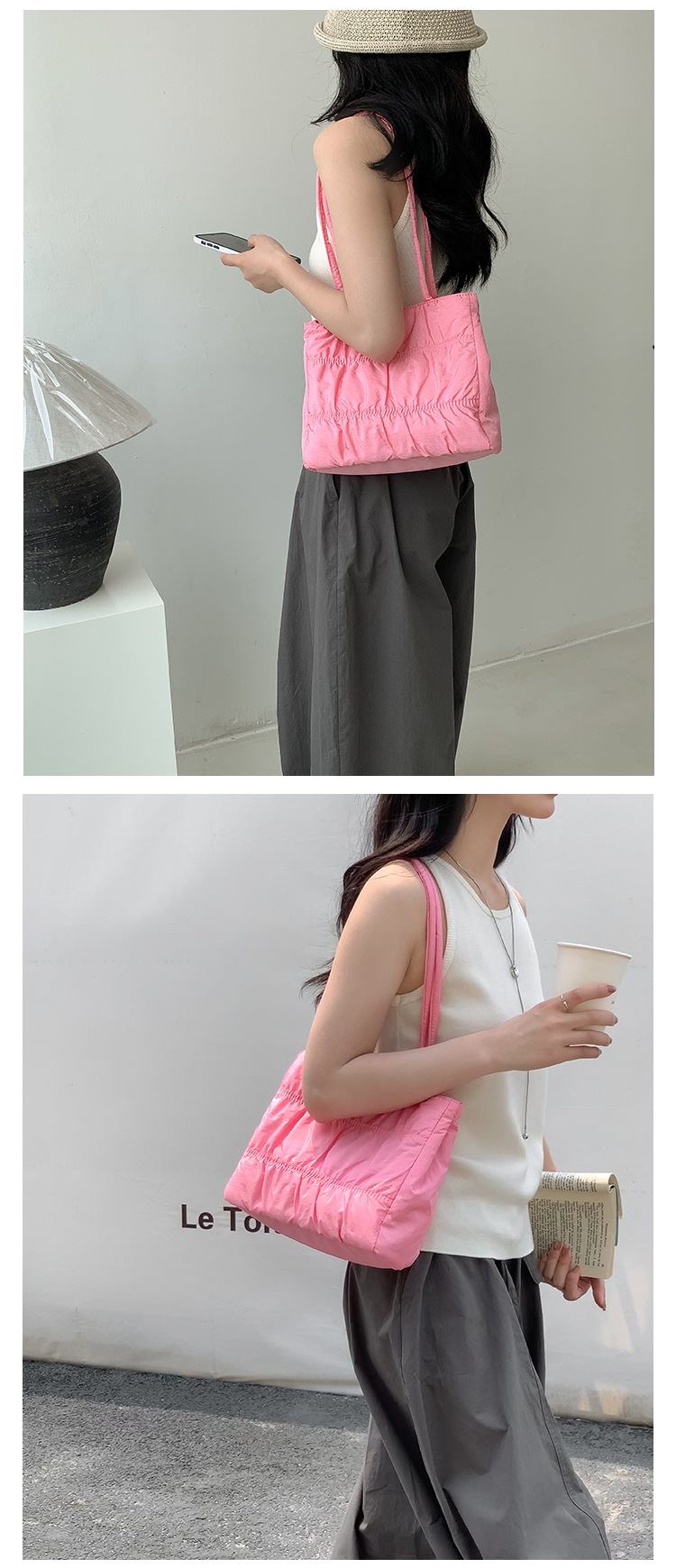 한국 스타일 숄더백 대용량 여성용 나일론 주름 가방 독특한 봄 여름 신상 심플한 출퇴근 스타일 토트백 여성용스토어 가기