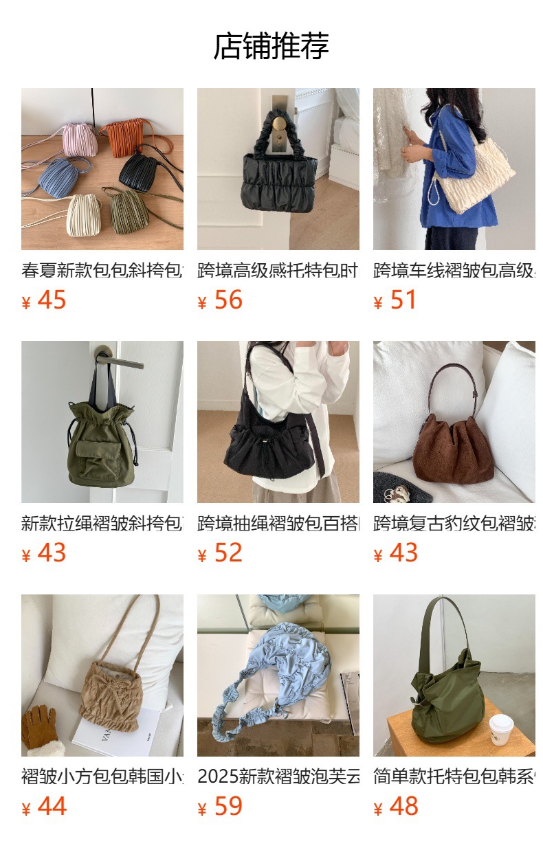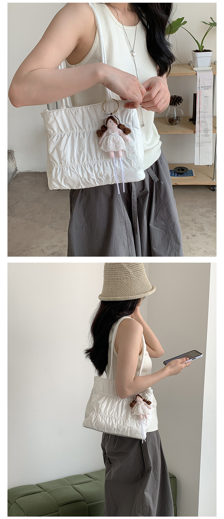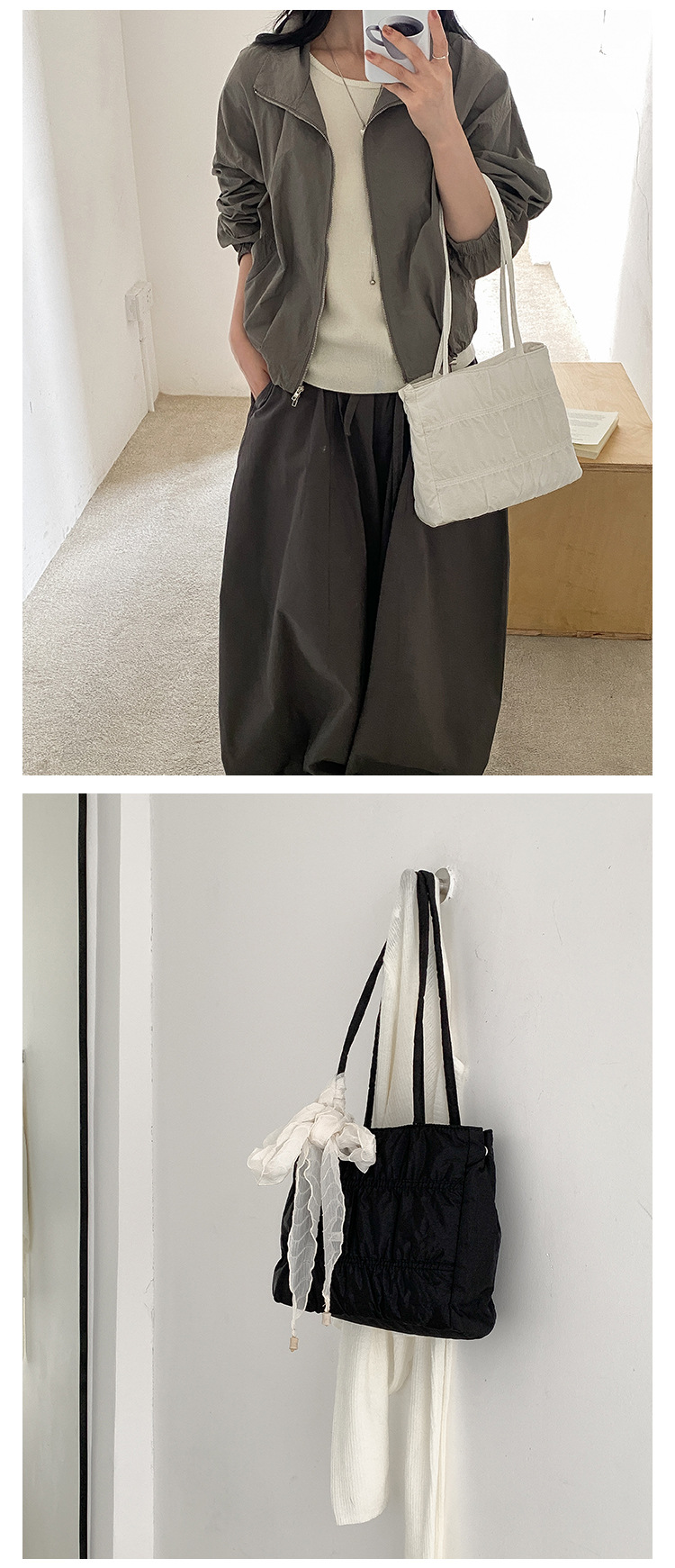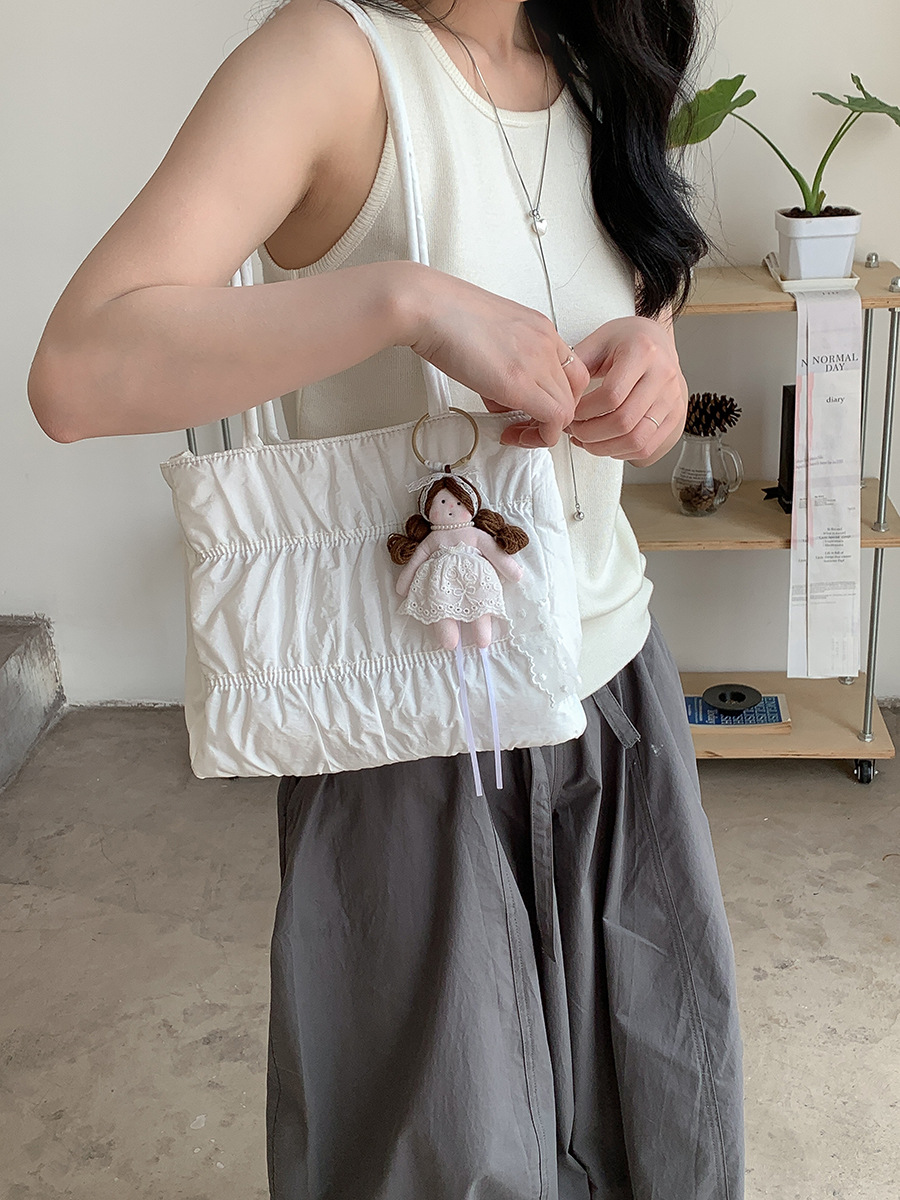 한국 스타일 숄더백 대용량 여성용 나일론 주름 가방 독특한 봄 여름 신상 심플한 출퇴근 스타일 토트백 여성용스토어 가기