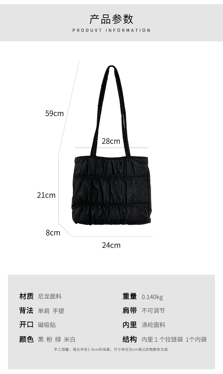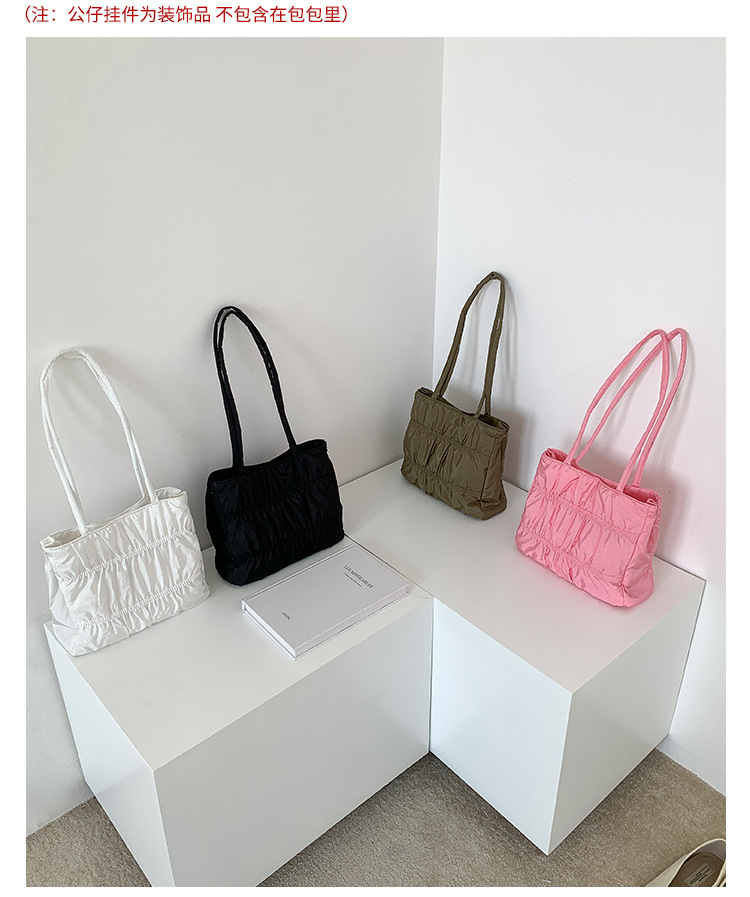 한국 스타일 숄더백 대용량 여성용 나일론 주름 가방 독특한 봄 여름 신상 심플한 출퇴근 스타일 토트백 여성용