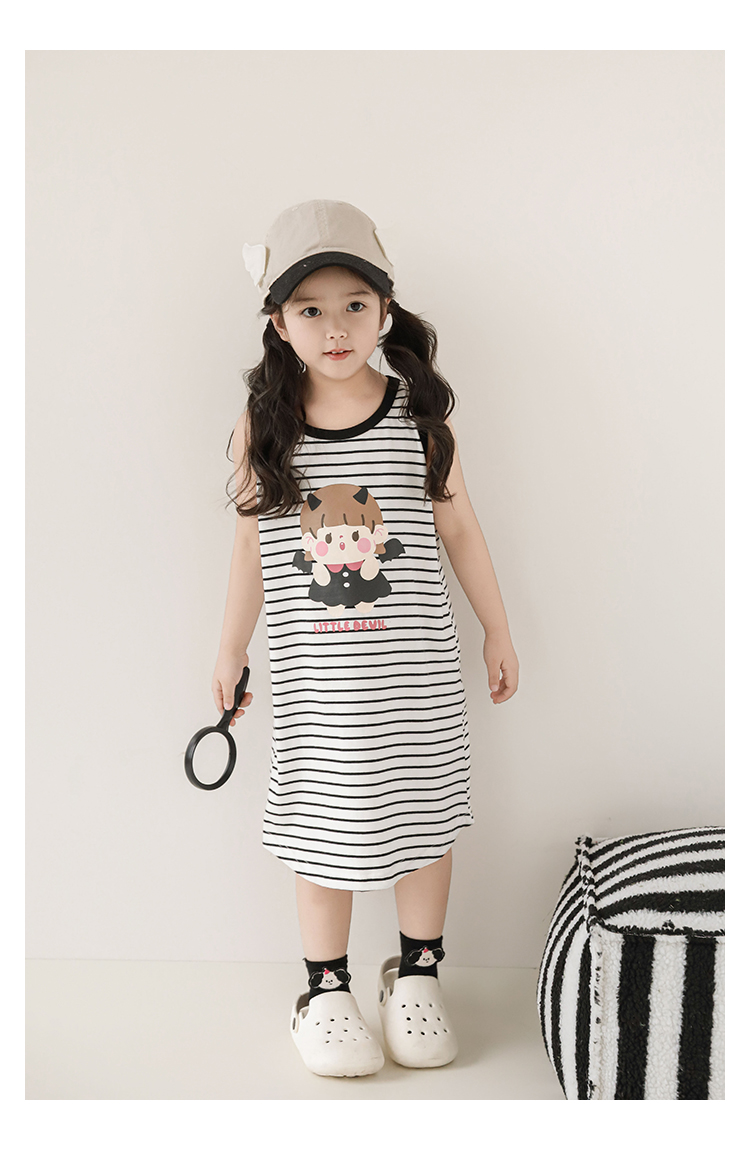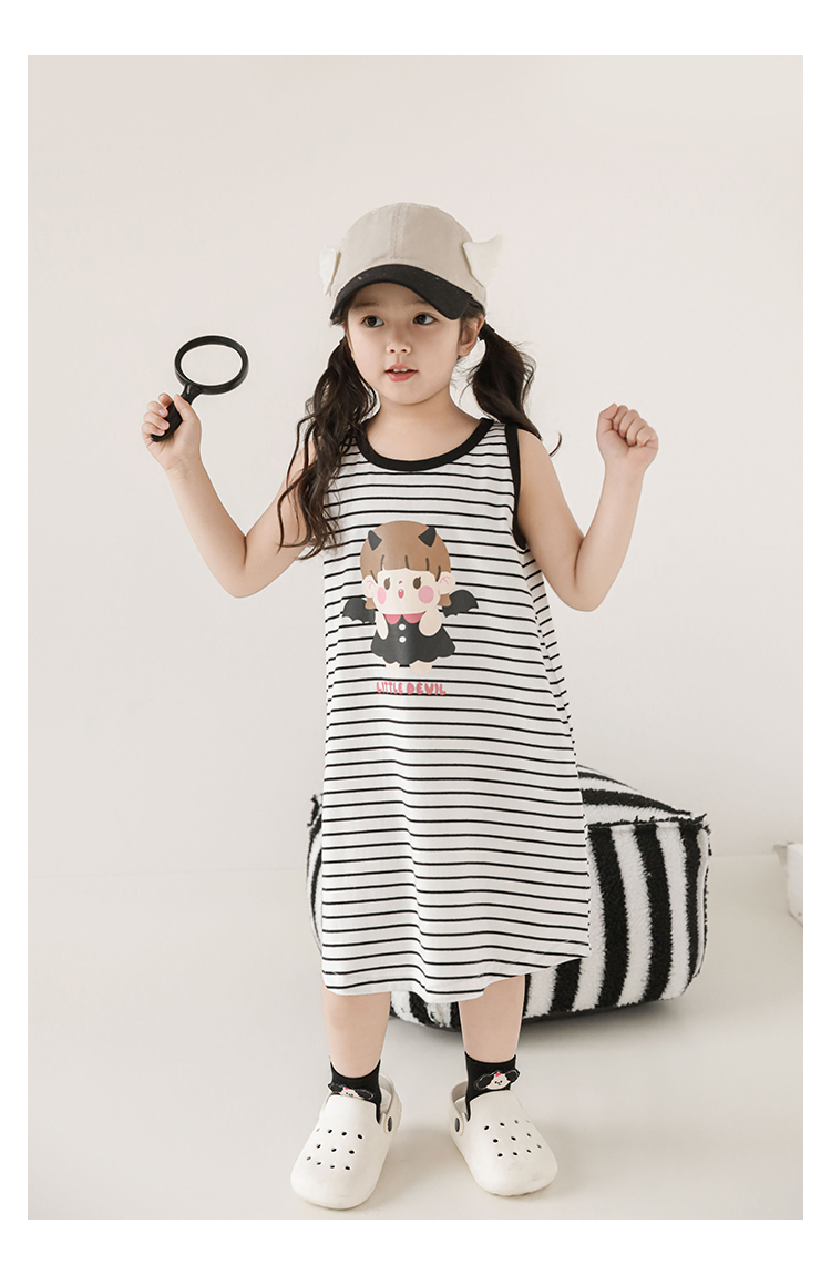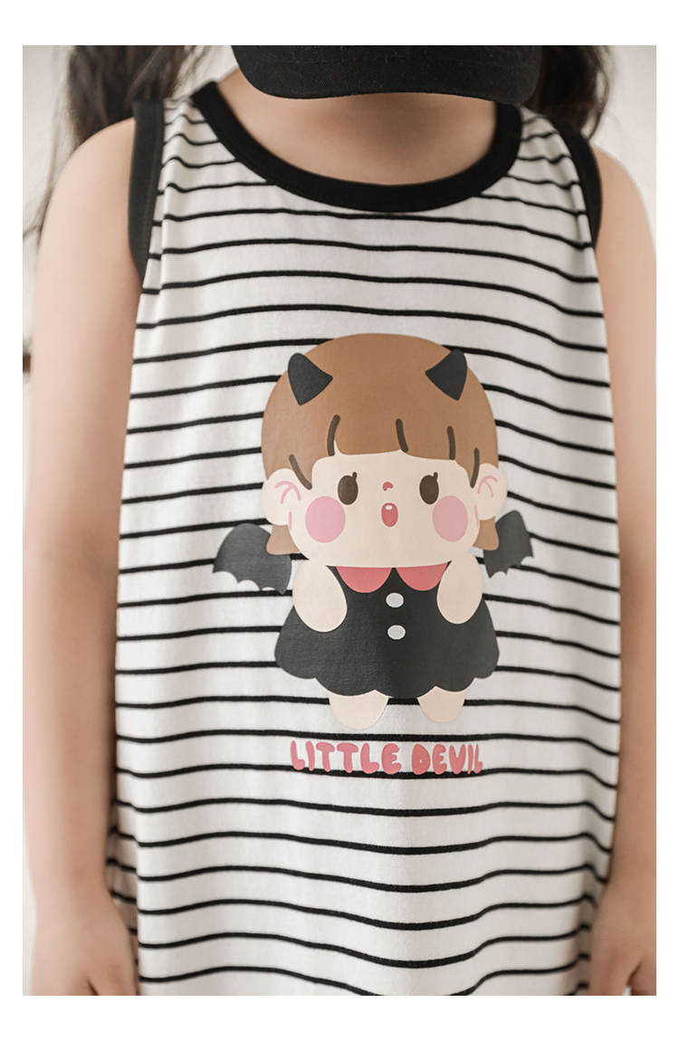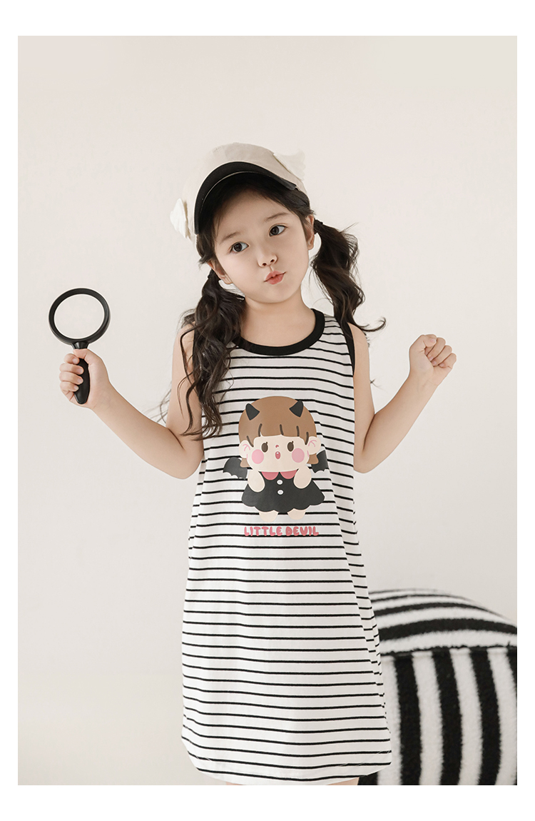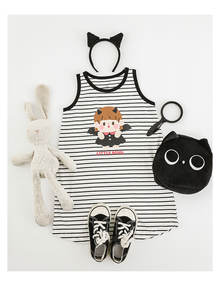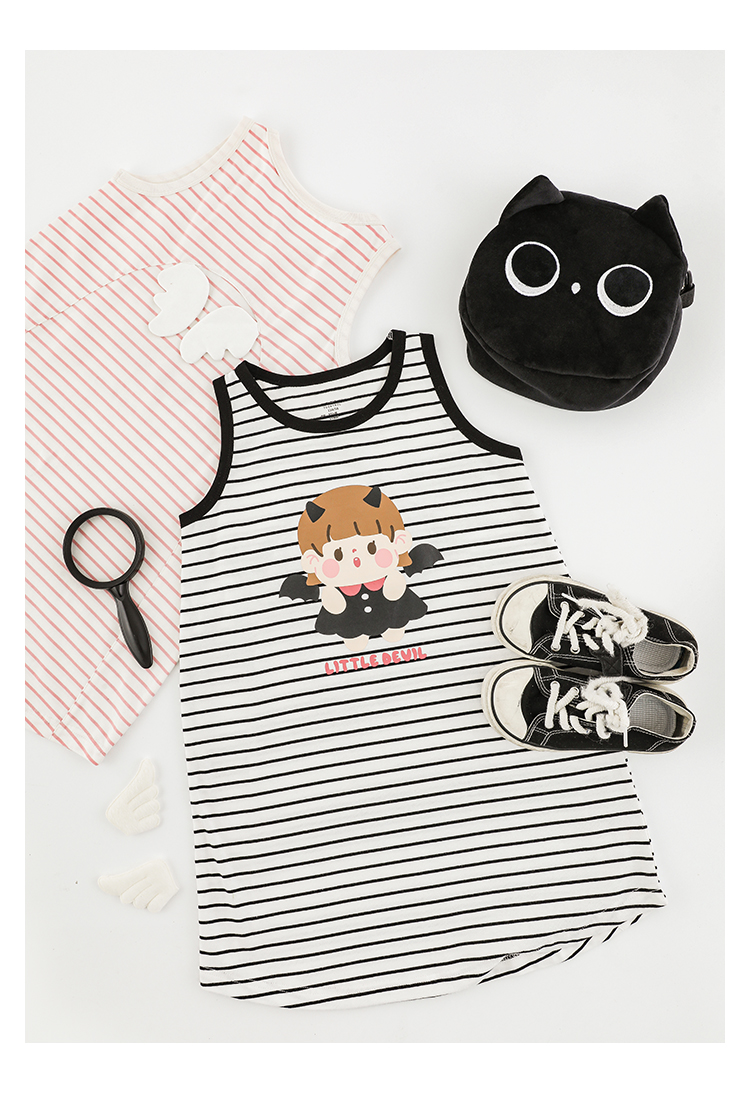 내 갈비뼈 소녀의 악마 천사 인쇄 장식 Vic 원피스 2025 여름 귀여운 명암 색 줄무늬 원피스스토어 가기