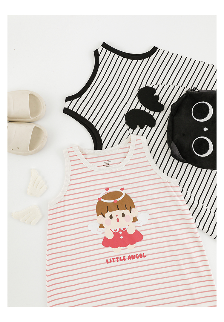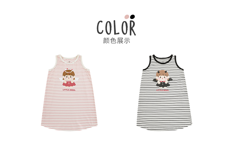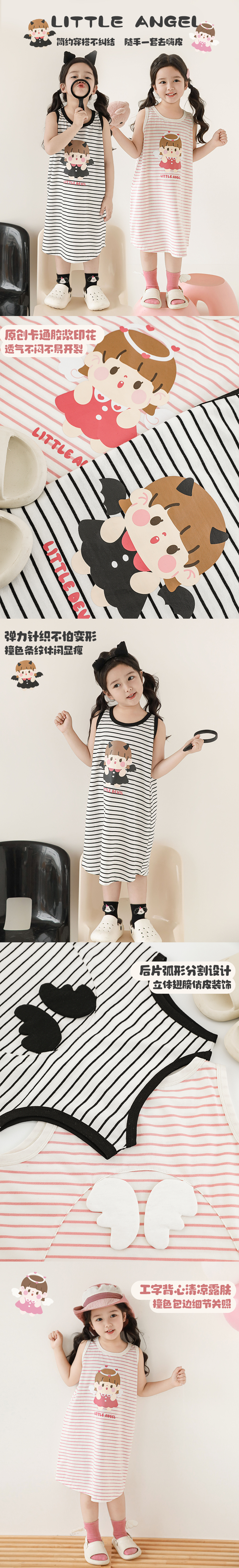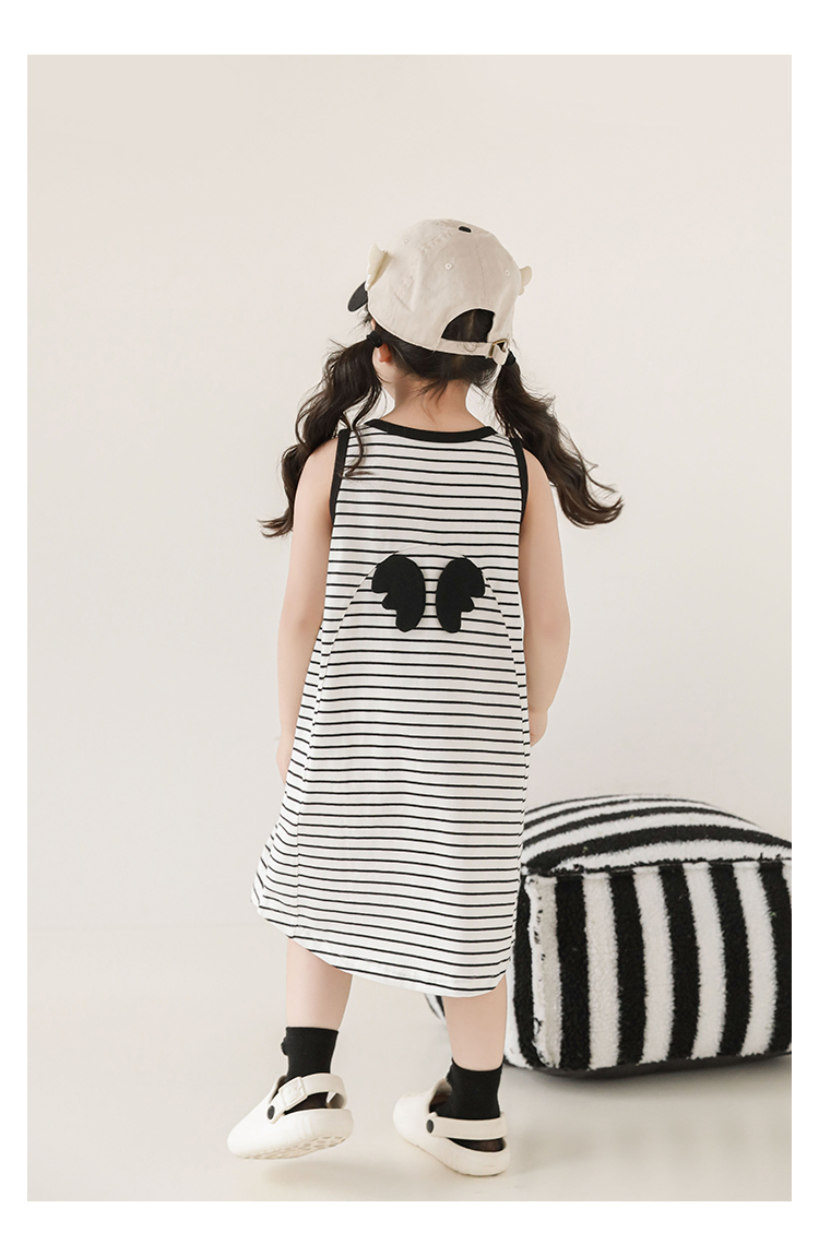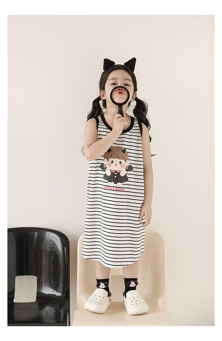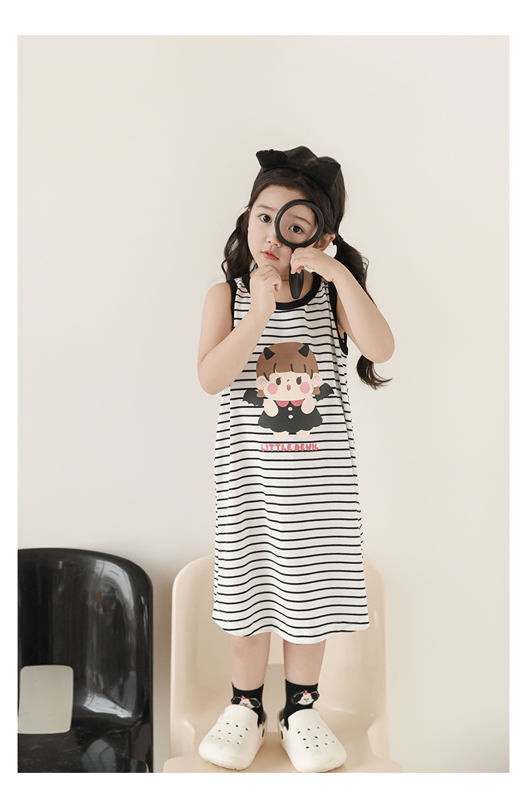 내 갈비뼈 소녀의 악마 천사 인쇄 장식 Vic 원피스 2025 여름 귀여운 명암 색 줄무늬 원피스스토어 가기