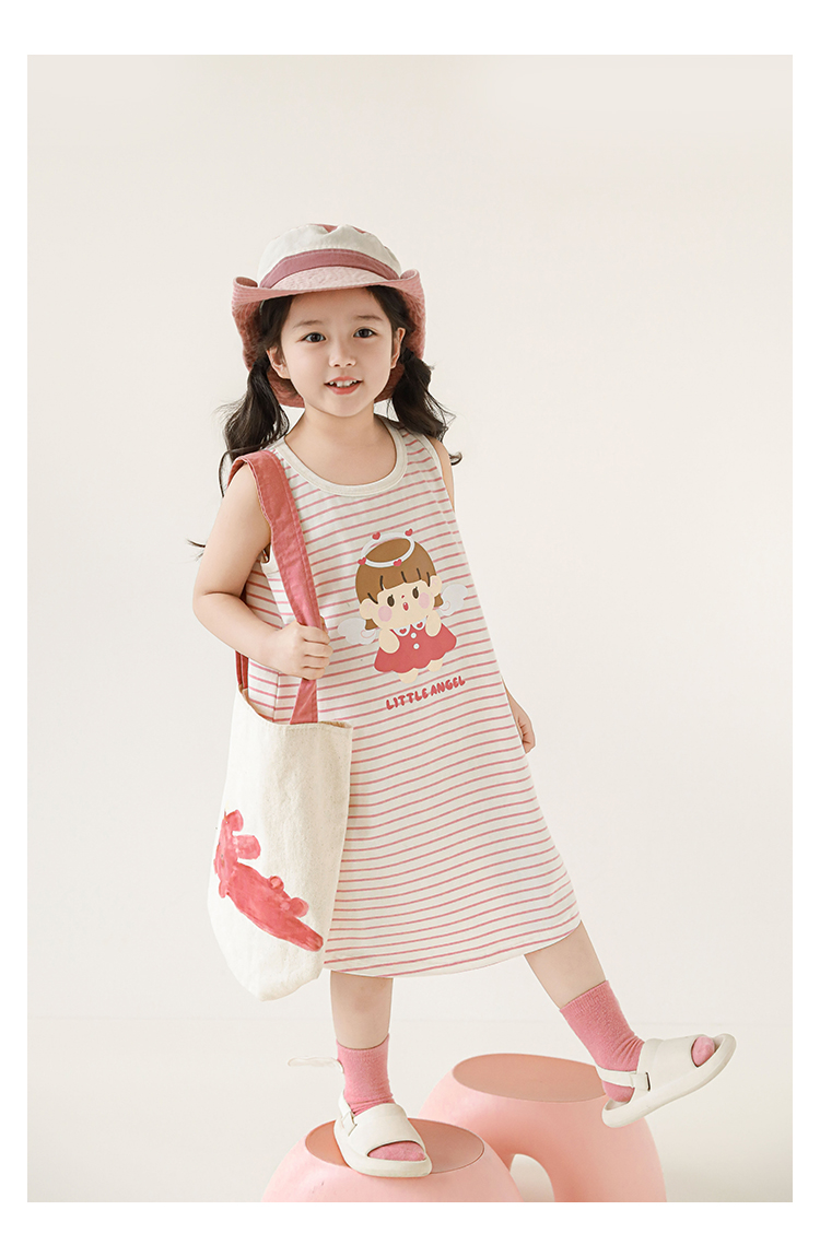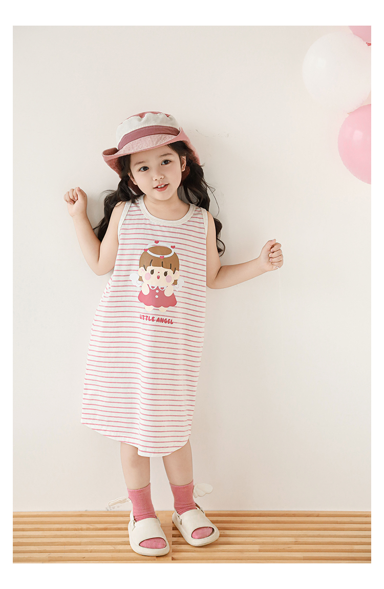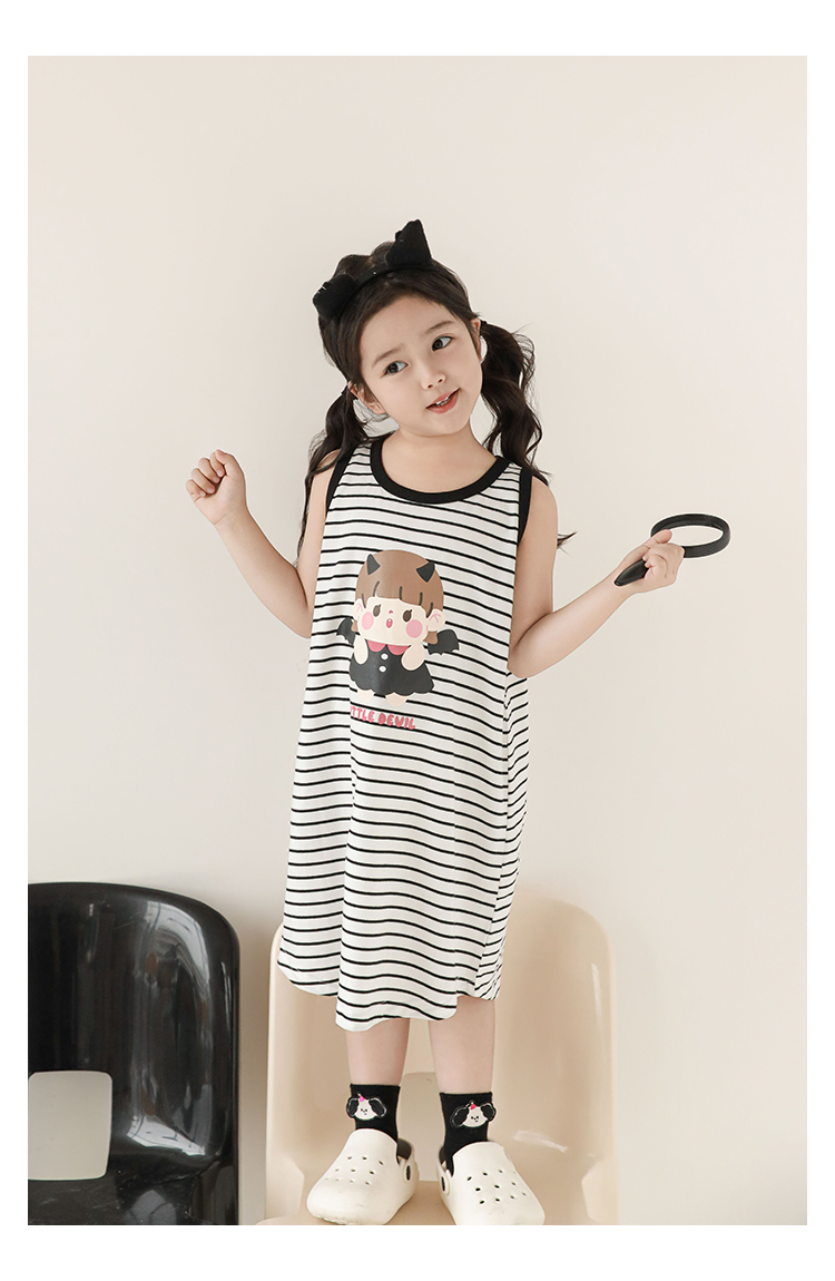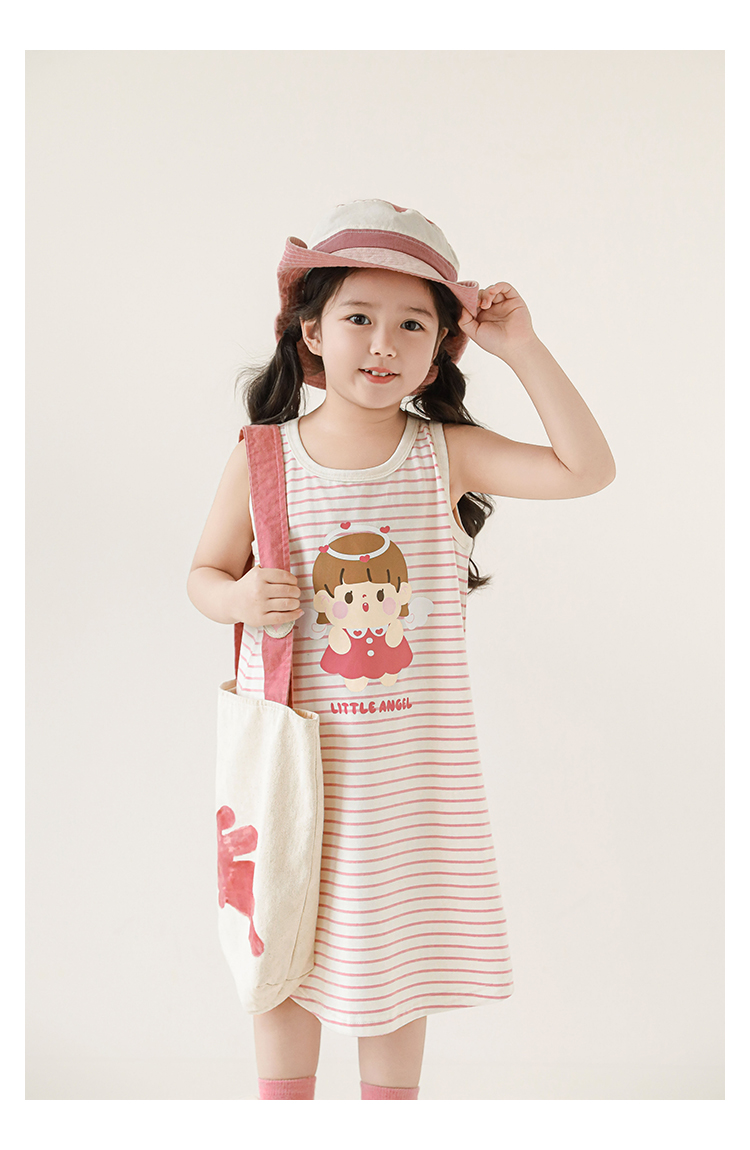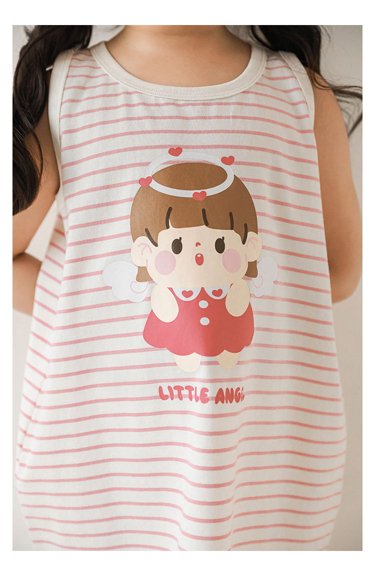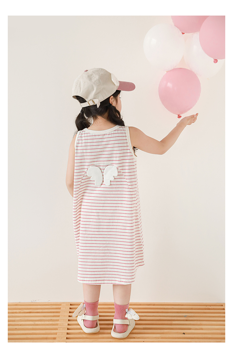 내 갈비뼈 소녀의 악마 천사 인쇄 장식 Vic 원피스 2025 여름 귀여운 명암 색 줄무늬 원피스스토어 가기