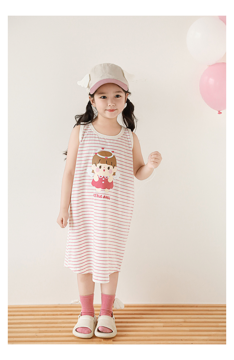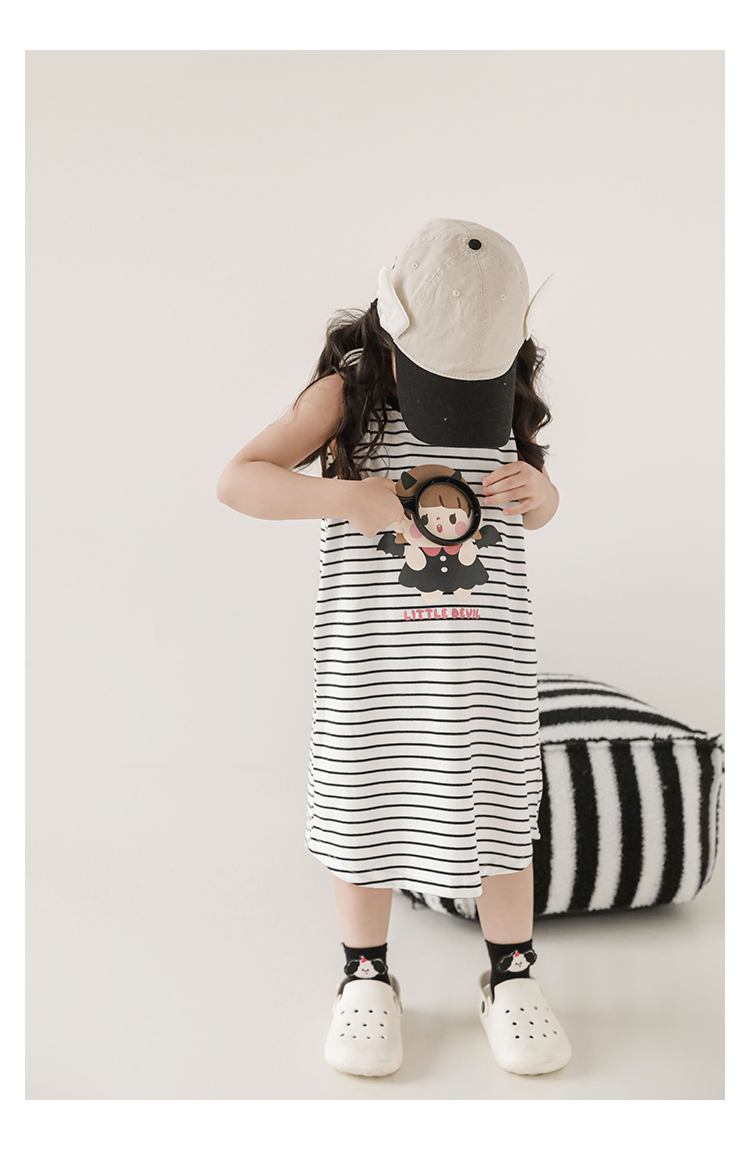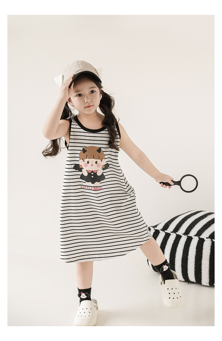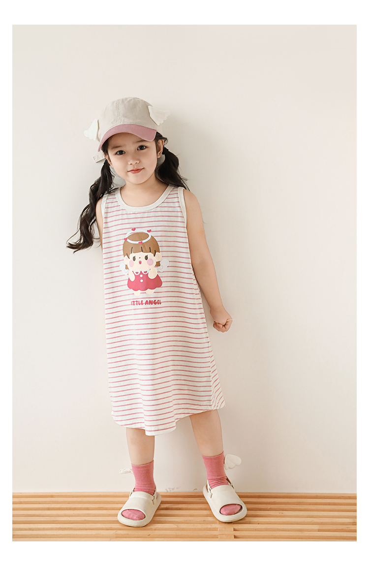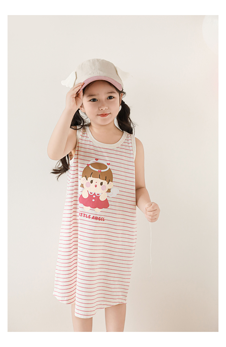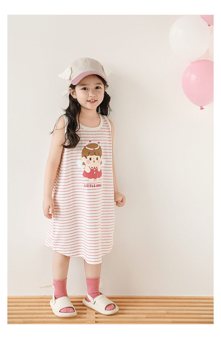 내 갈비뼈 소녀의 악마 천사 인쇄 장식 Vic 원피스 2025 여름 귀여운 명암 색 줄무늬 원피스스토어 가기
