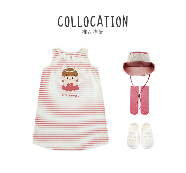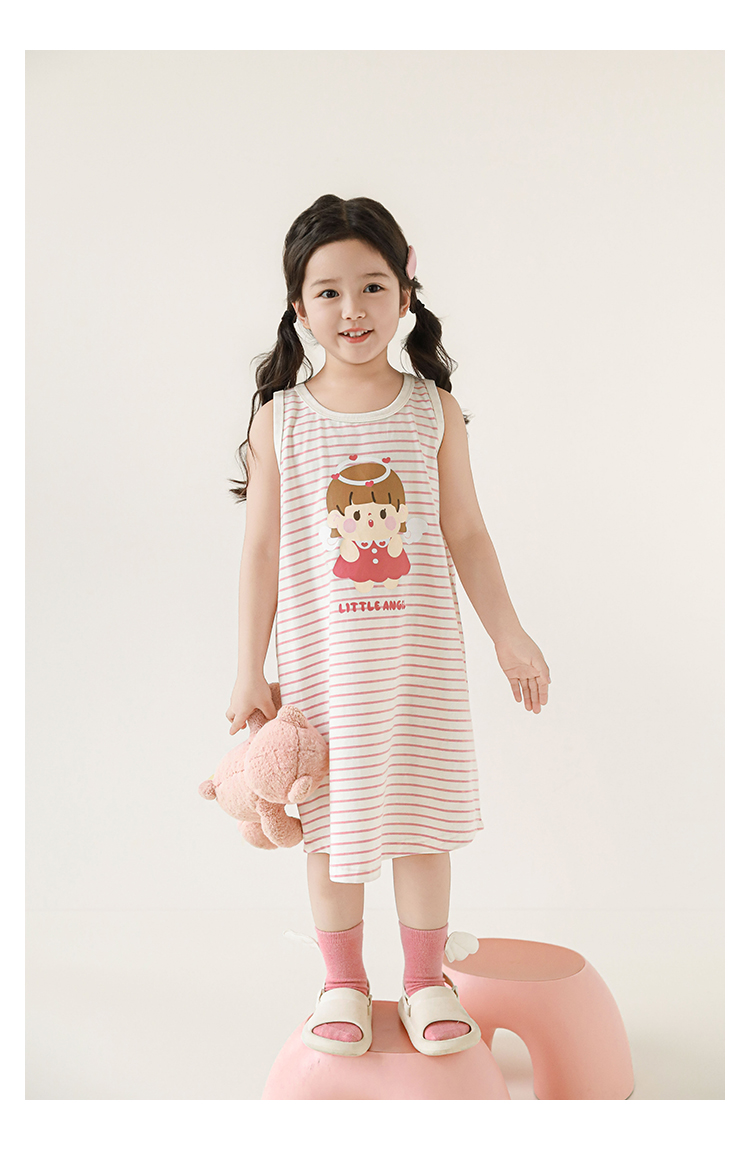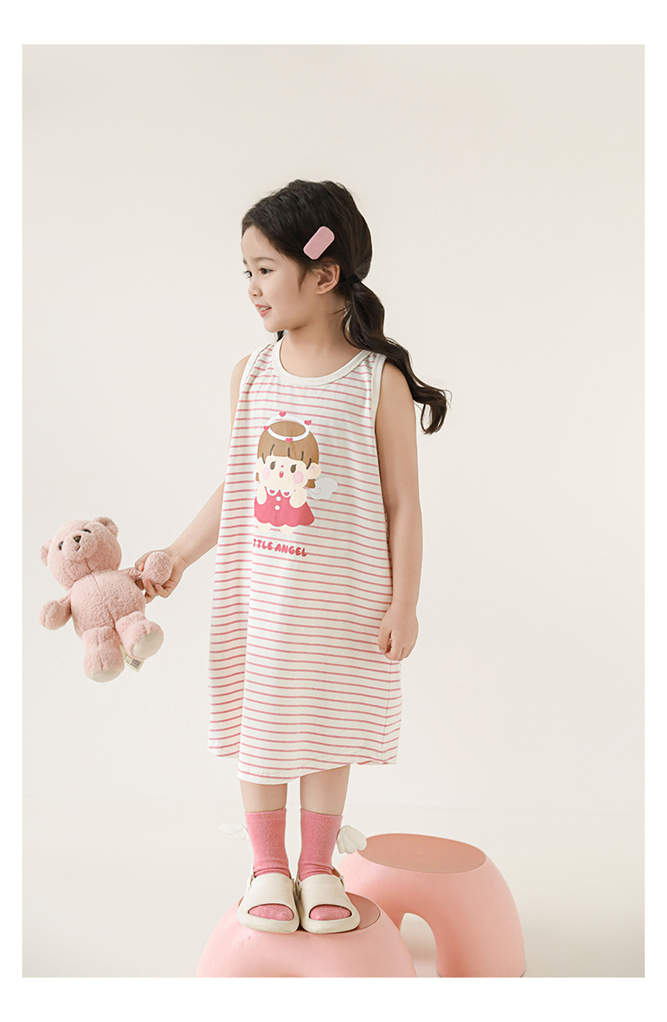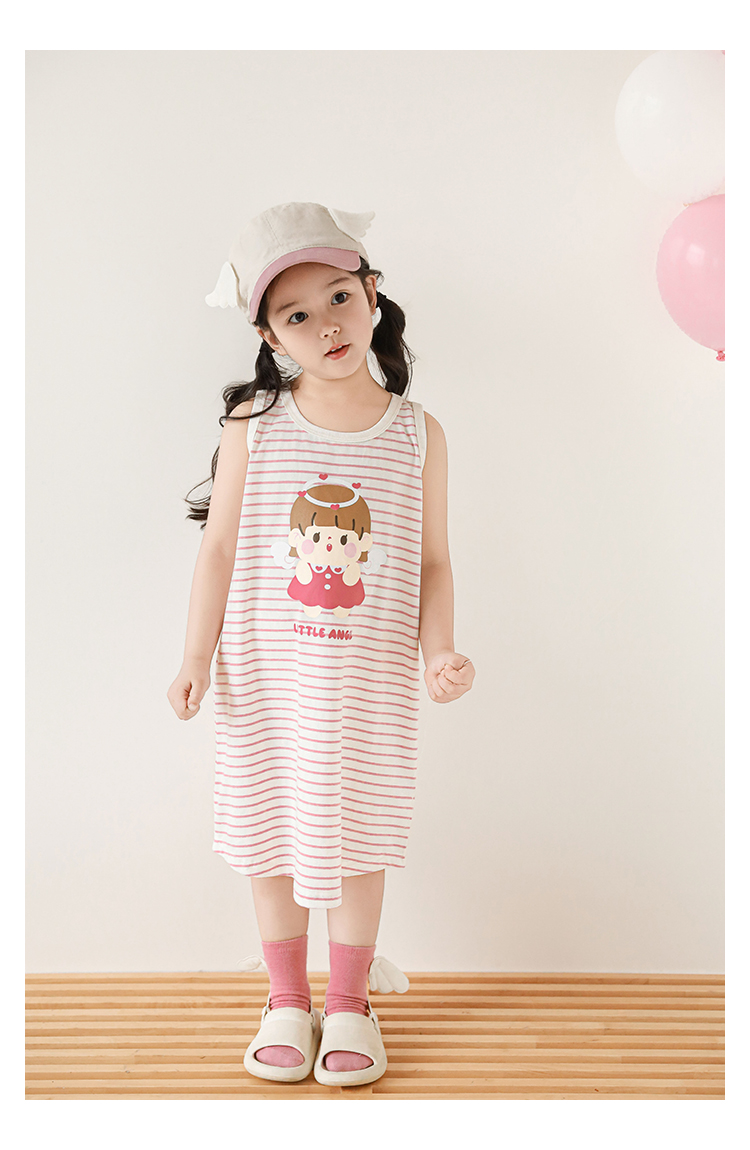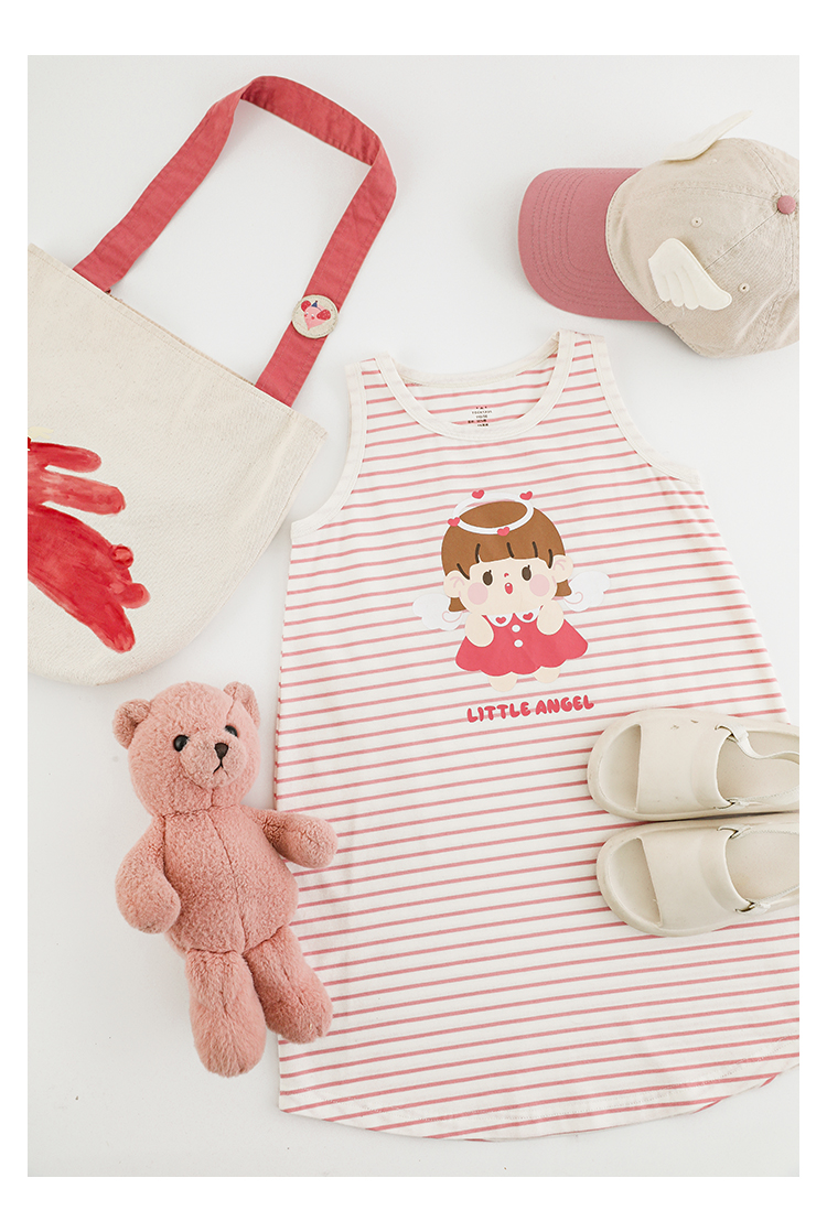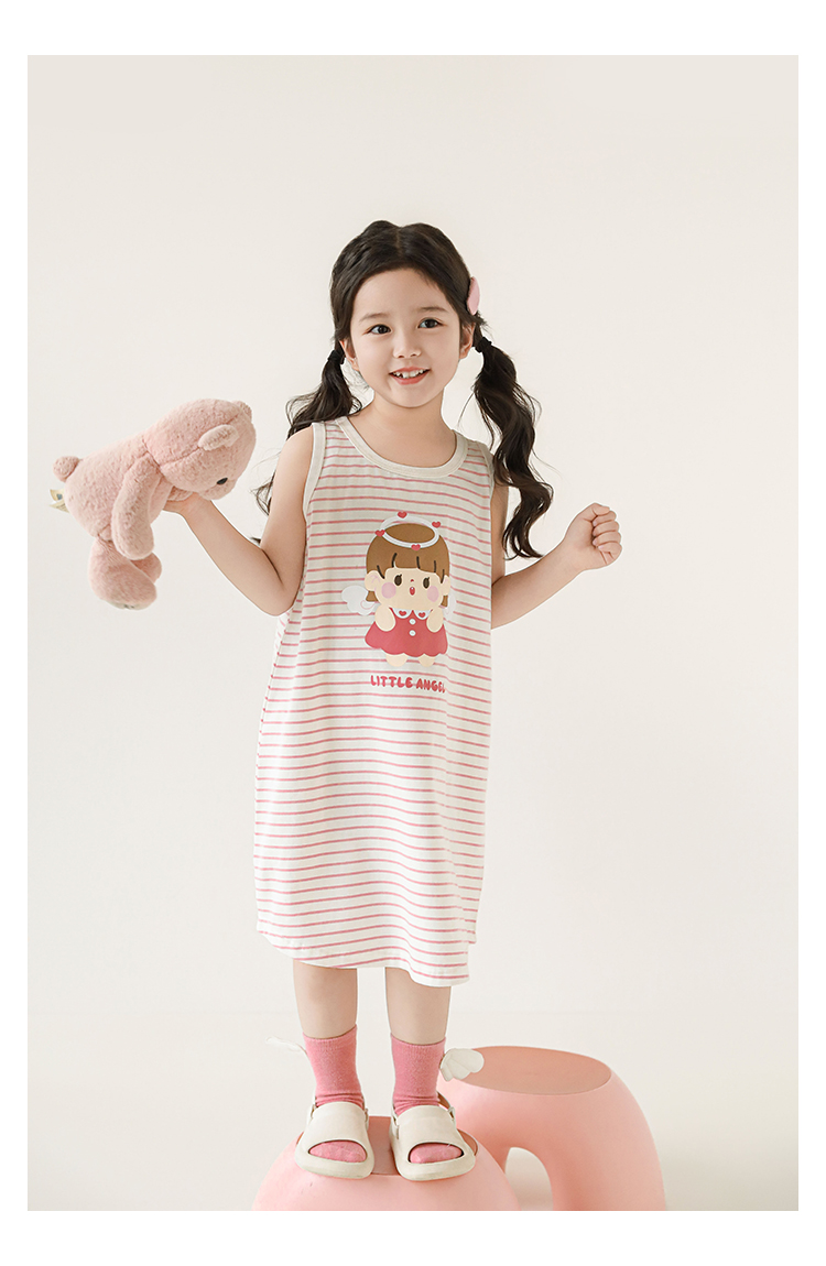 내 갈비뼈 소녀의 악마 천사 인쇄 장식 Vic 원피스 2025 여름 귀여운 명암 색 줄무늬 원피스스토어 가기