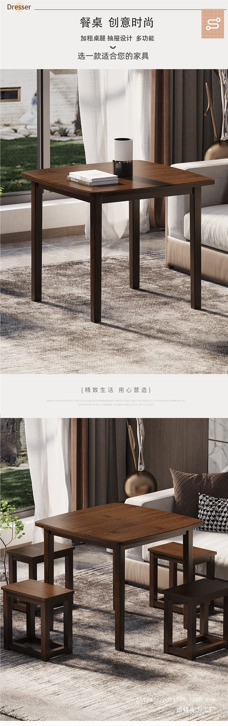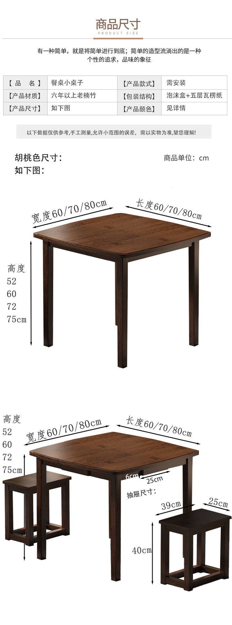 작은 아파트 단단한 나무 차 테이블 가정용 작은 광장 테이블 스퀘어 테이블 거실 식탁 연구 테이블 서랍 사각형 식탁스토어 가기