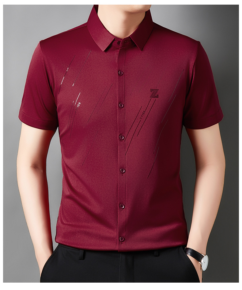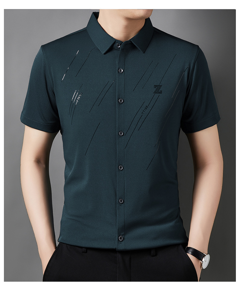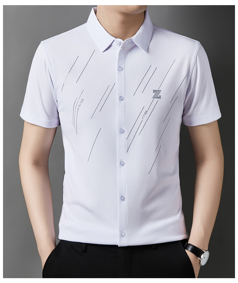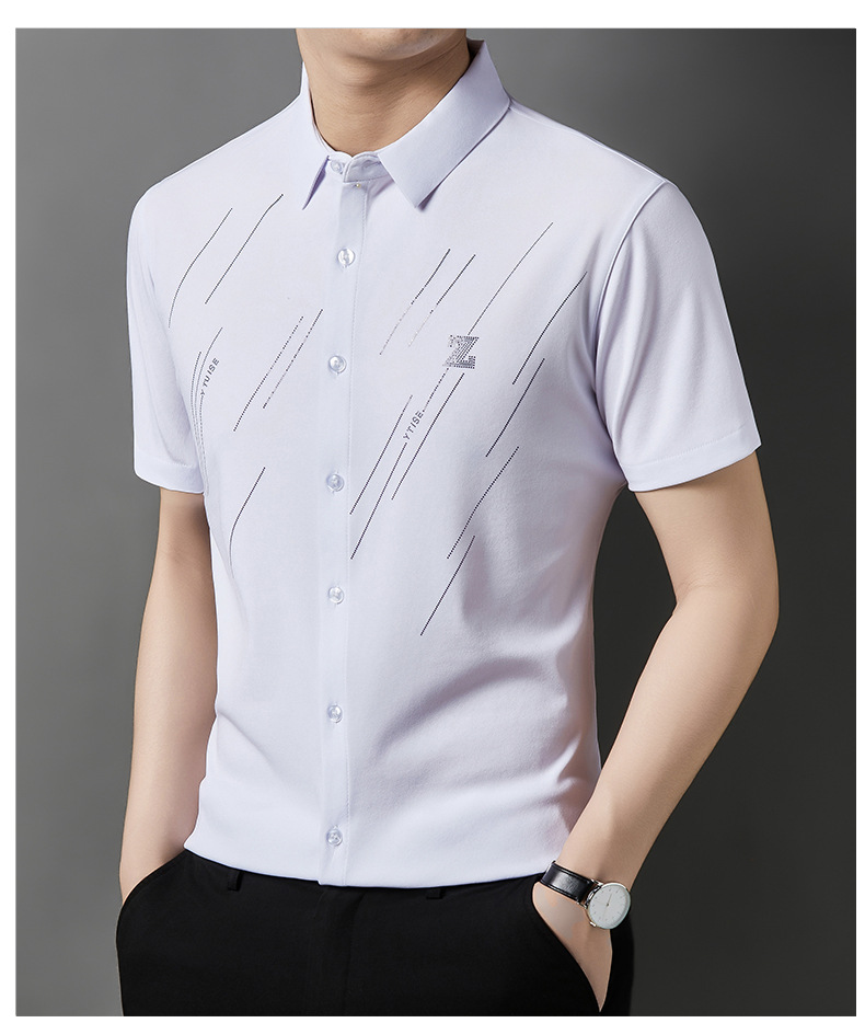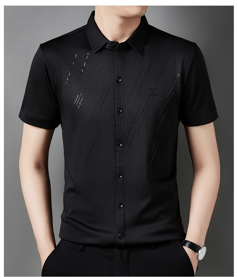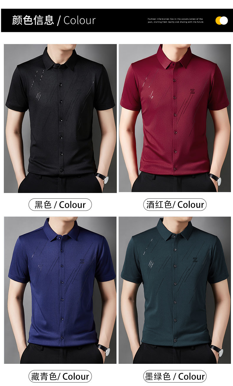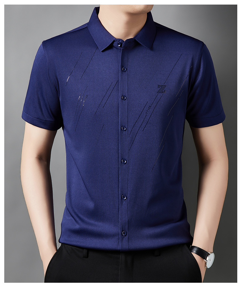 남성용 반팔 심리스 셔츠 여름 고탄성 다용도 고급 비즈니스 캐주얼 트렌디 중년 남성 셔츠