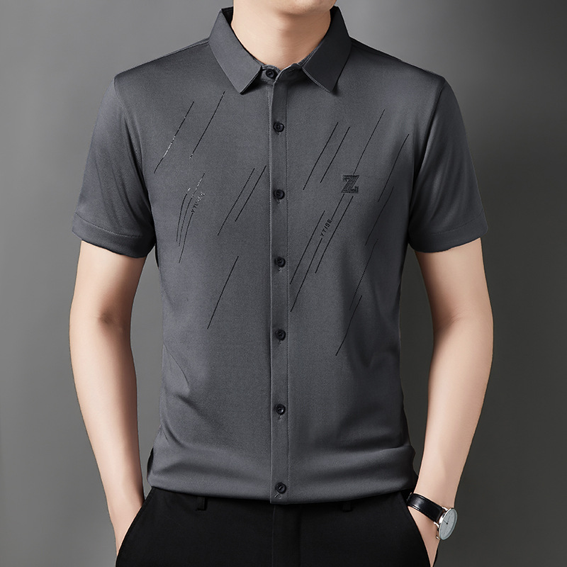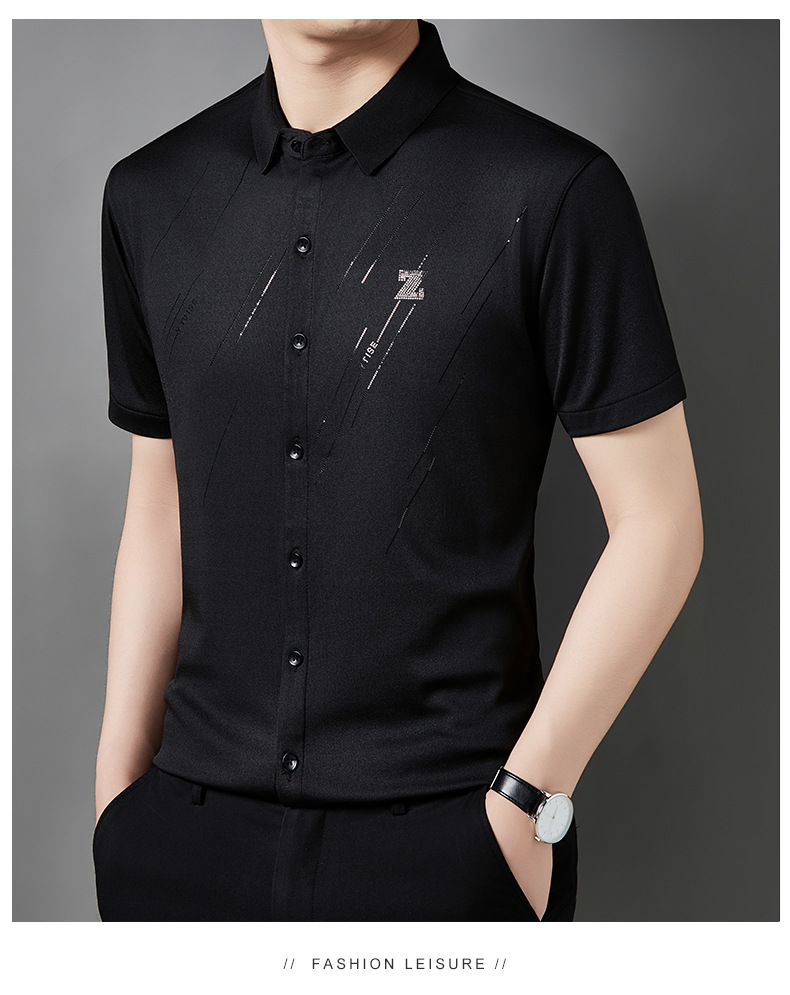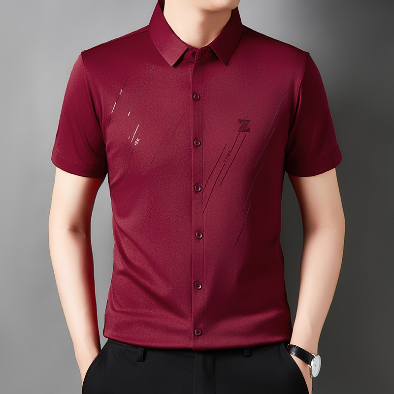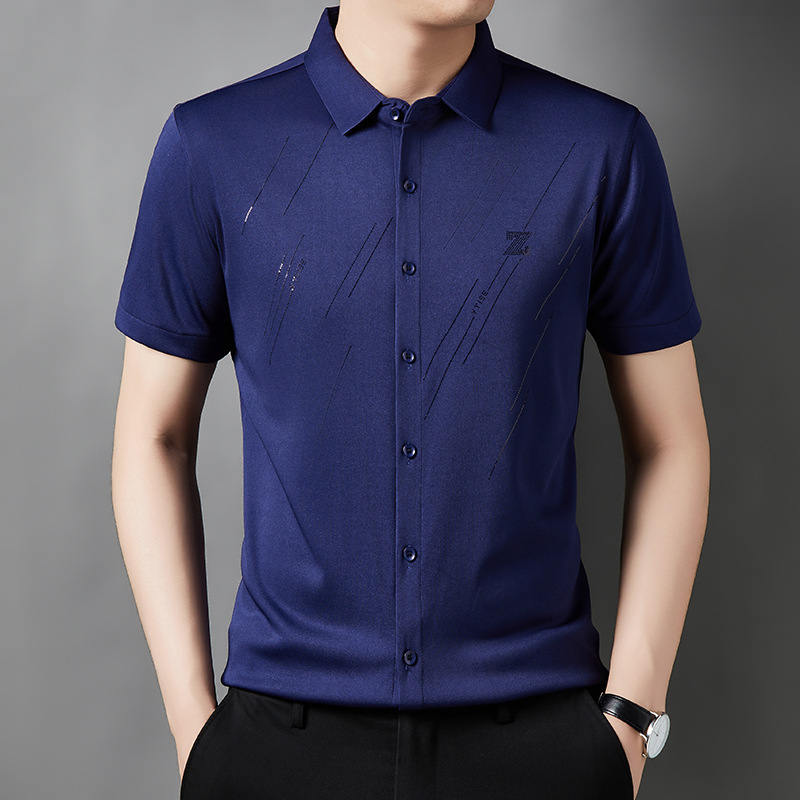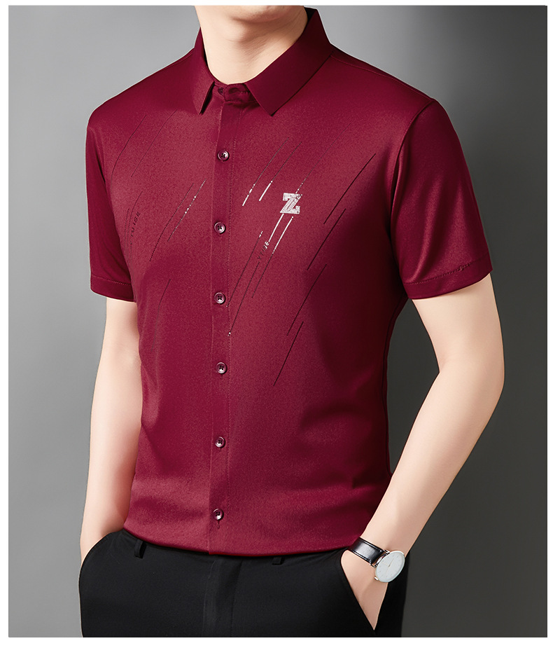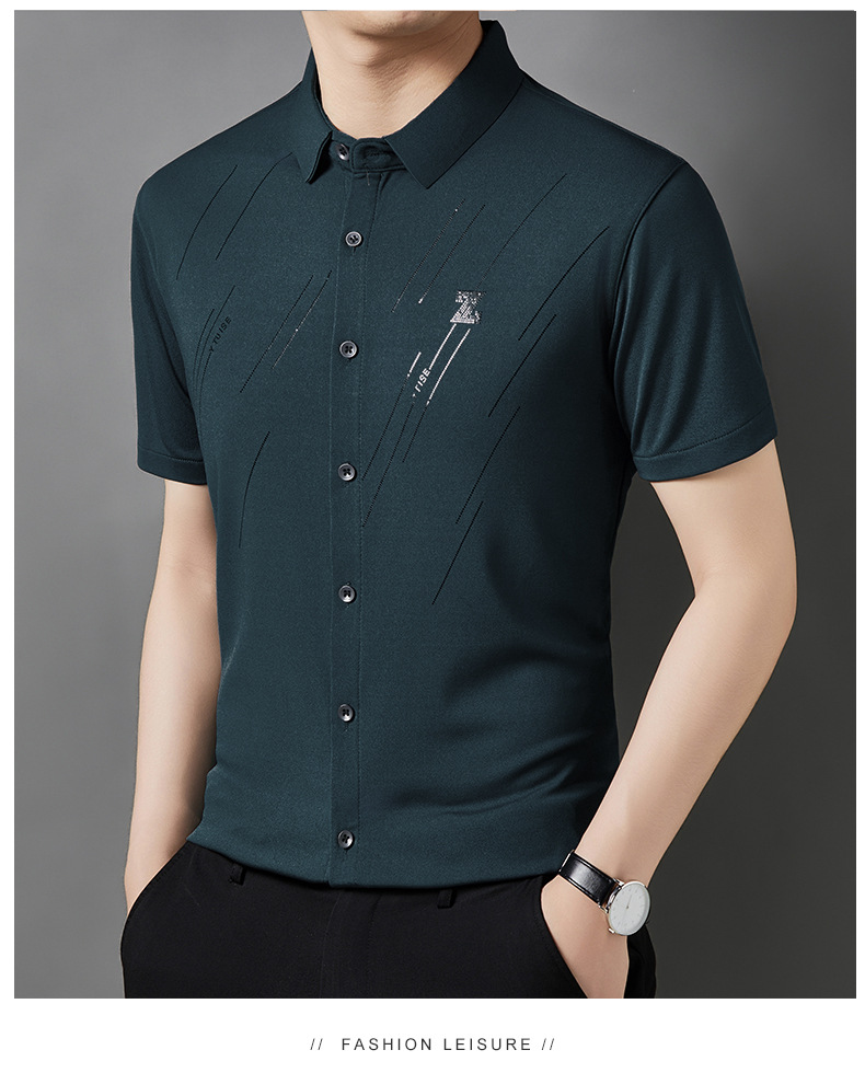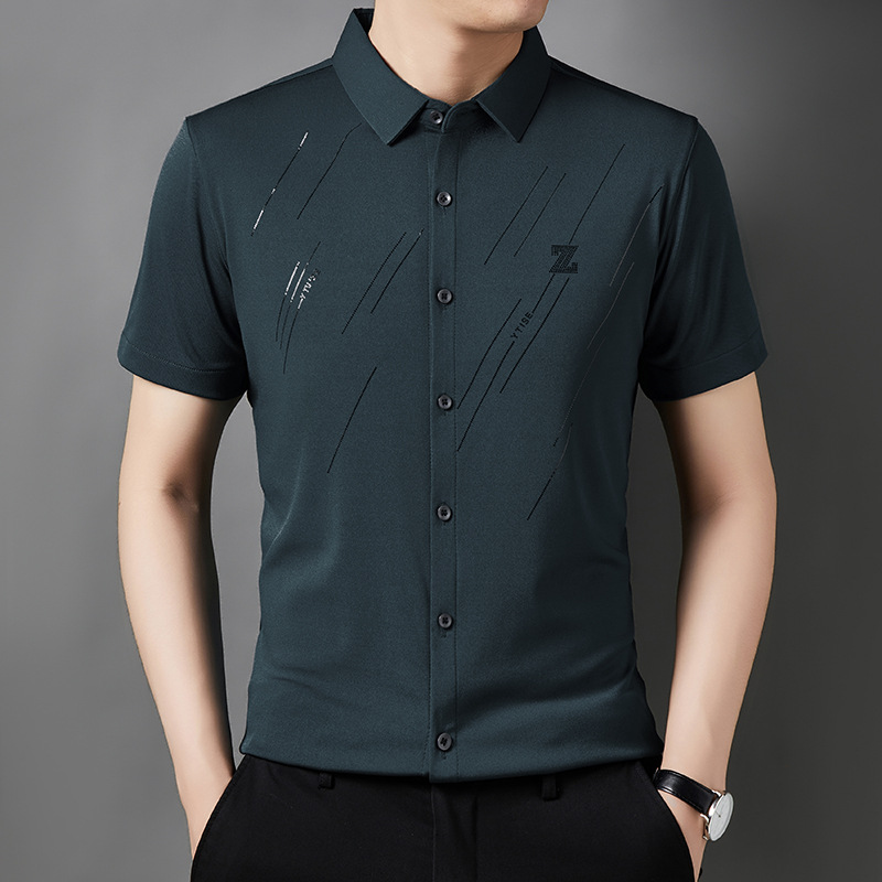 남성용 반팔 심리스 셔츠 여름 고탄성 다용도 고급 비즈니스 캐주얼 트렌디 중년 남성 셔츠