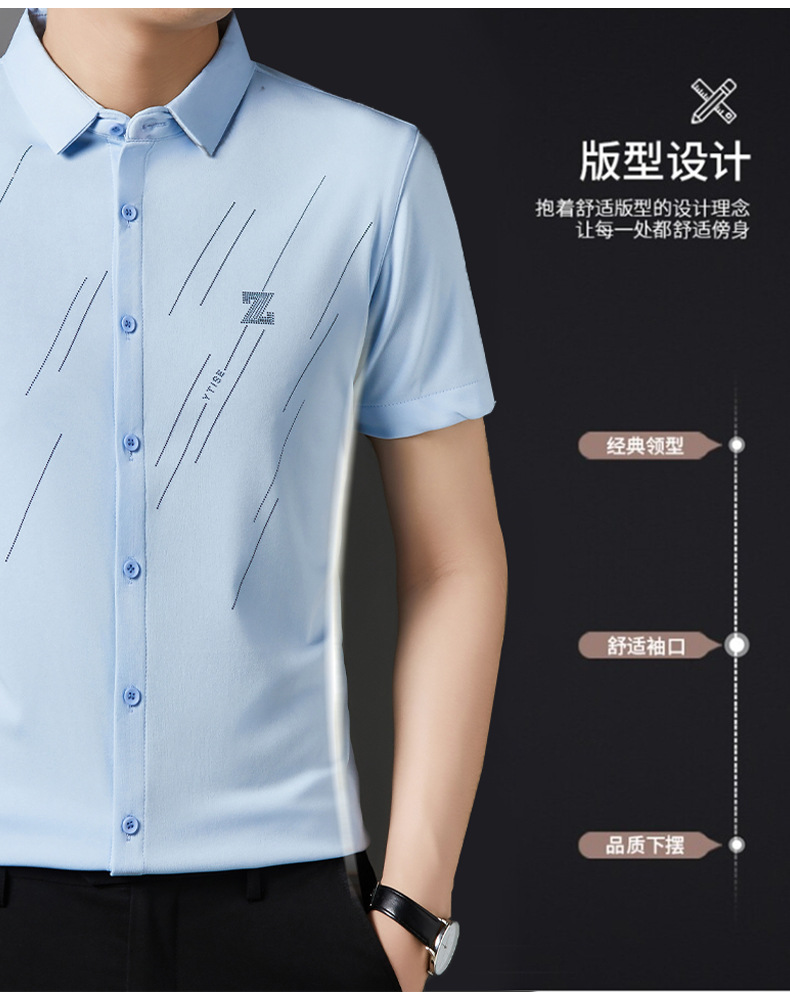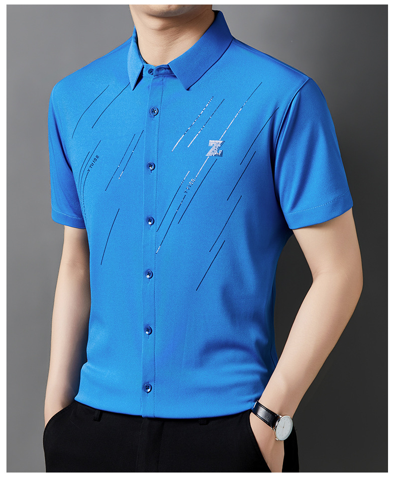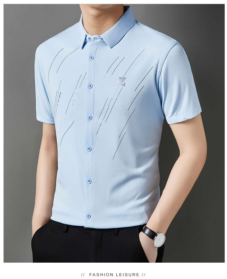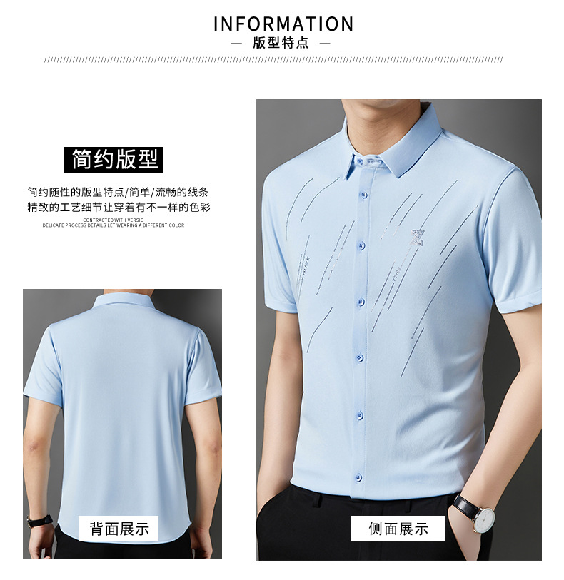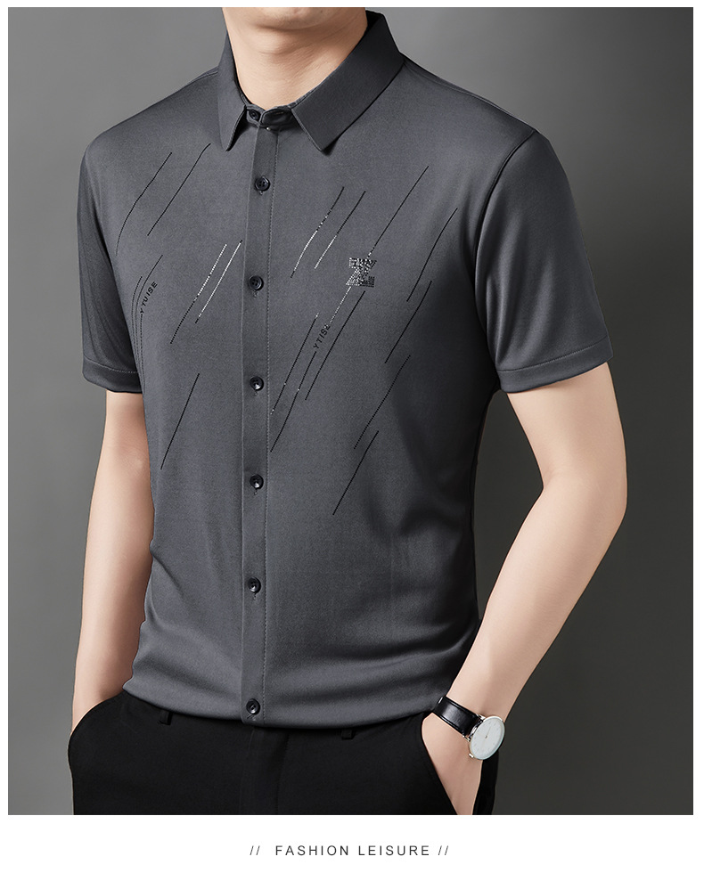 남성용 반팔 심리스 셔츠 여름 고탄성 다용도 고급 비즈니스 캐주얼 트렌디 중년 남성 셔츠스토어 가기