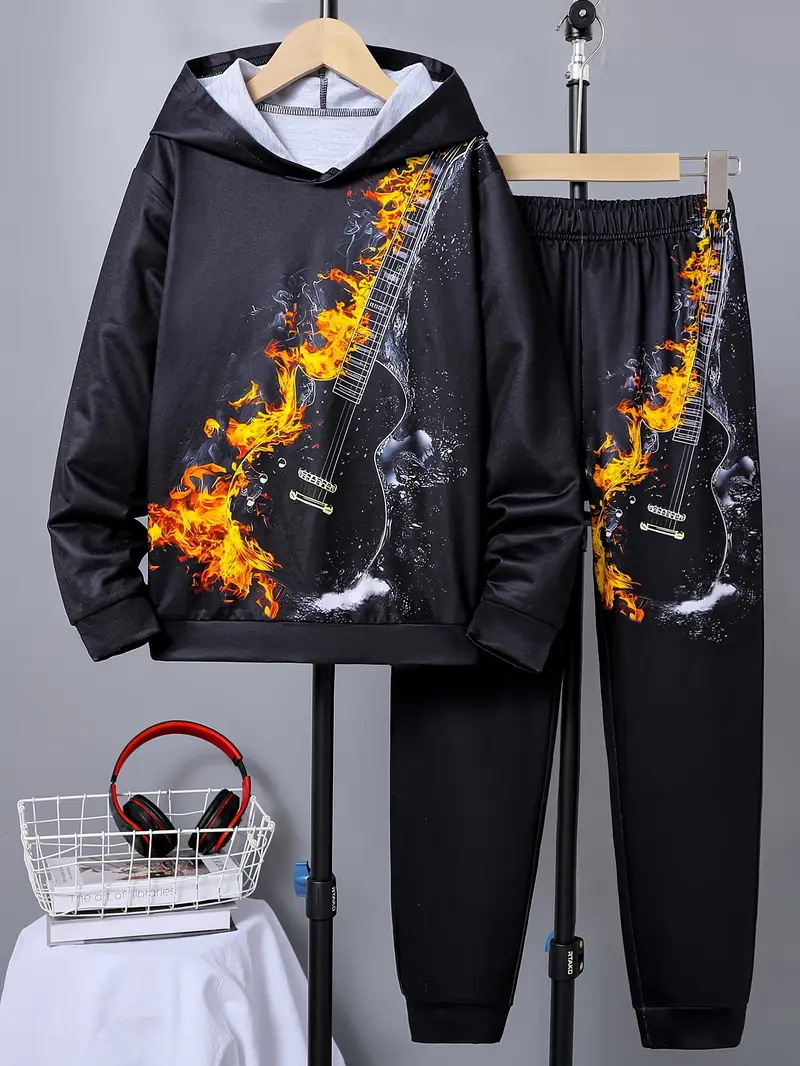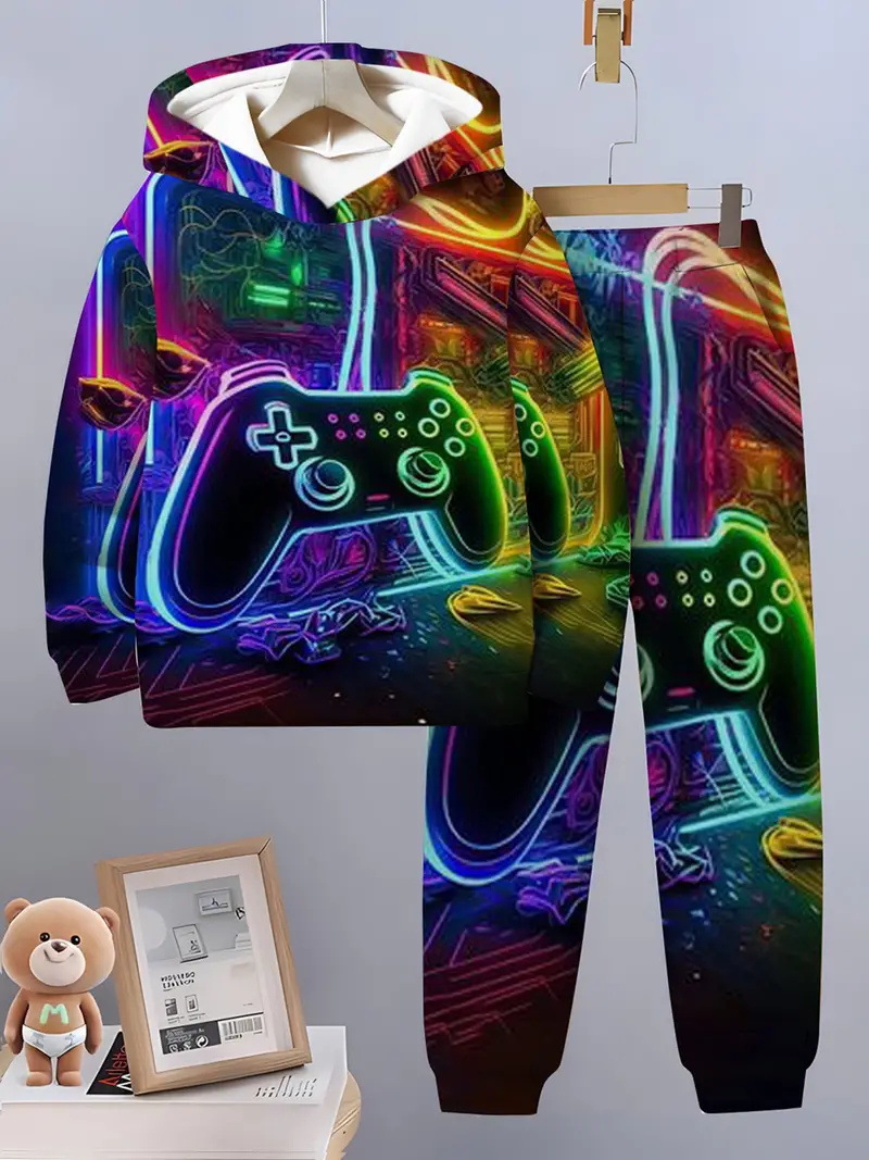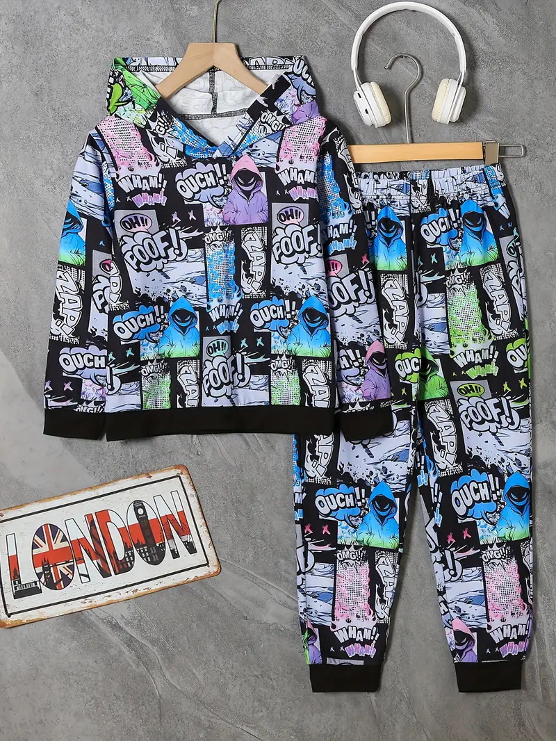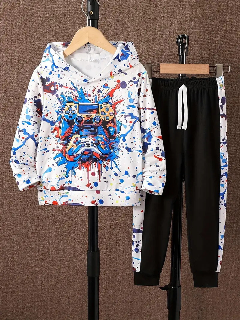 소년 패션 정장 가짜 투피스 후드 티셔츠 + 스포츠 바지 편안한 가을 의류 트렌디 뉴 RB05RC01