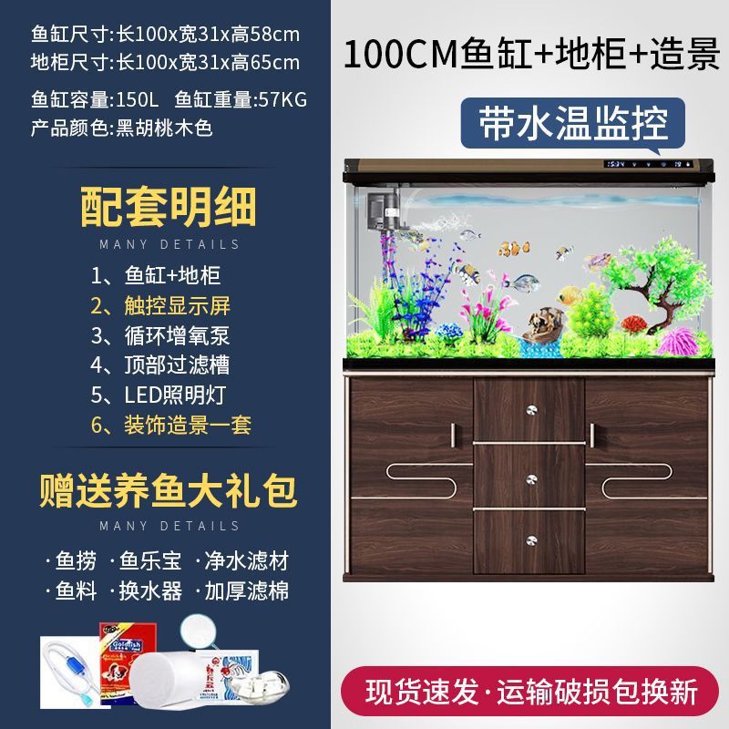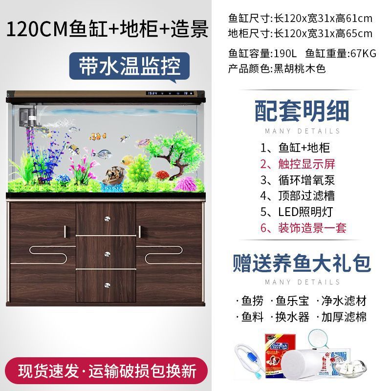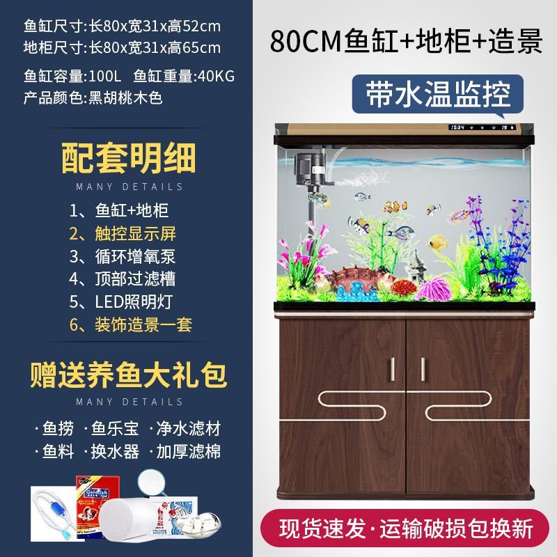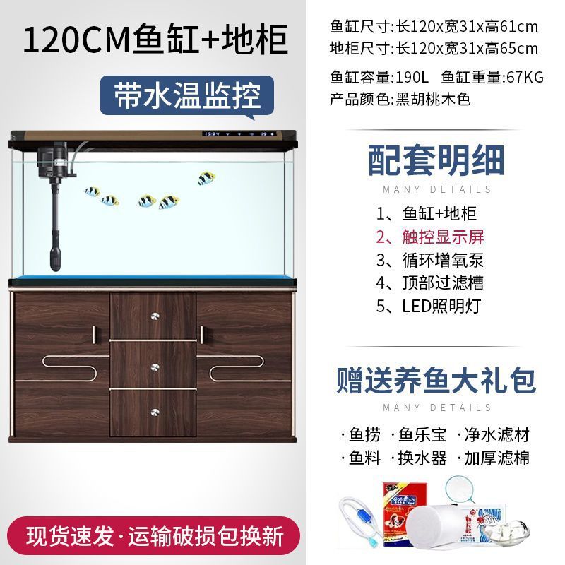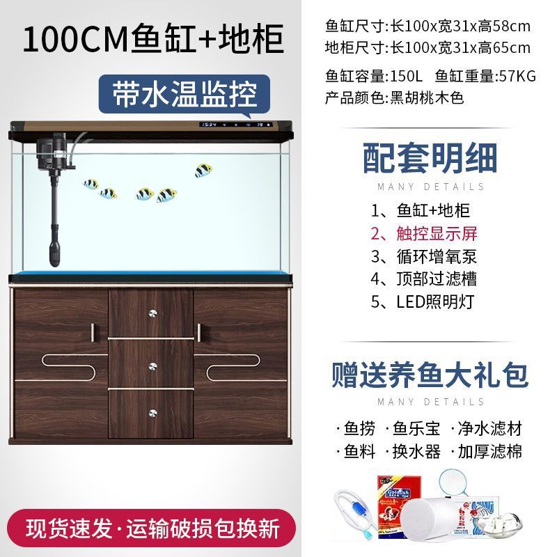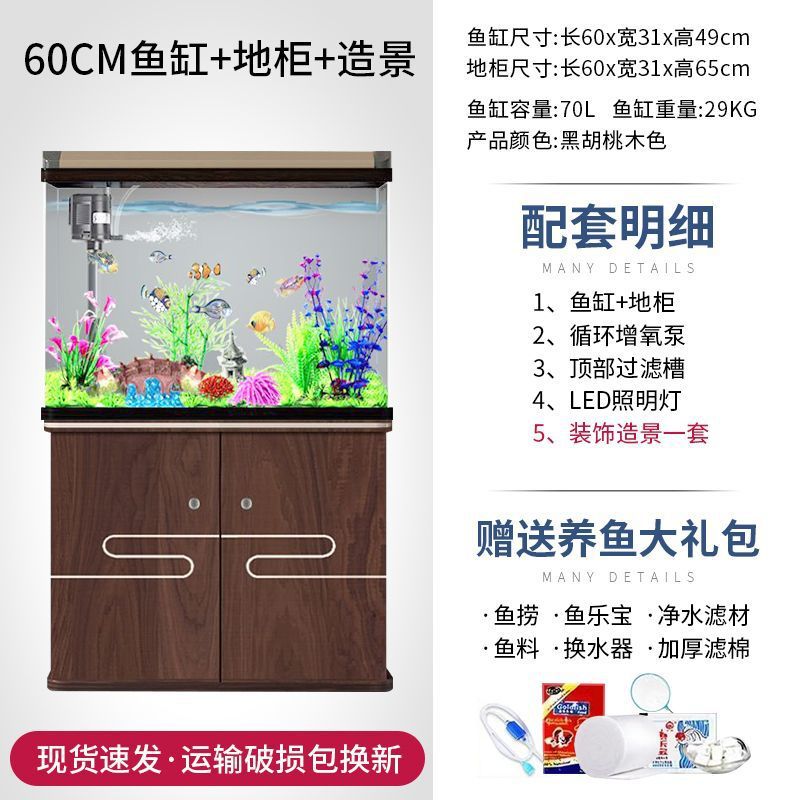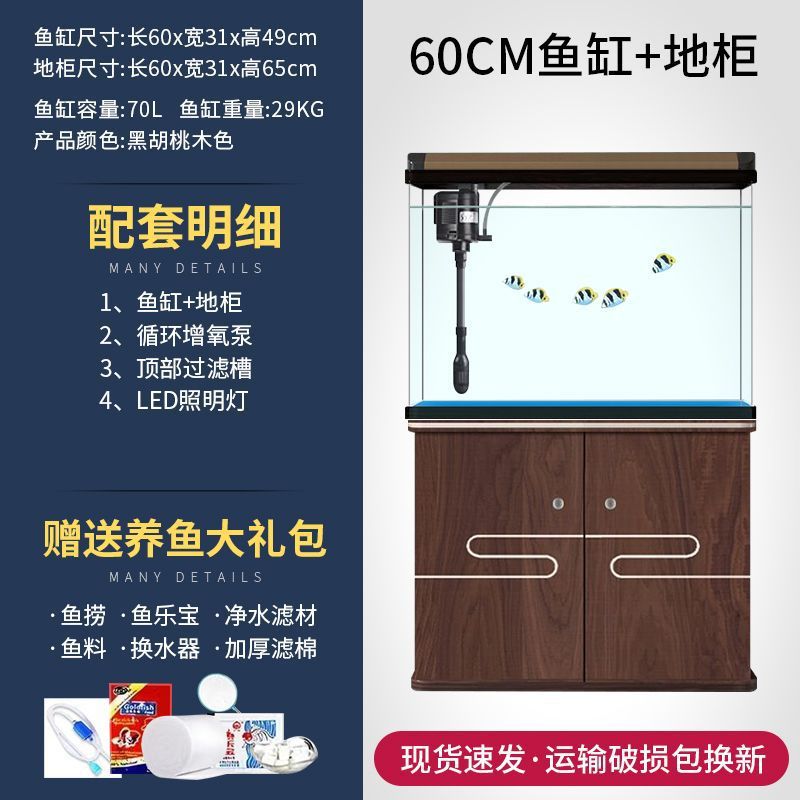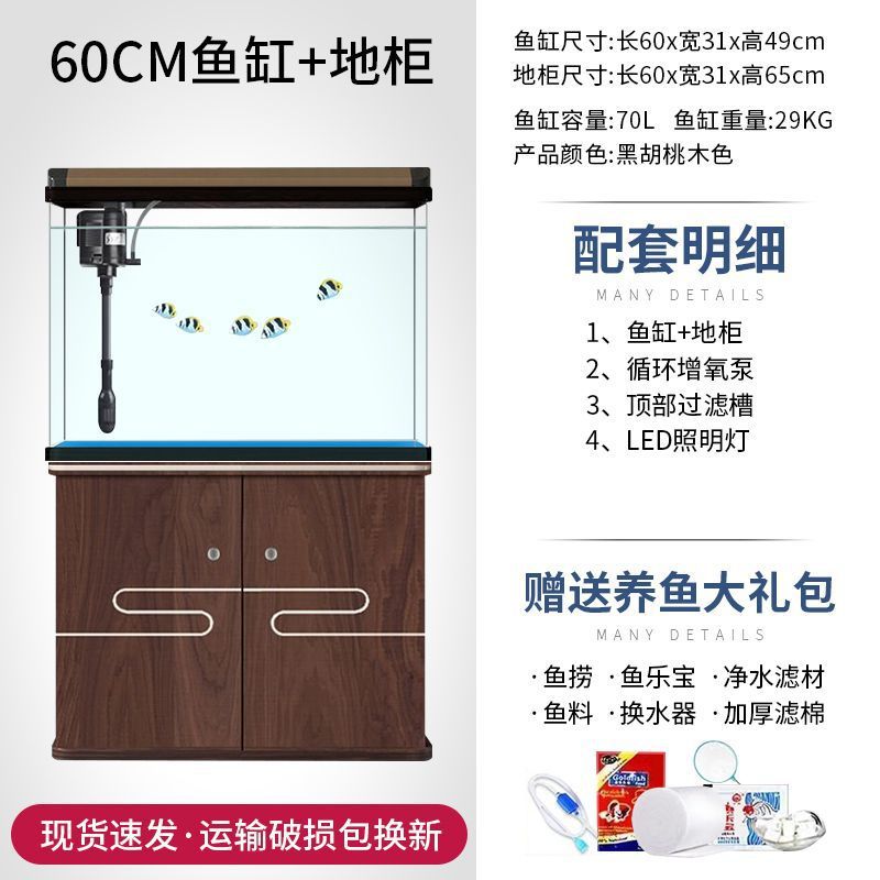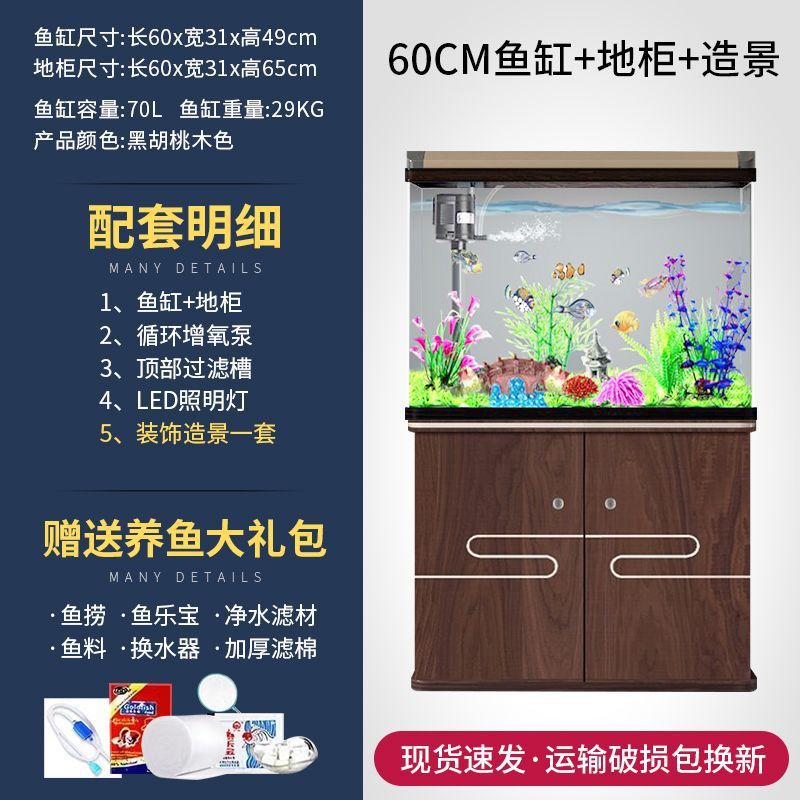 새로운 물고기 탱크 거실 가정용 게으른 사람들을 위한 물 교체가 필요 없는 유리 작은 사무실 중형 및 대형 올인원 금색 캐비닛 포함스토어 가기