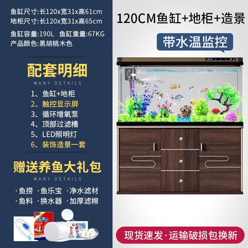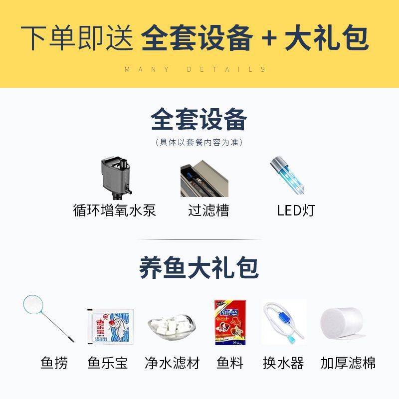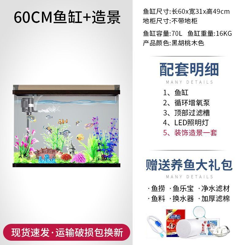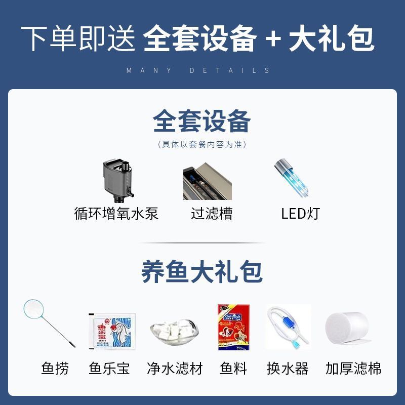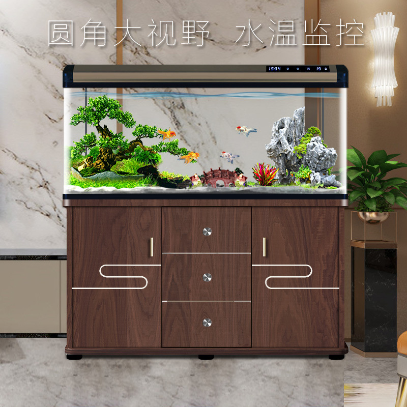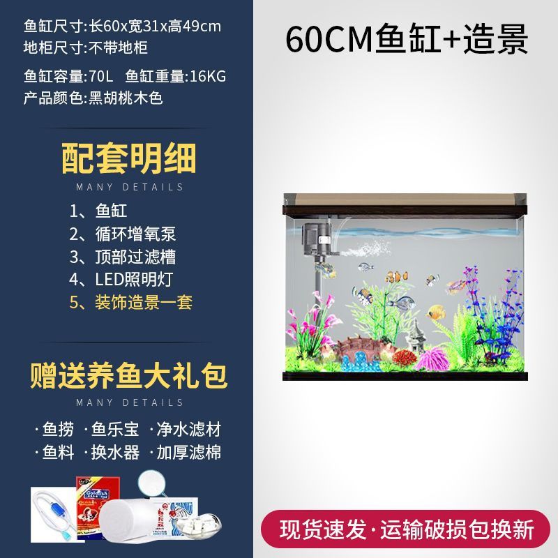 새로운 물고기 탱크 거실 가정용 게으른 사람들을 위한 물 교체가 필요 없는 유리 작은 사무실 중형 및 대형 올인원 금색 캐비닛 포함