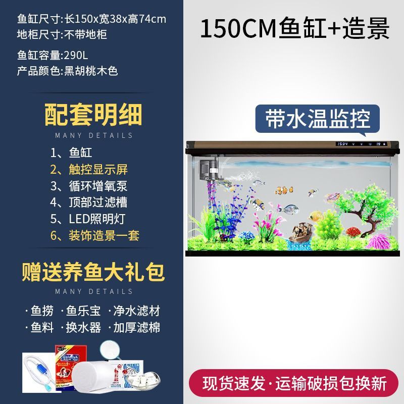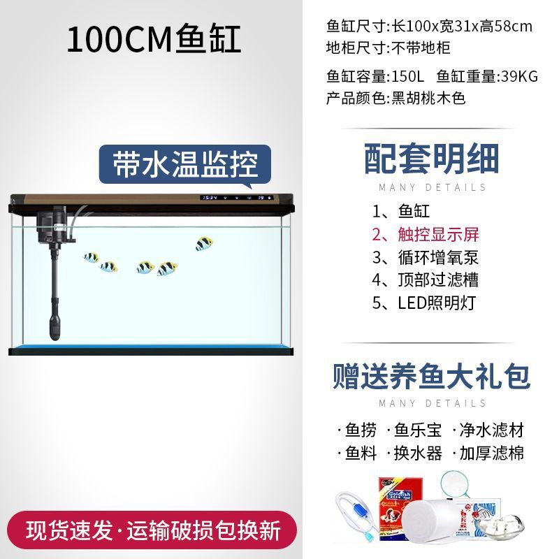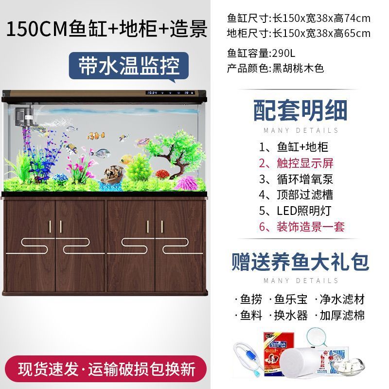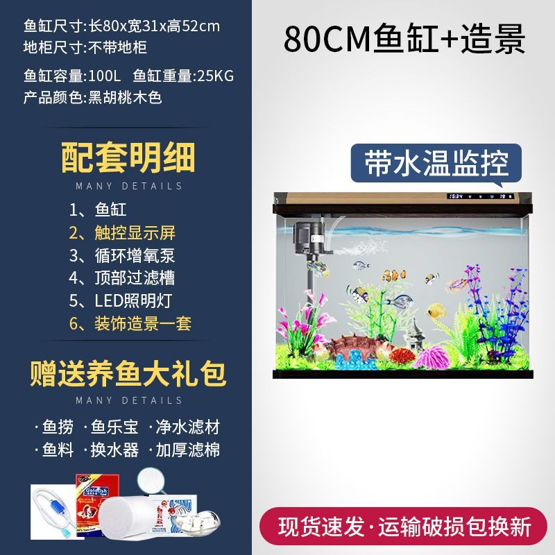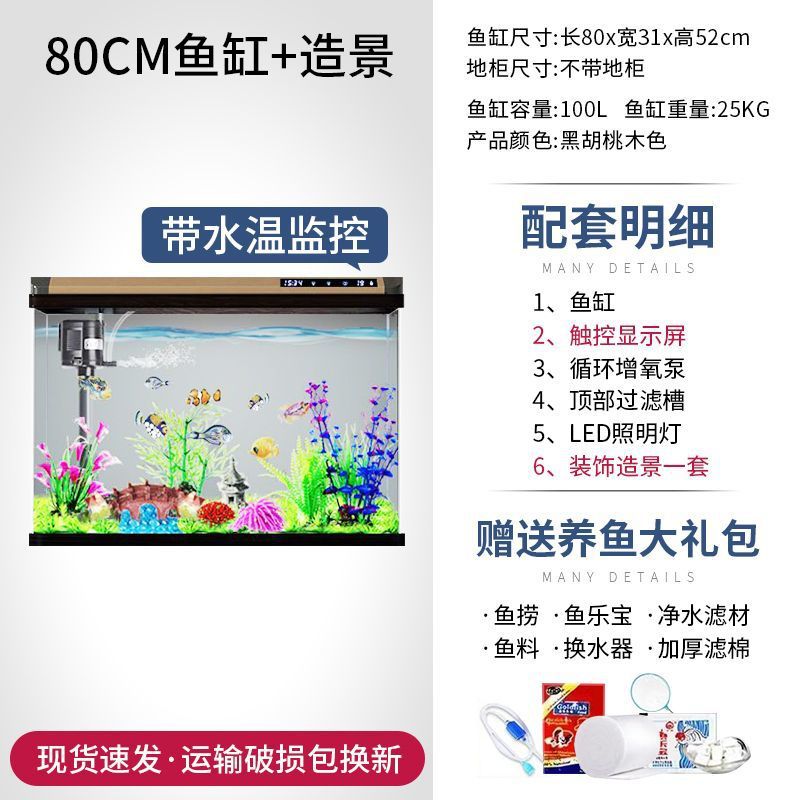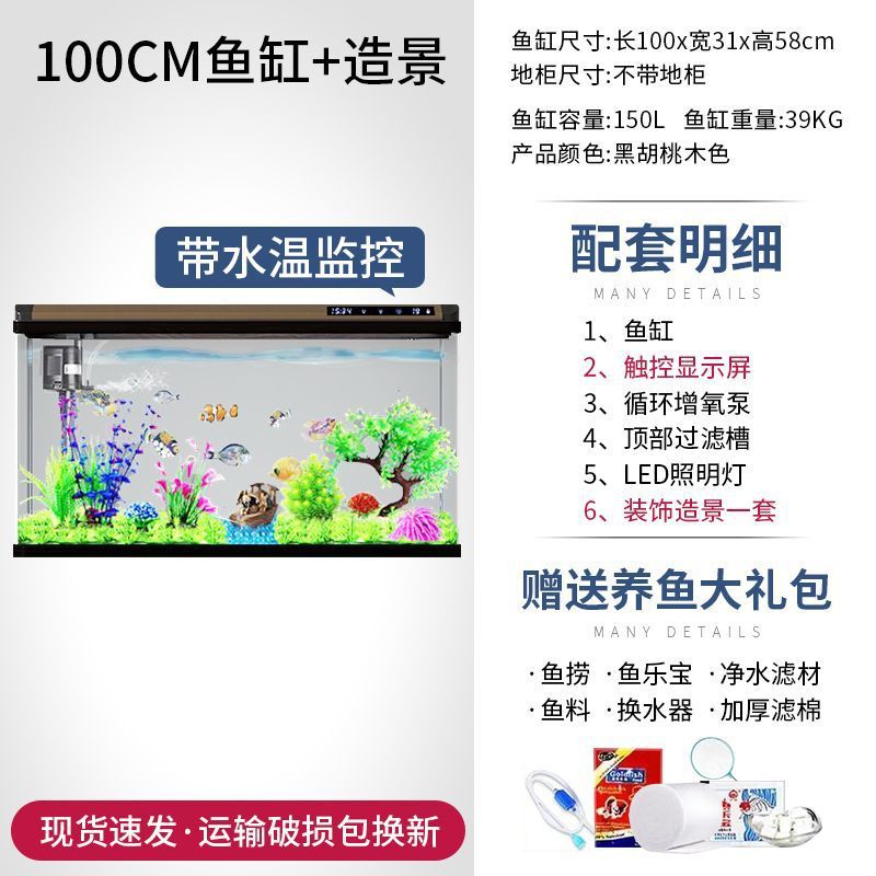 새로운 물고기 탱크 거실 가정용 게으른 사람들을 위한 물 교체가 필요 없는 유리 작은 사무실 중형 및 대형 올인원 금색 캐비닛 포함