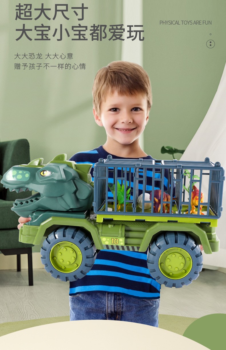 소년 플라스틱 장난감 시뮬레이션 티라노사우루스 렉스 모델 대형 공룡 엔지니어링 차량 수송 차량 관성 굴삭기 크레인
