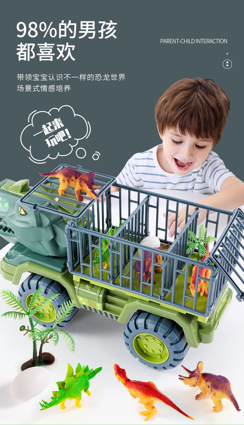 소년 플라스틱 장난감 시뮬레이션 티라노사우루스 렉스 모델 대형 공룡 엔지니어링 차량 수송 차량 관성 굴삭기 크레인스토어 가기