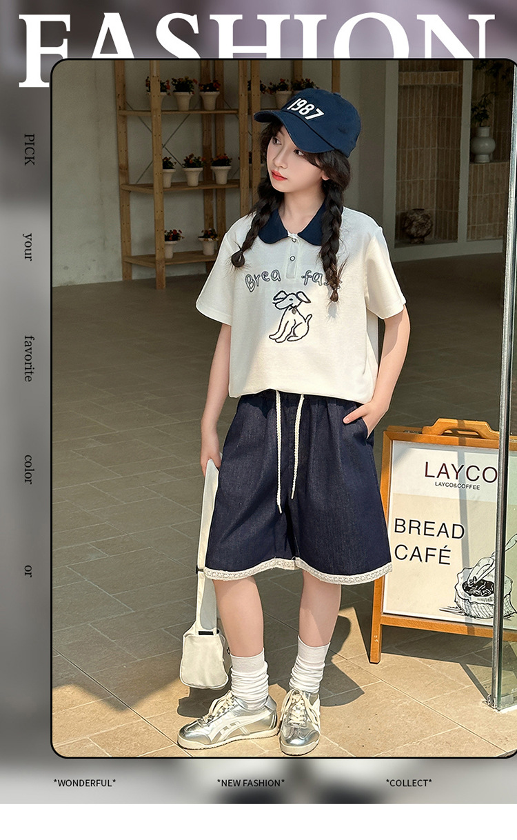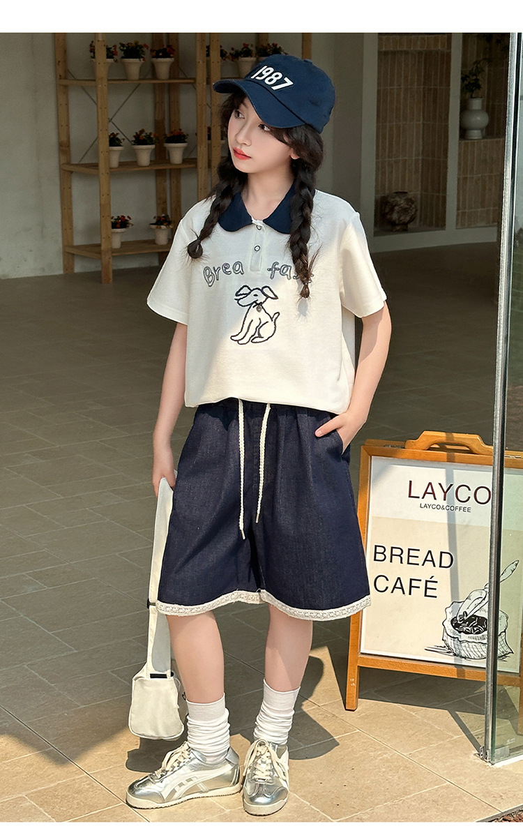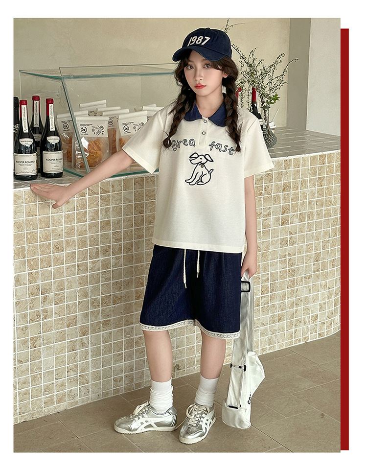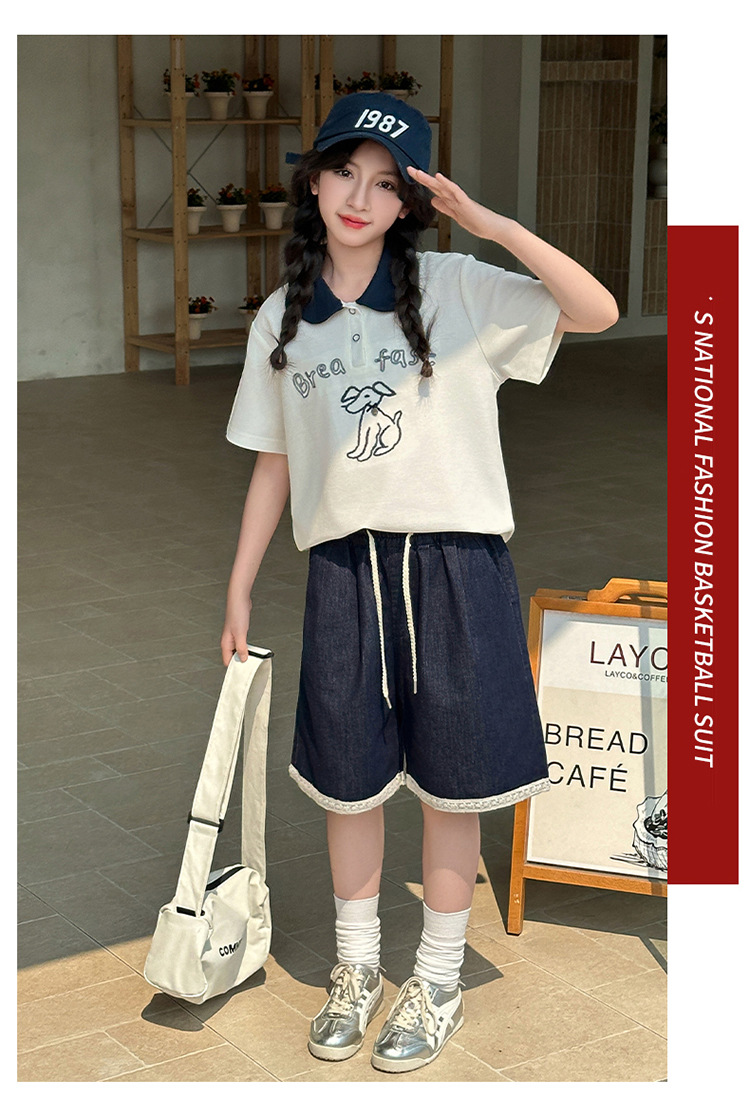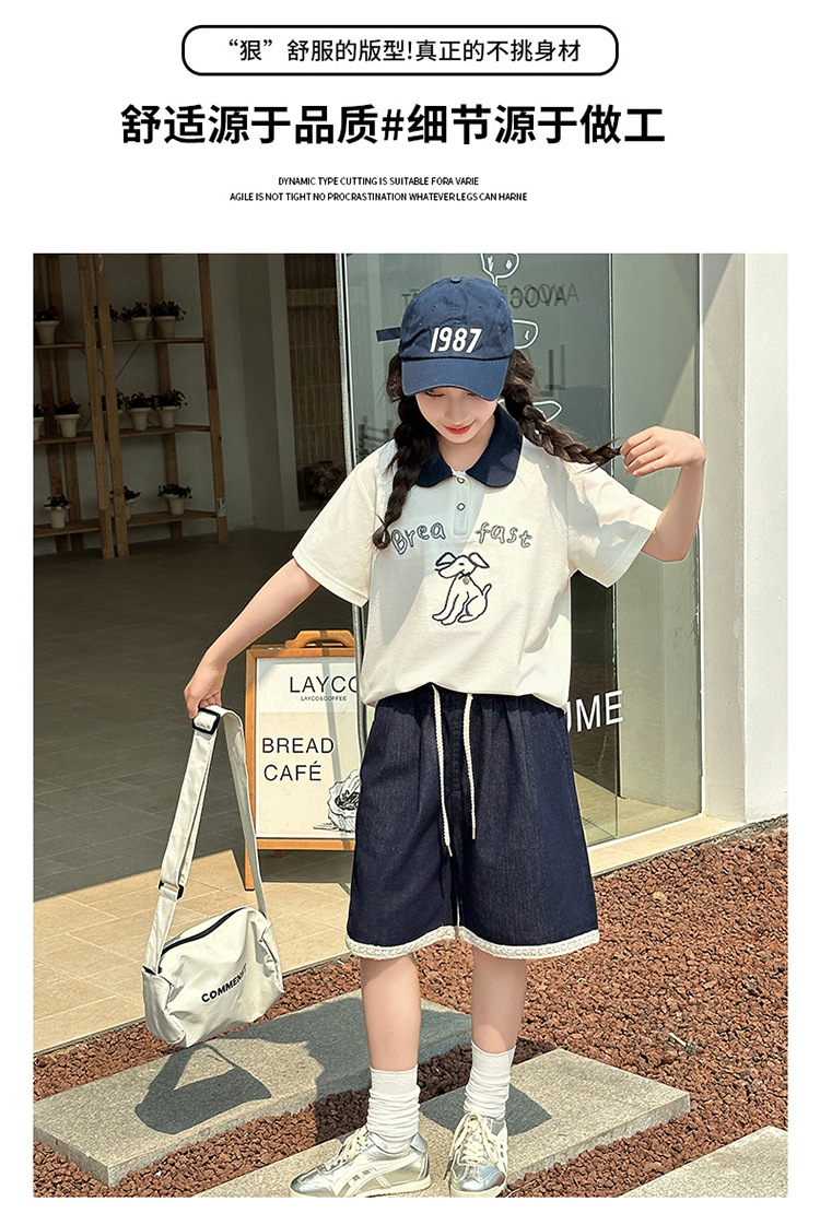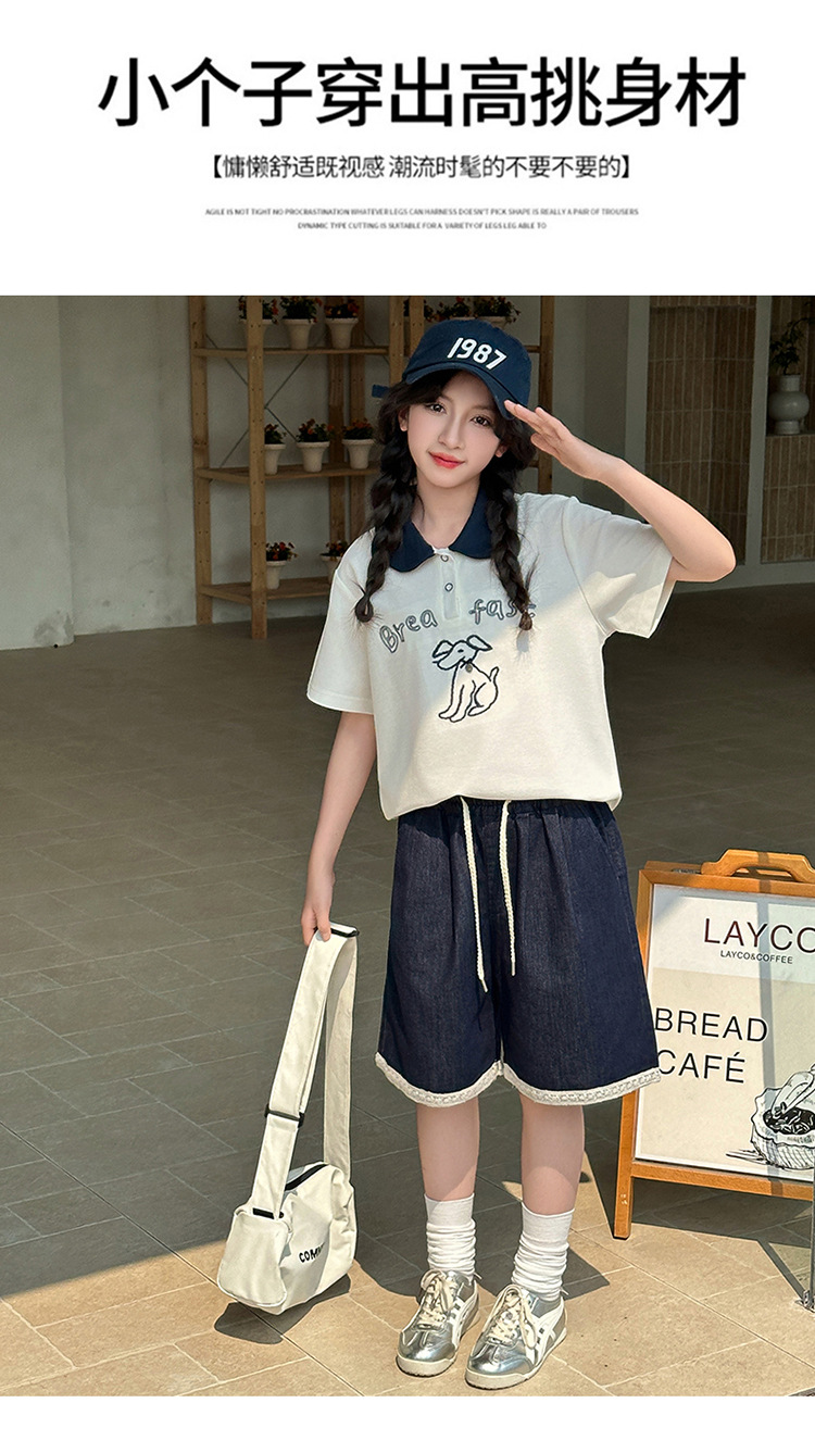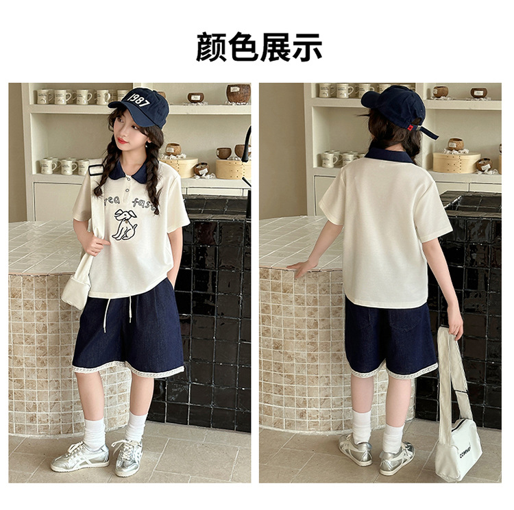 여자 여름 세트 2025 새로운 스타일 어린이 반팔 소녀 여름 데님 반바지 투피스 세트스토어 가기
