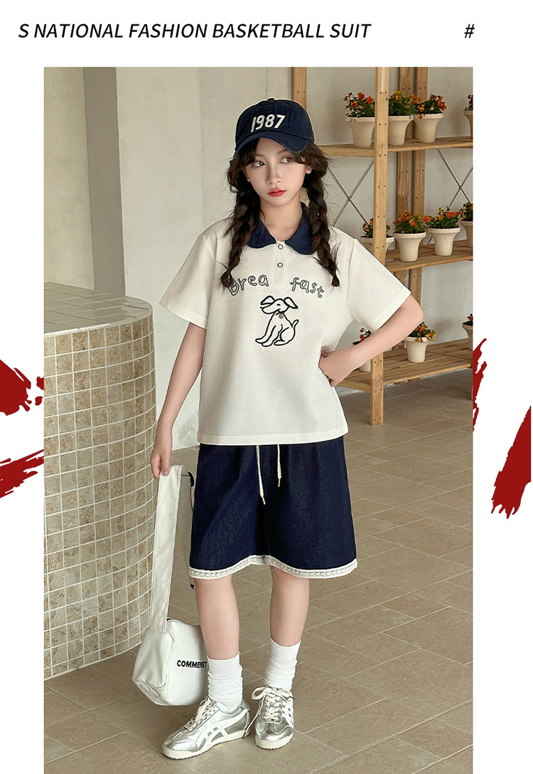 여자 여름 세트 2025 새로운 스타일 어린이 반팔 소녀 여름 데님 반바지 투피스 세트