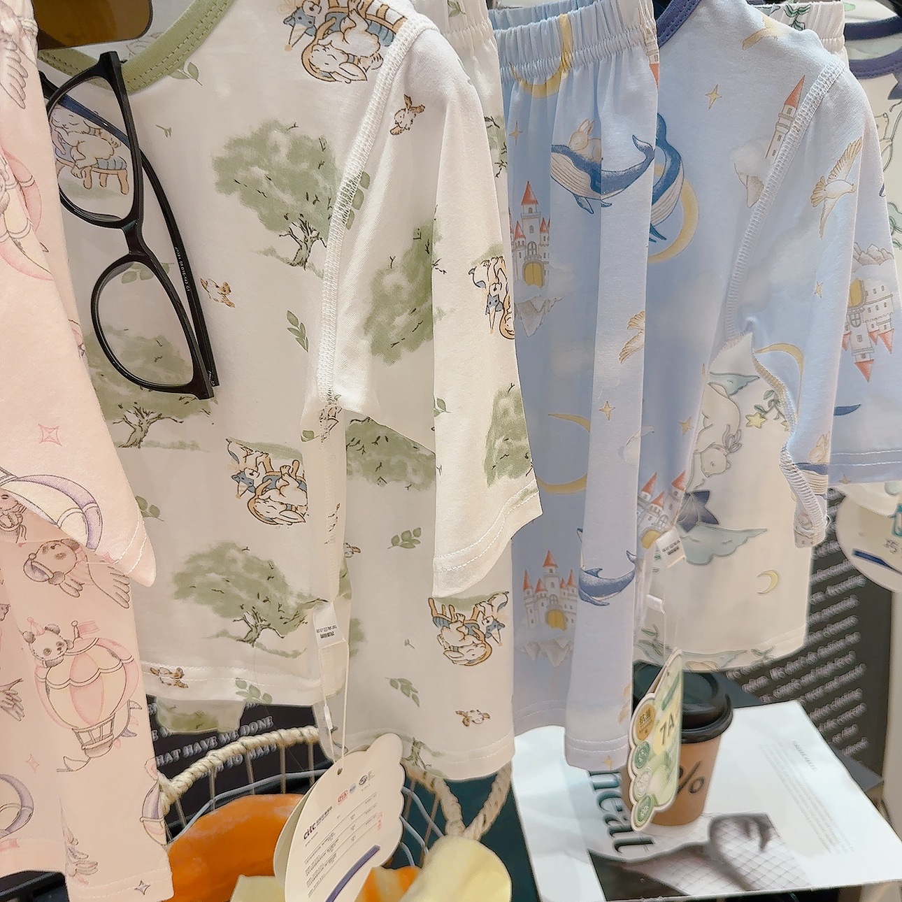 [7A 항균] 여름 어린이 텐셀 모달 홈 의류 세트 남녀 뼈없는 파자마 투피스 세트스토어 가기