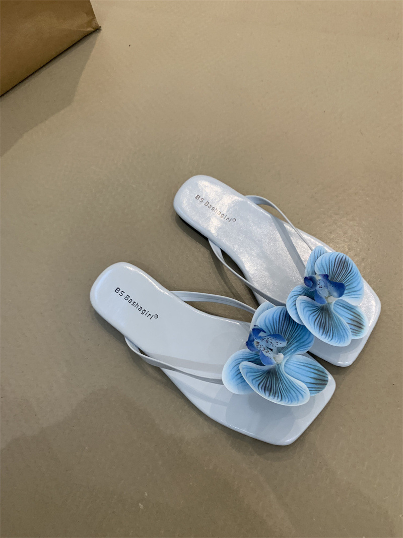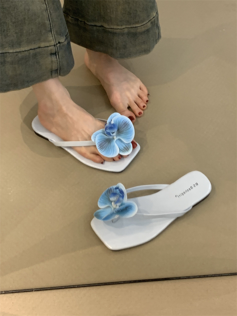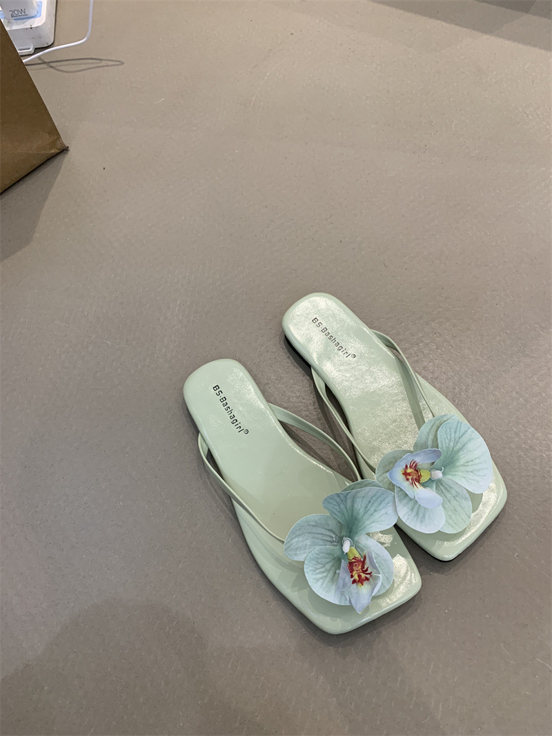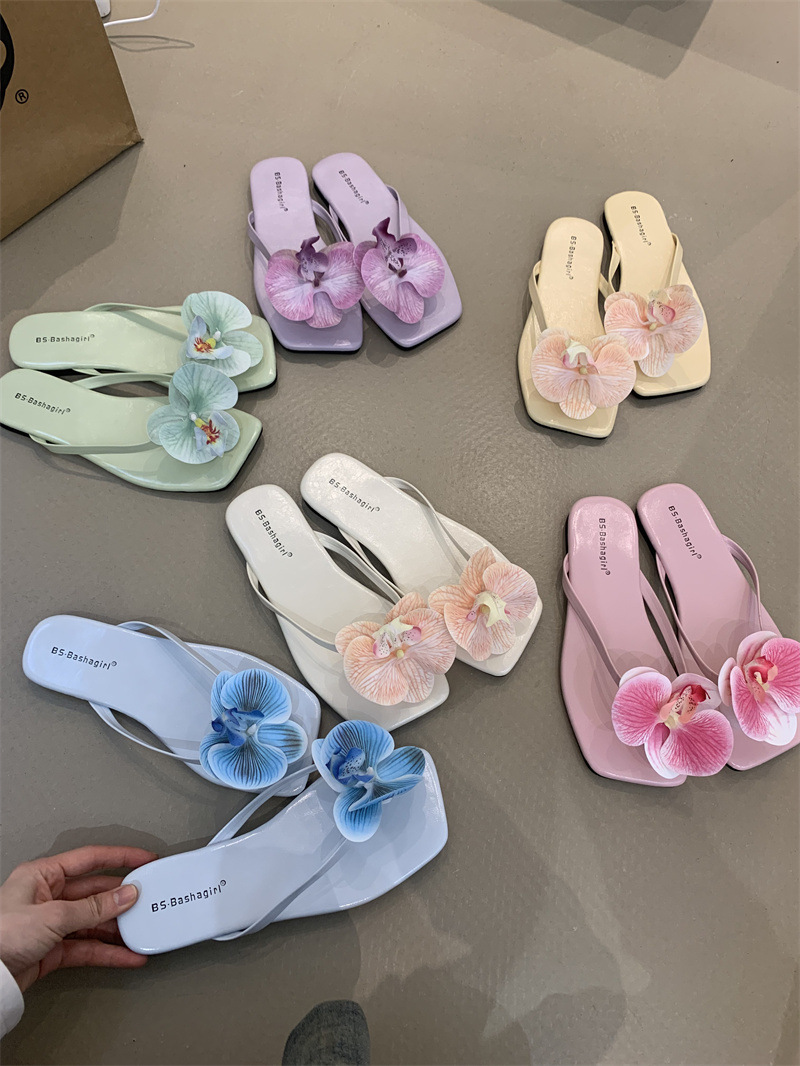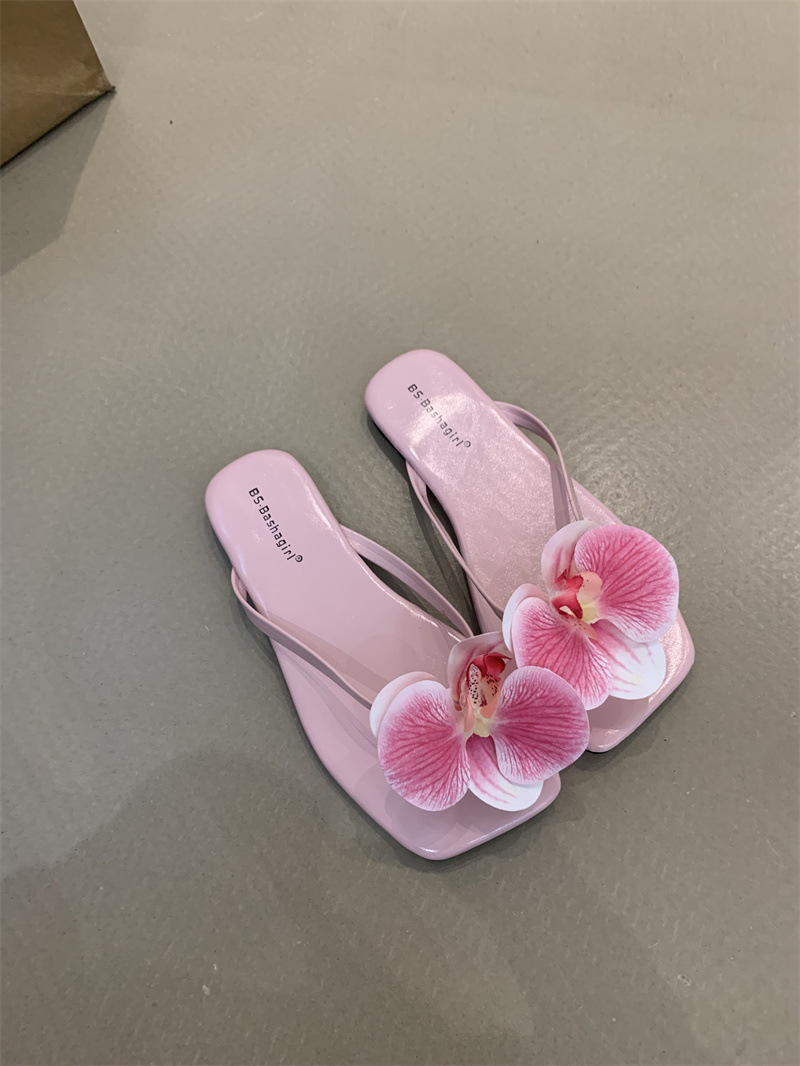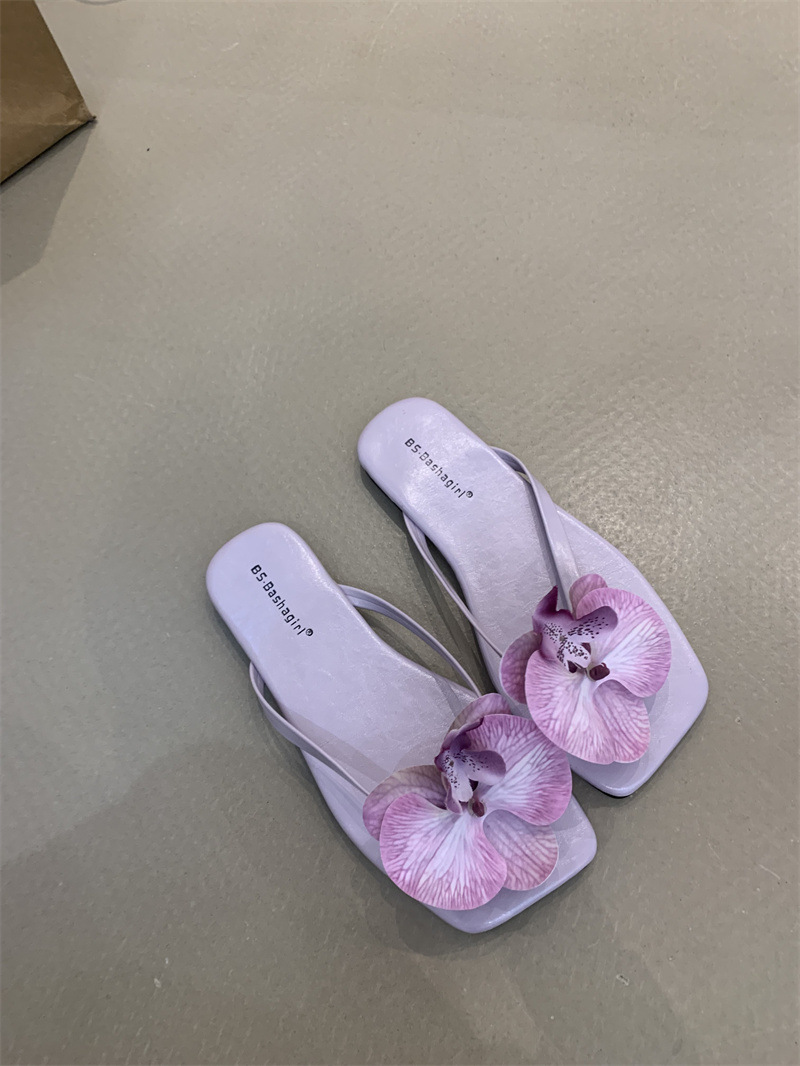 여성을위한 프랑스 부드러운 요정 샌들 여름 2025 틈새 저녁 바람 꽃잎 해변 휴가 플립 플롭