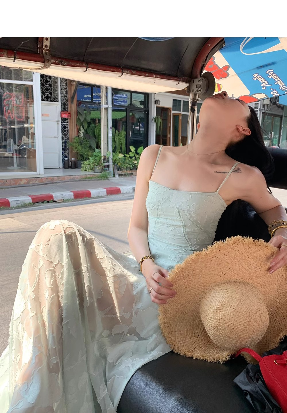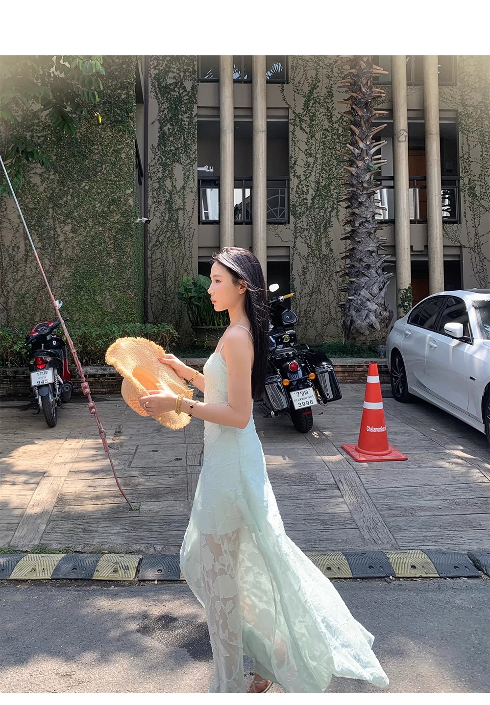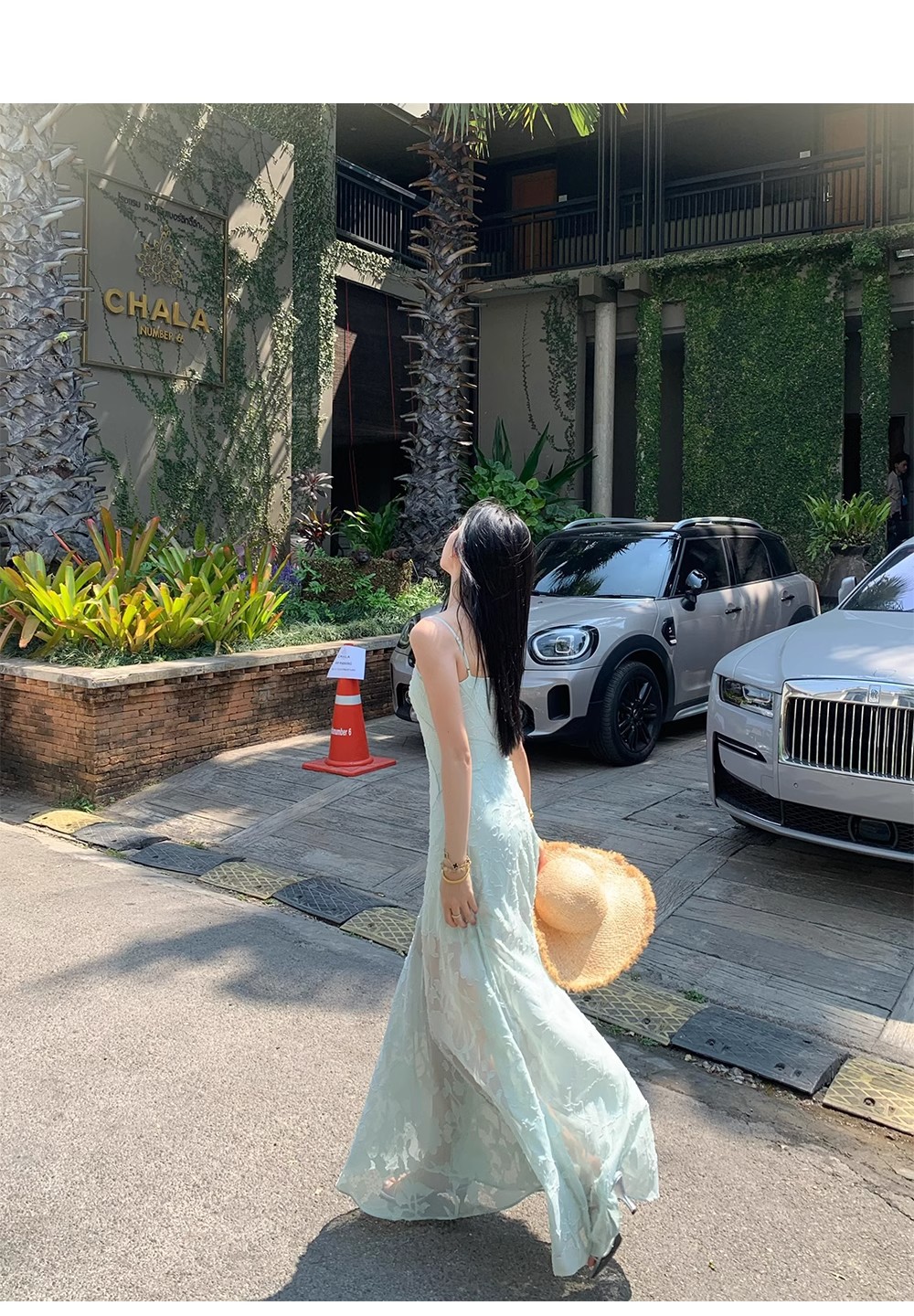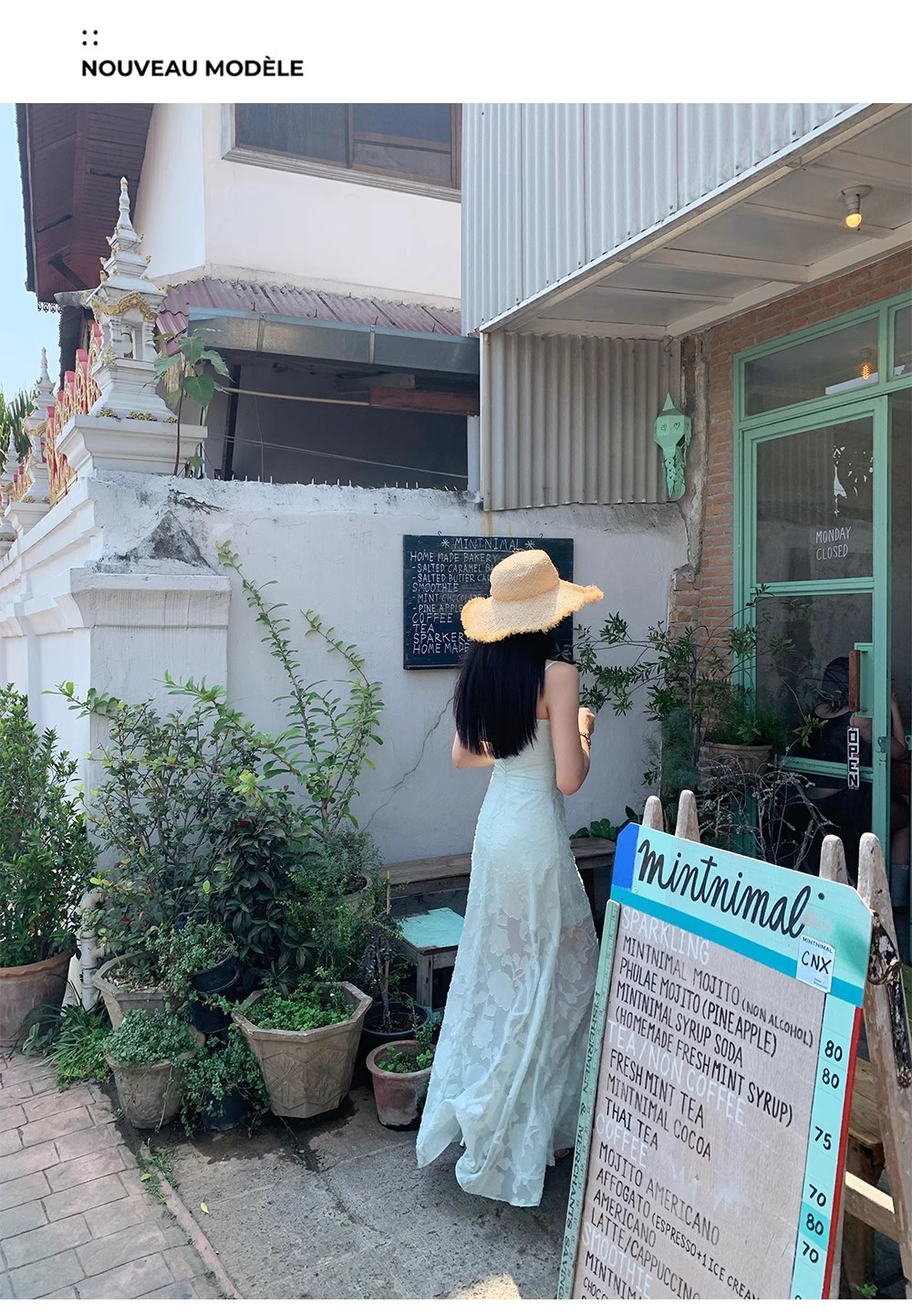 2025 새로운 여름 레이스 슬링 원피스 여름 민트 맘보 그린 여행복 해변 휴일 원피스스토어 가기